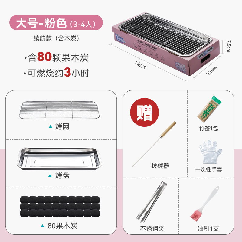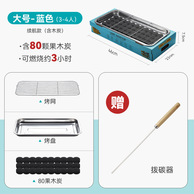 免洗便携一次性不锈钢烧烤炉 家用户外炭烤肉炉 送速燃果木炭