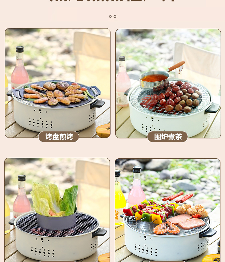 围炉煮茶炭炉烧烤炉冬季家用户外炉室内木碳取暖炉全套烤鱼炉