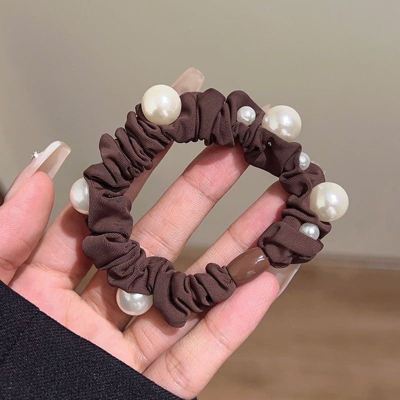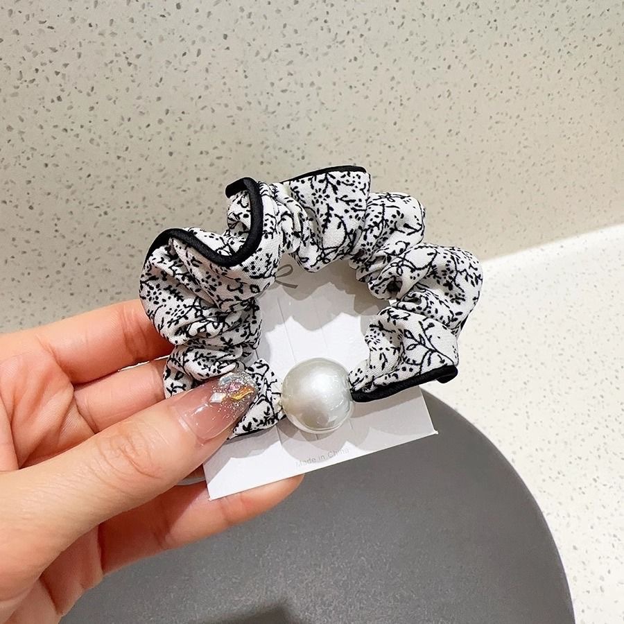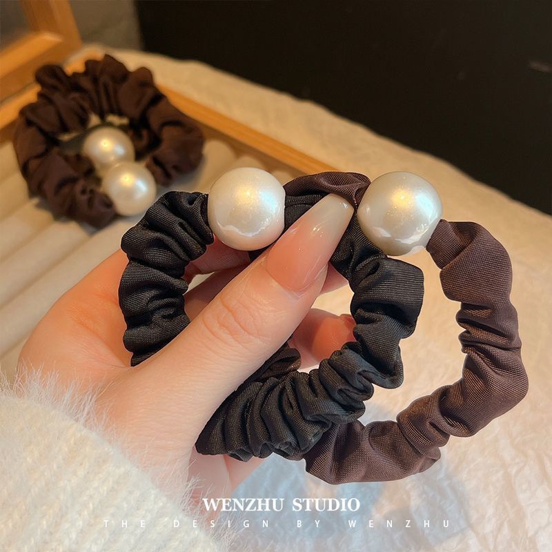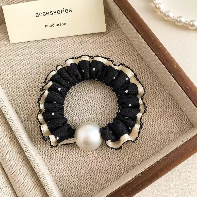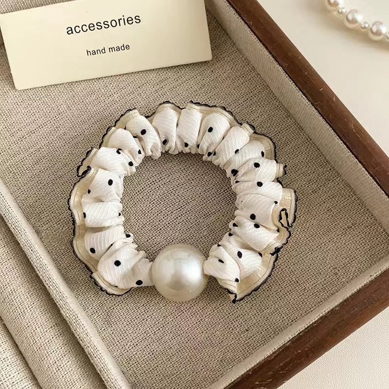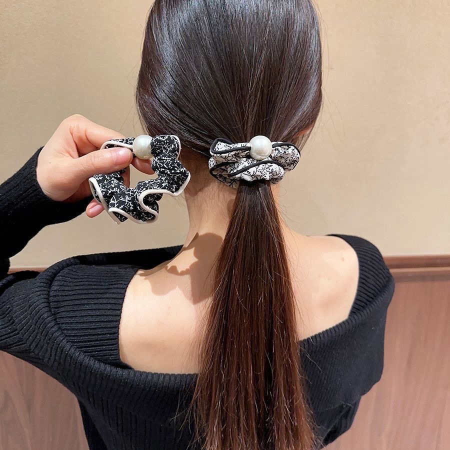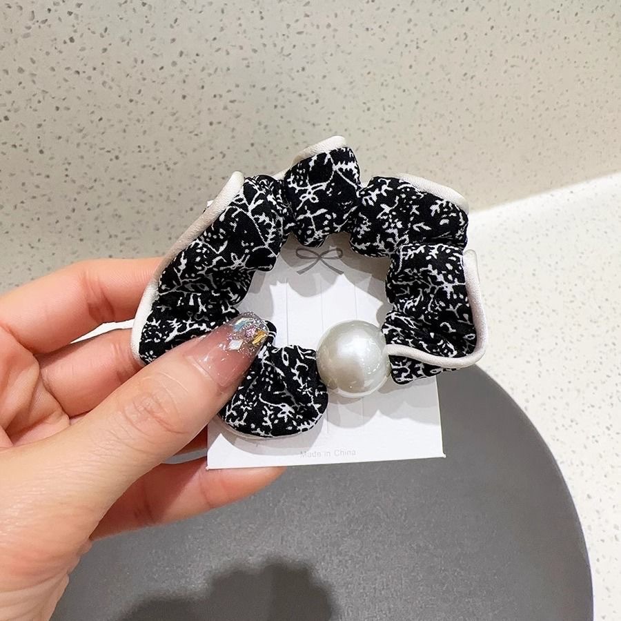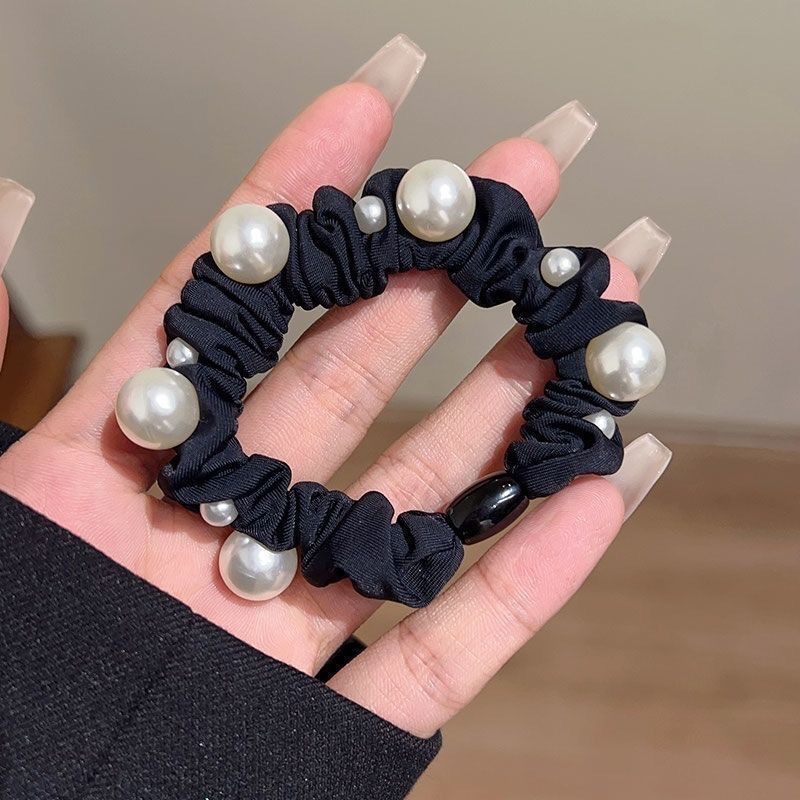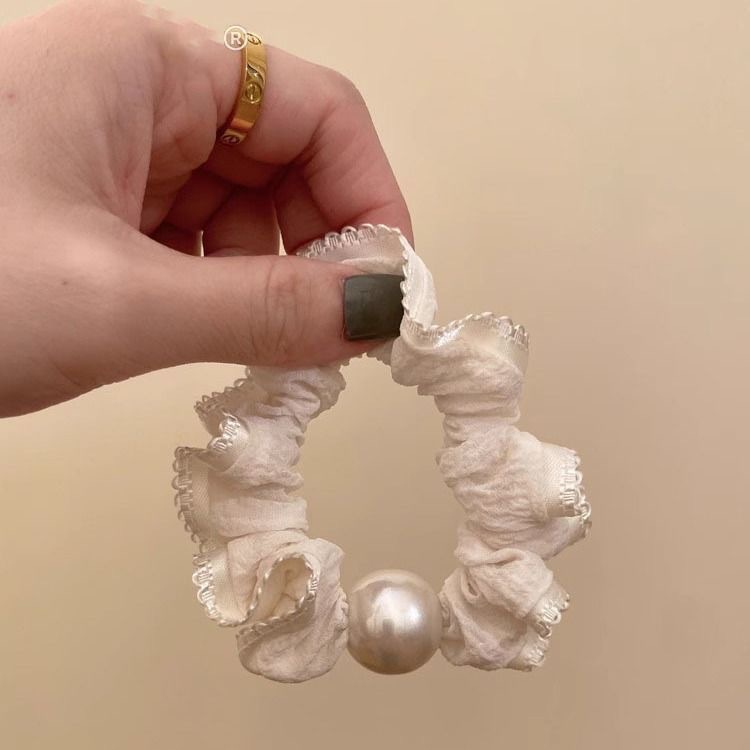 手工布料珍珠大肠发圈如意气质高弹力马尾头绳扎头饰头发绳发饰女