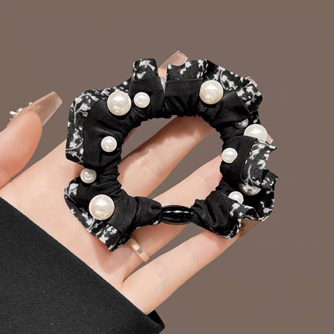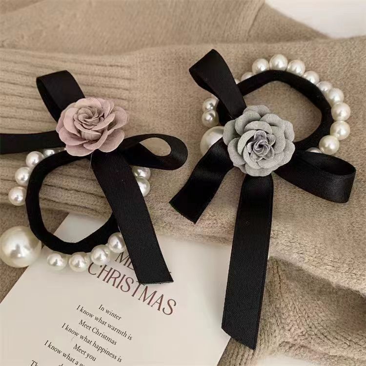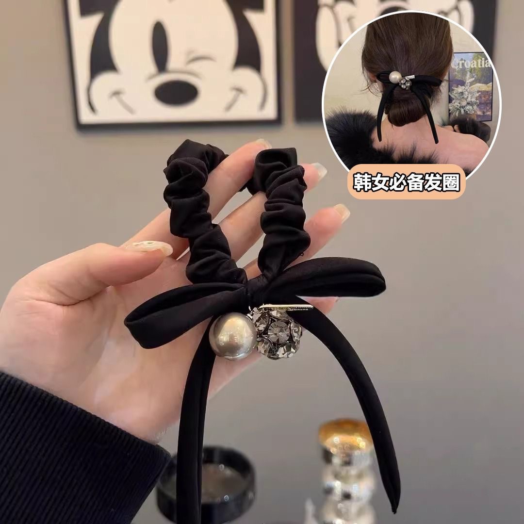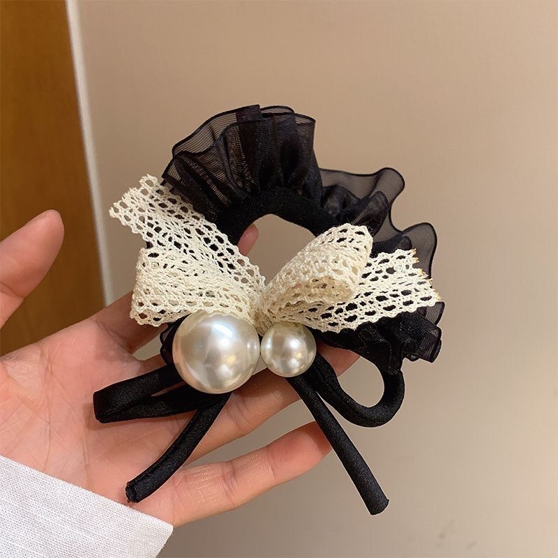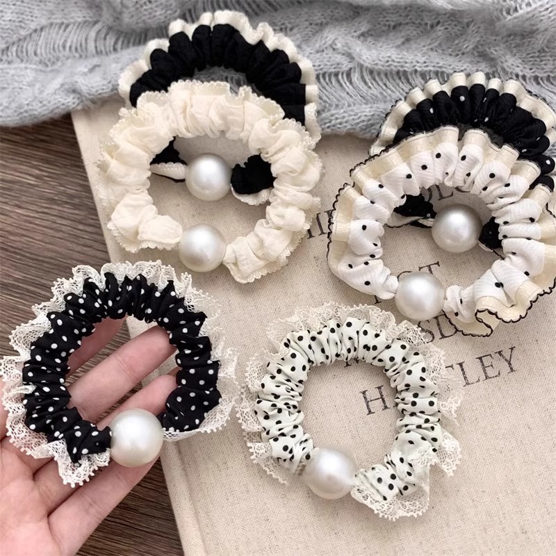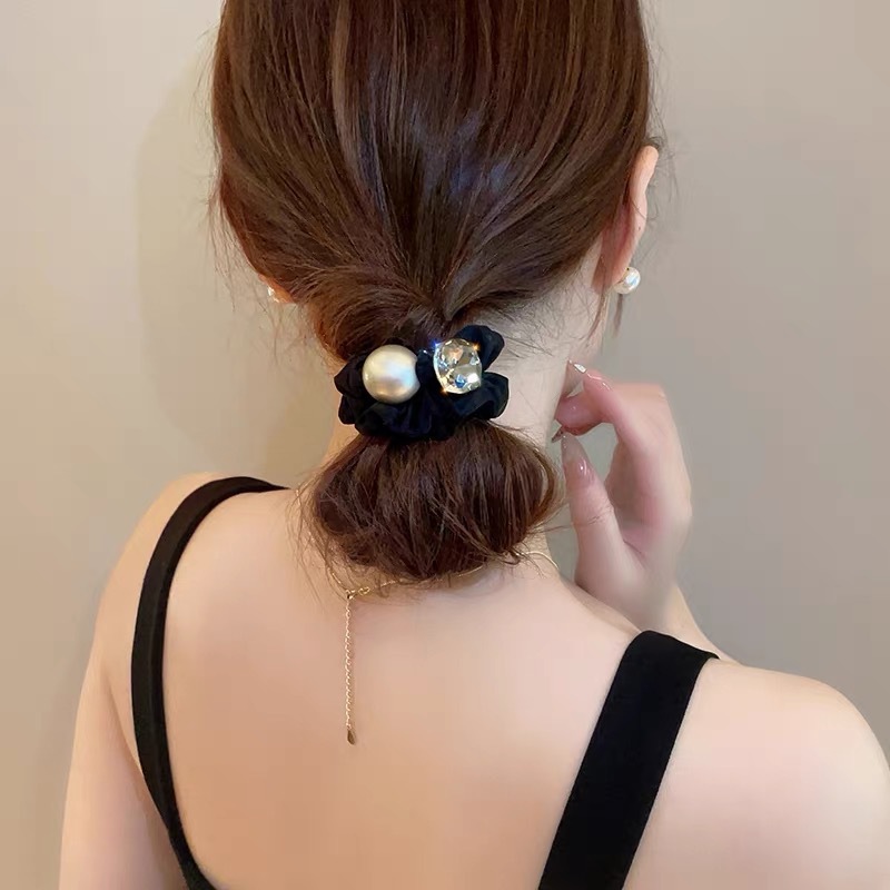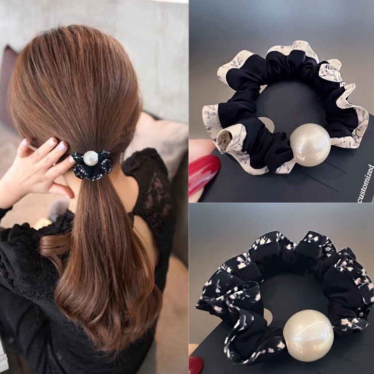 手工布料珍珠大肠发圈如意气质高弹力马尾头绳扎头饰头发绳发饰女