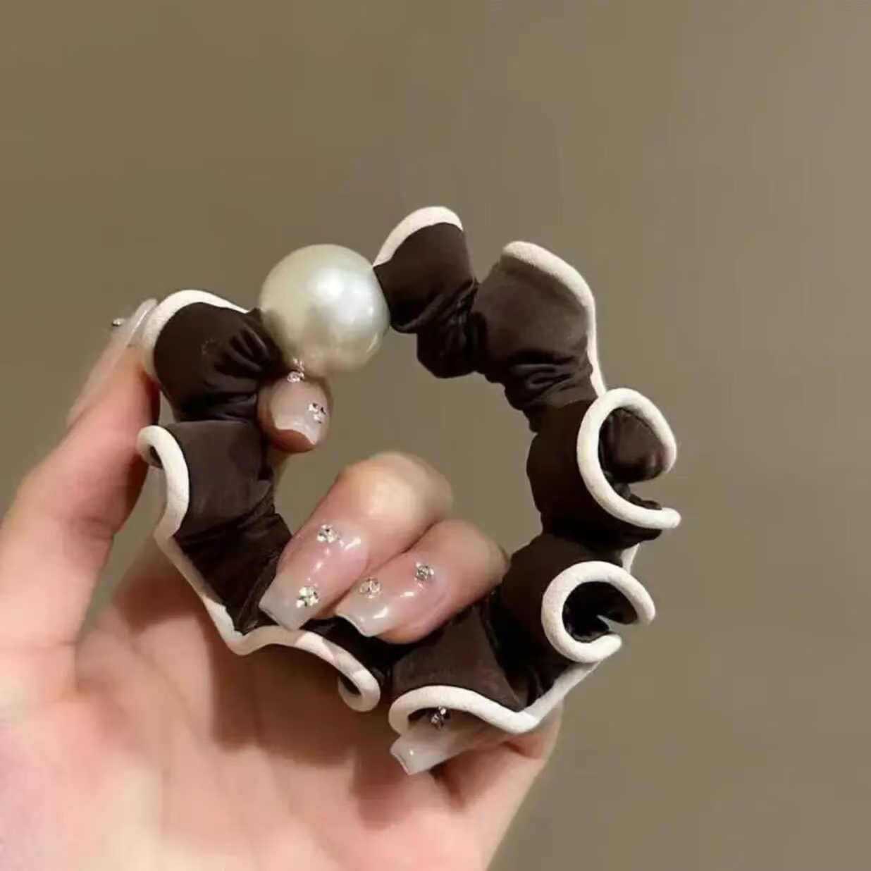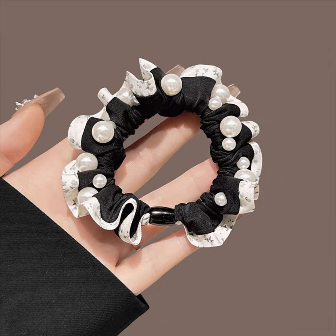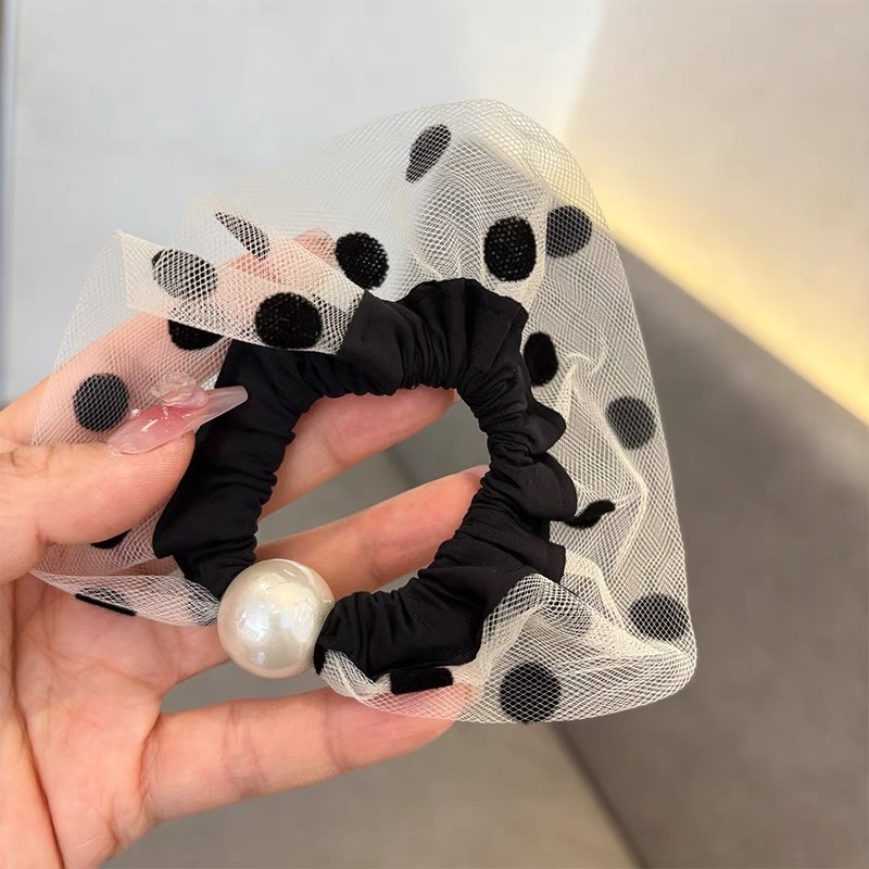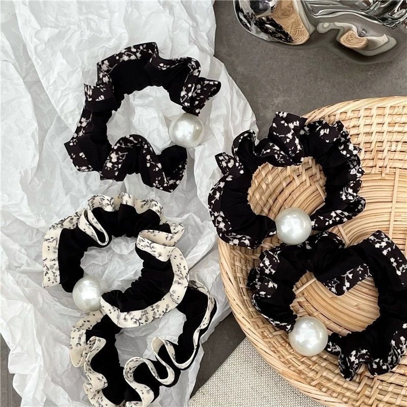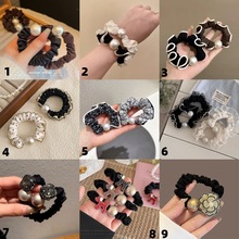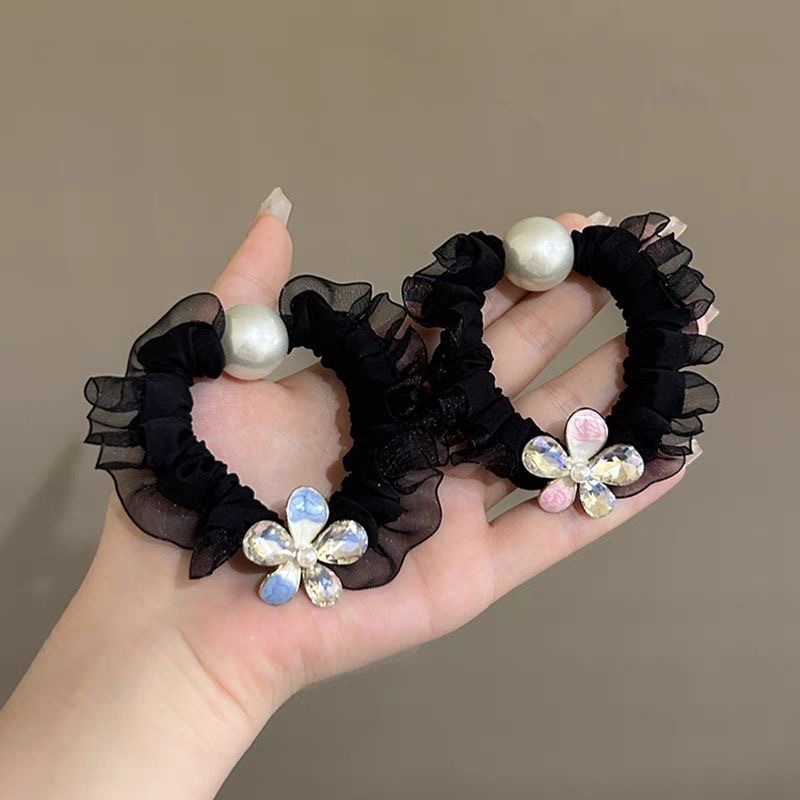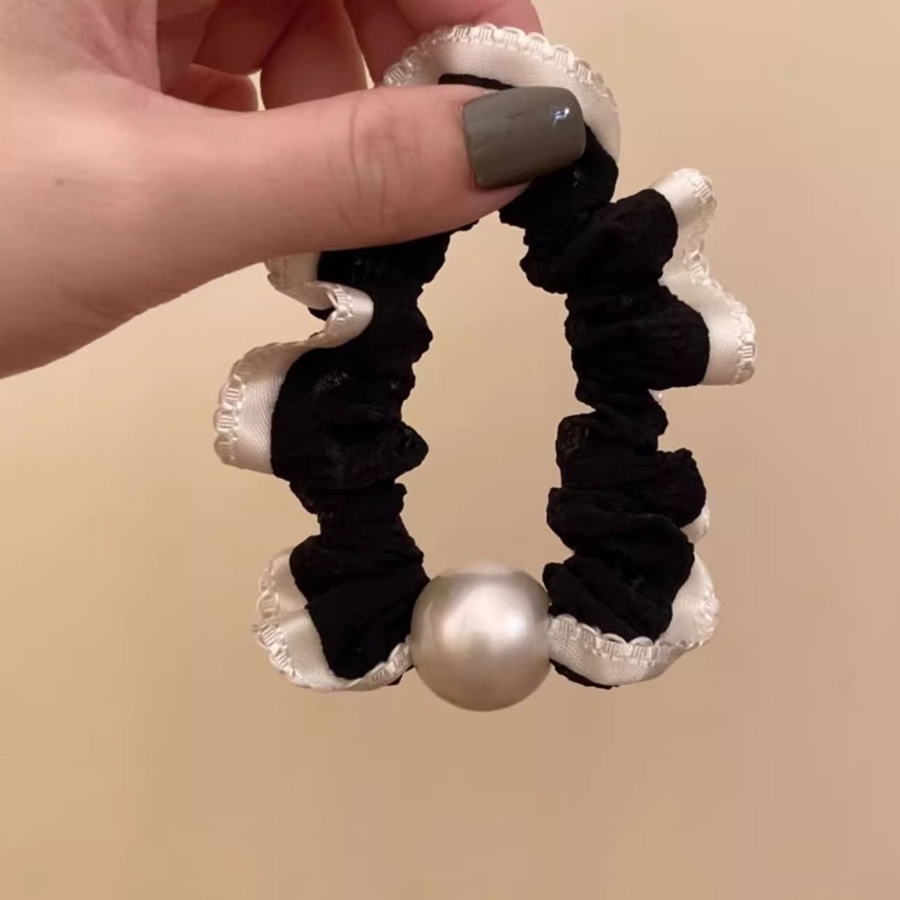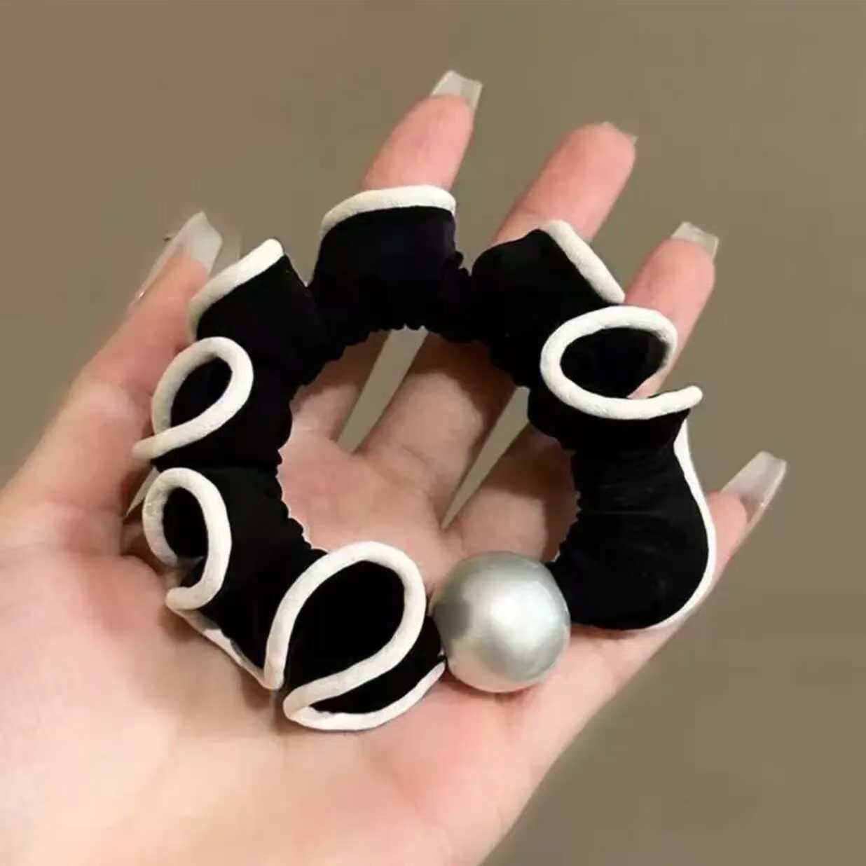 手工布料珍珠大肠发圈如意气质高弹力马尾头绳扎头饰头发绳发饰女