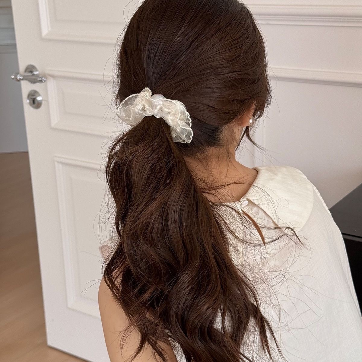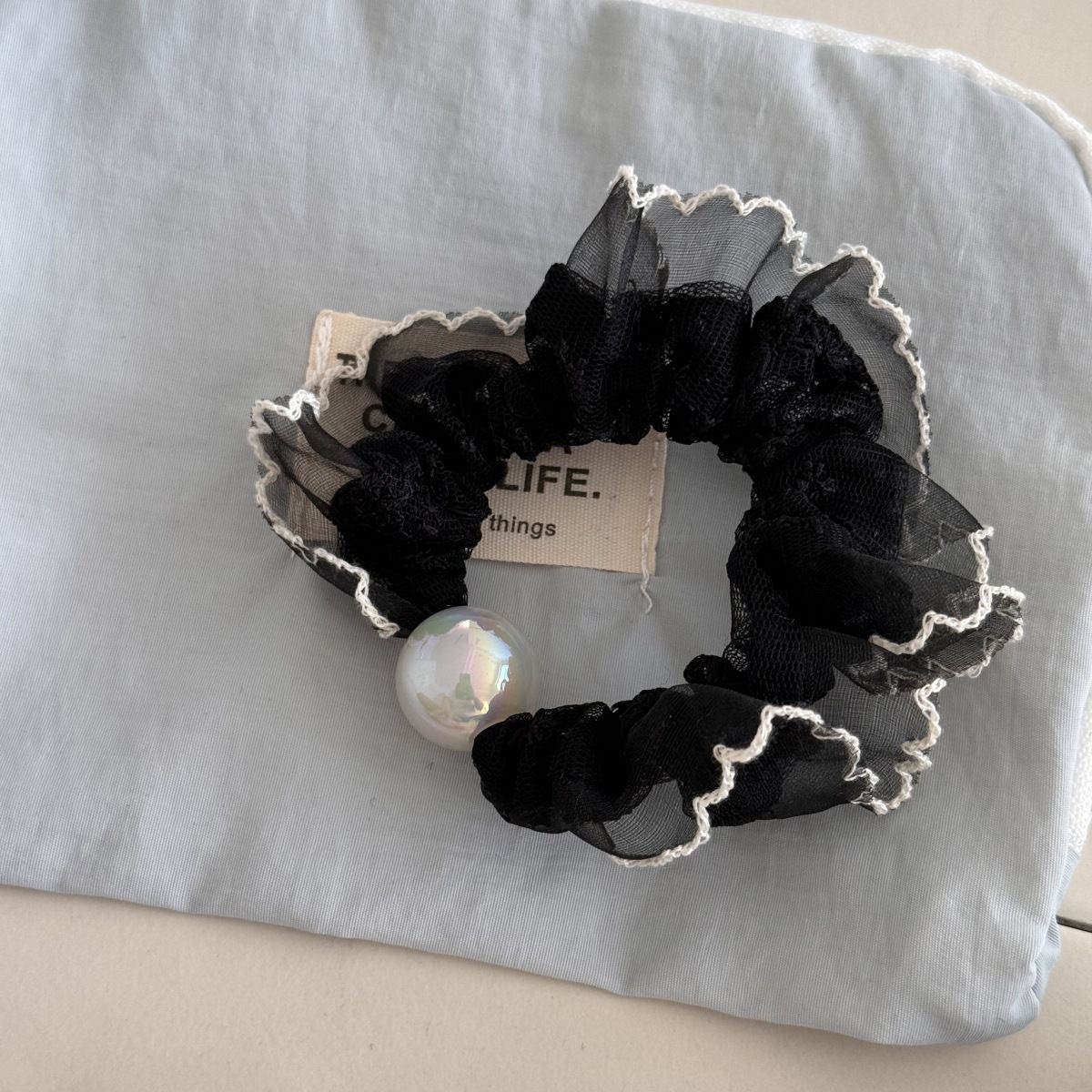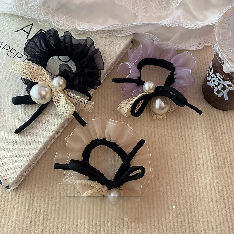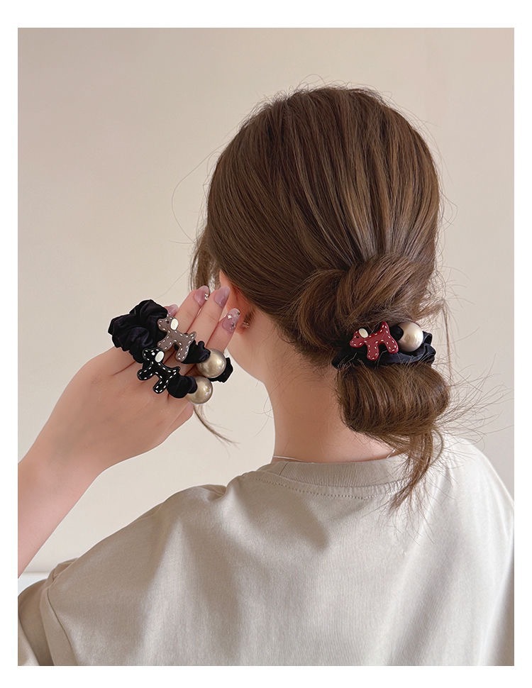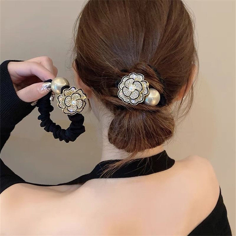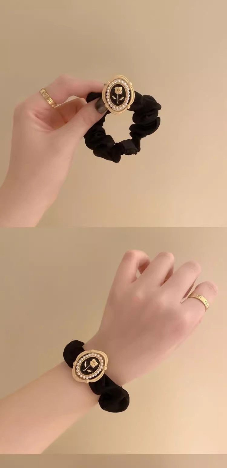 手工布料珍珠大肠发圈如意气质高弹力马尾头绳扎头饰头发绳发饰女