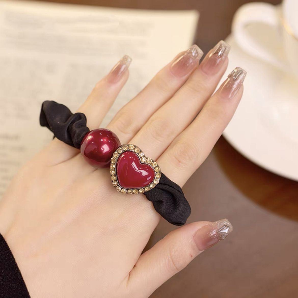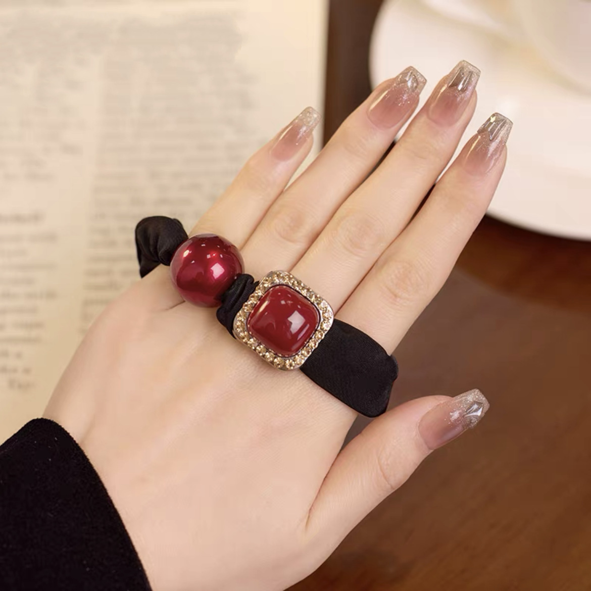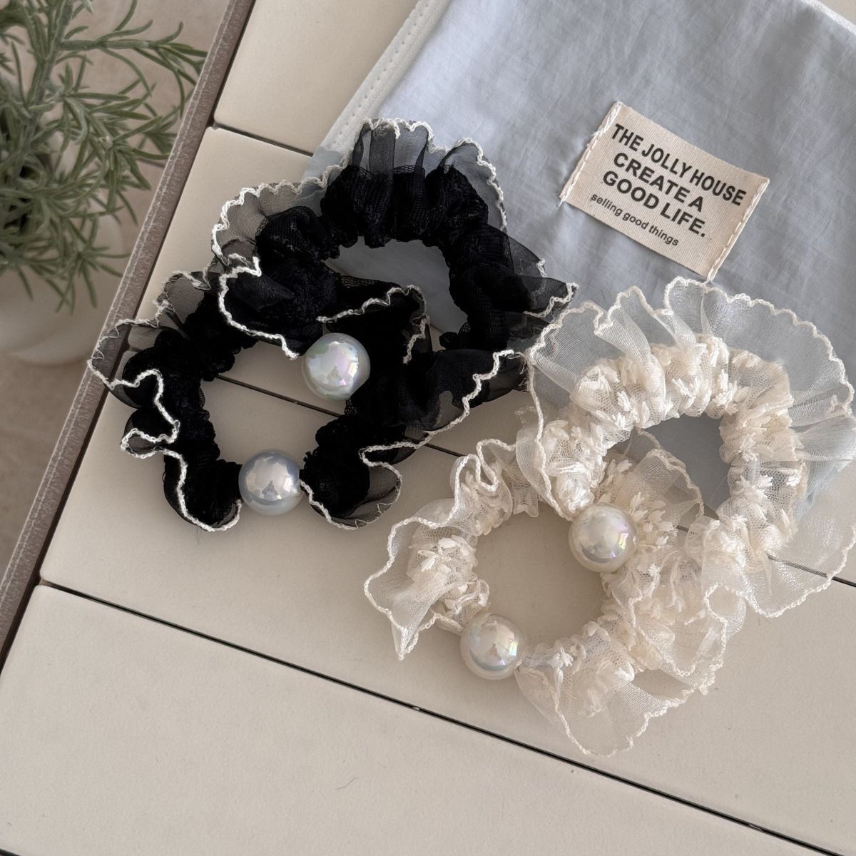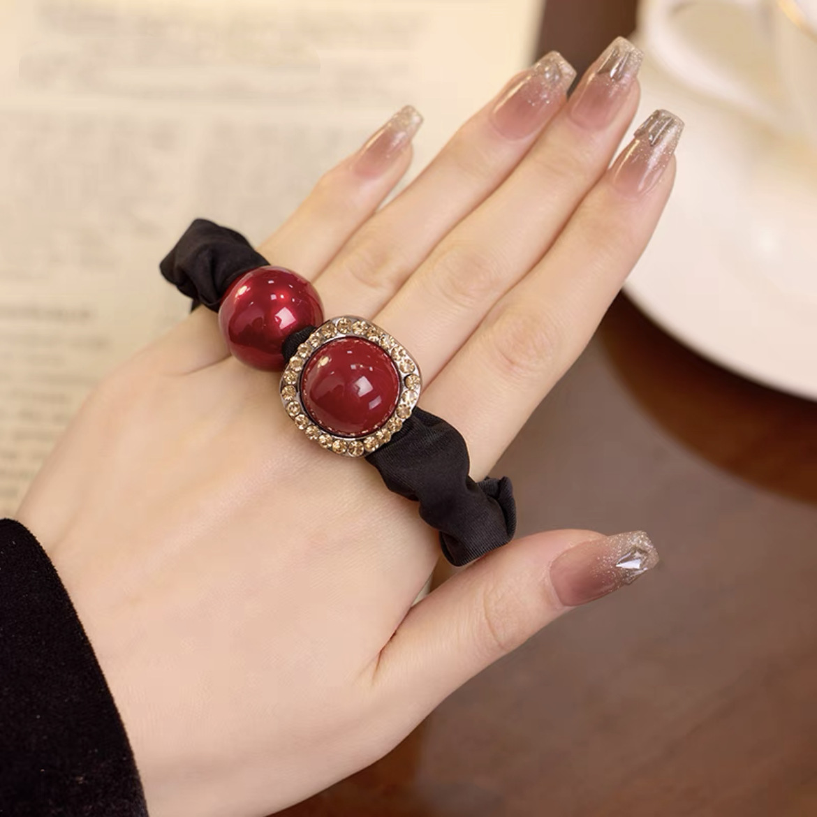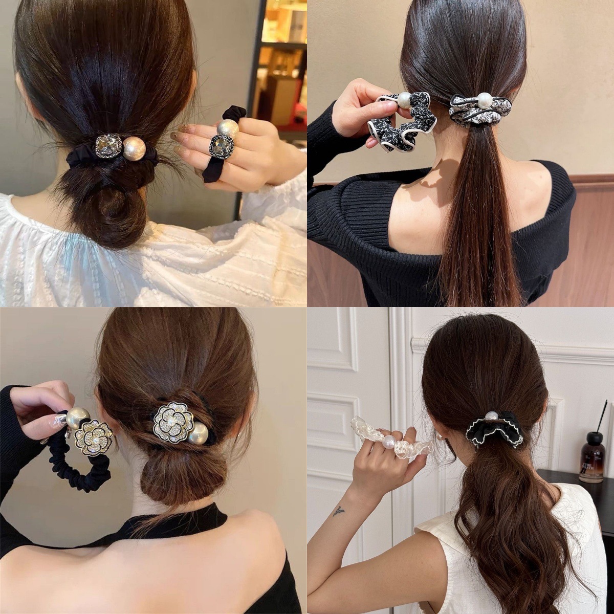 手工布料珍珠大肠发圈如意气质高弹力马尾头绳扎头饰头发绳发饰女