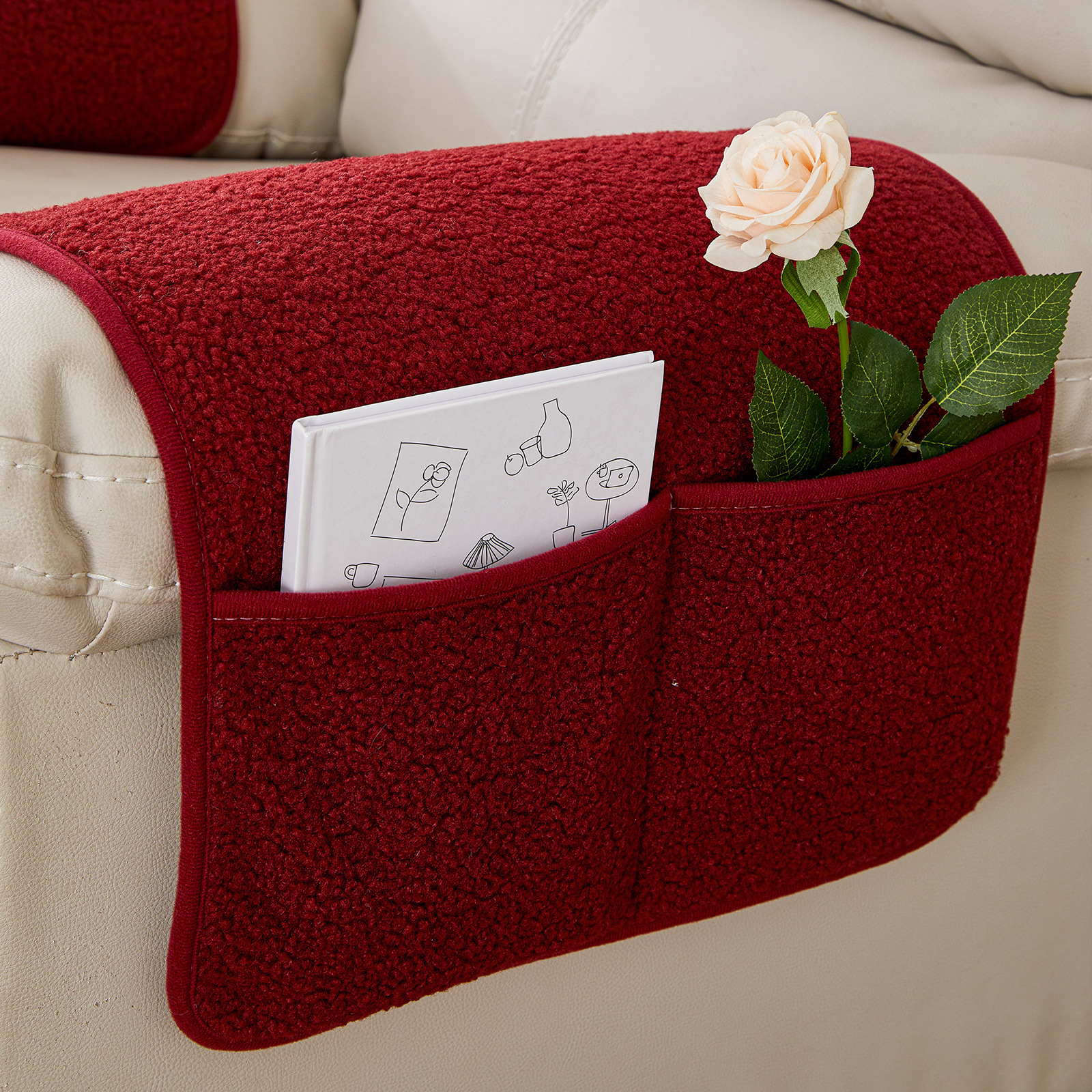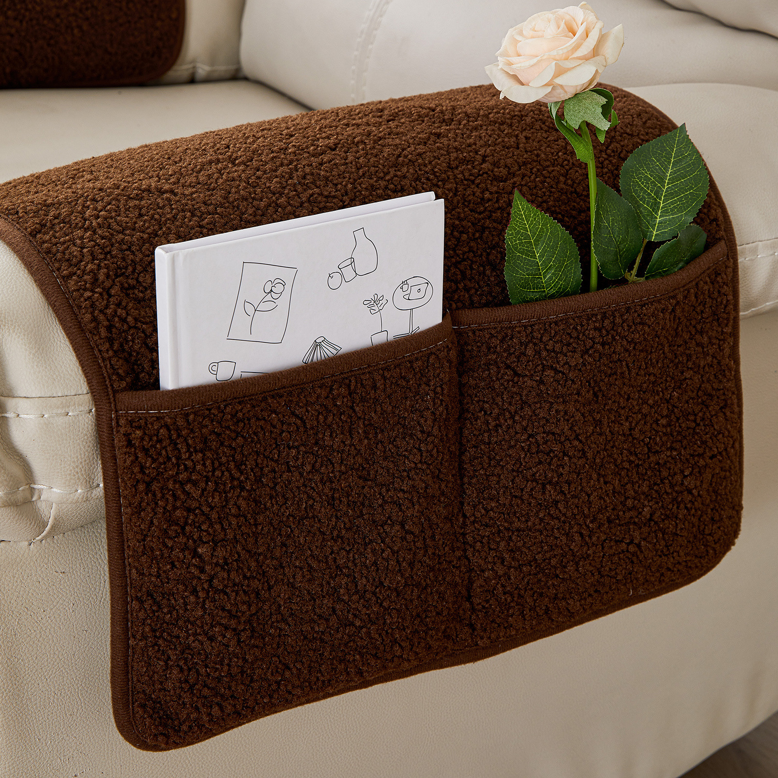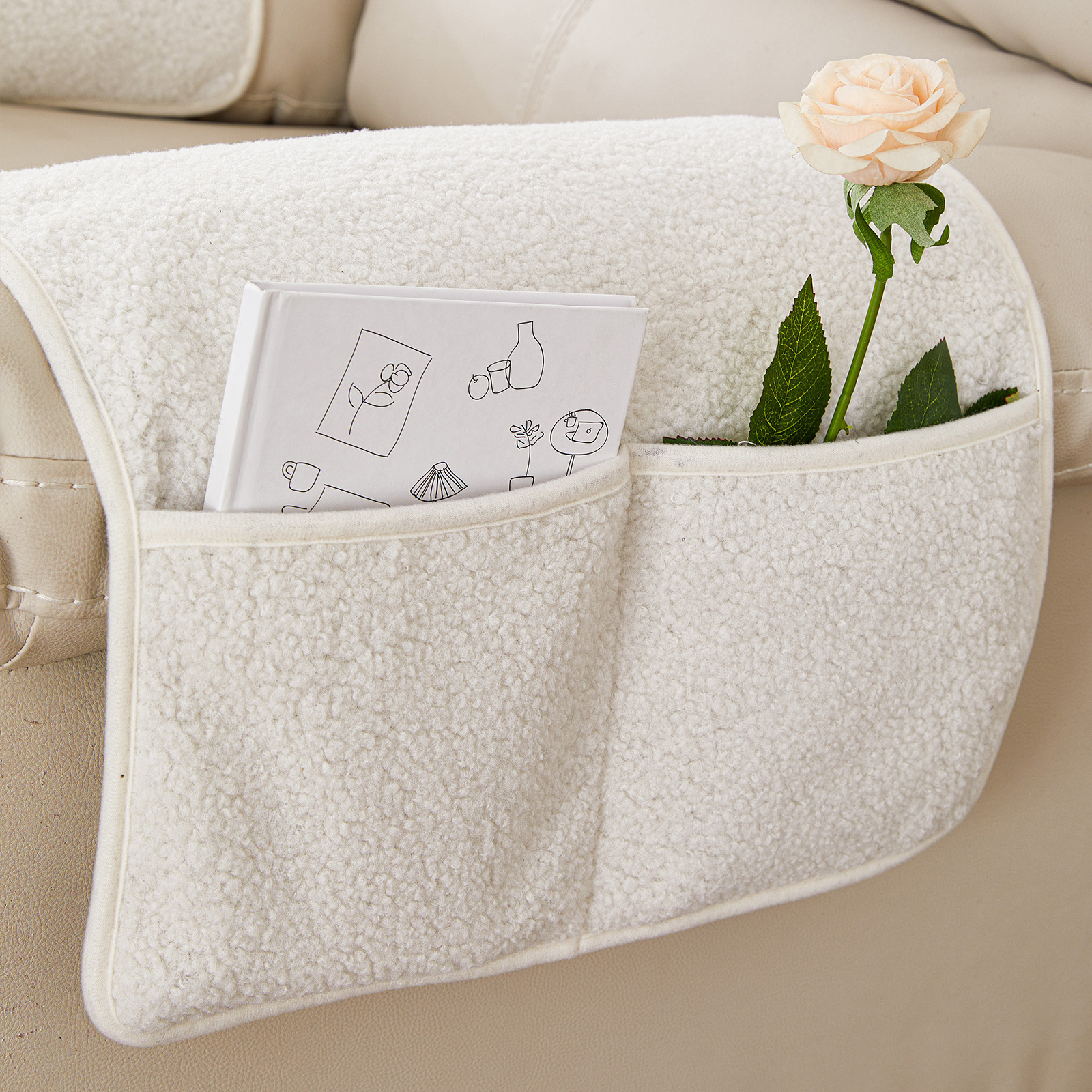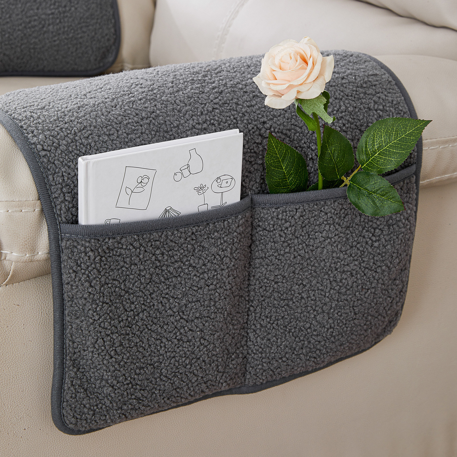 跨境新款羊羔绒沙发头枕垫扶手垫三件套带收纳储物袋单人椅扶手巾