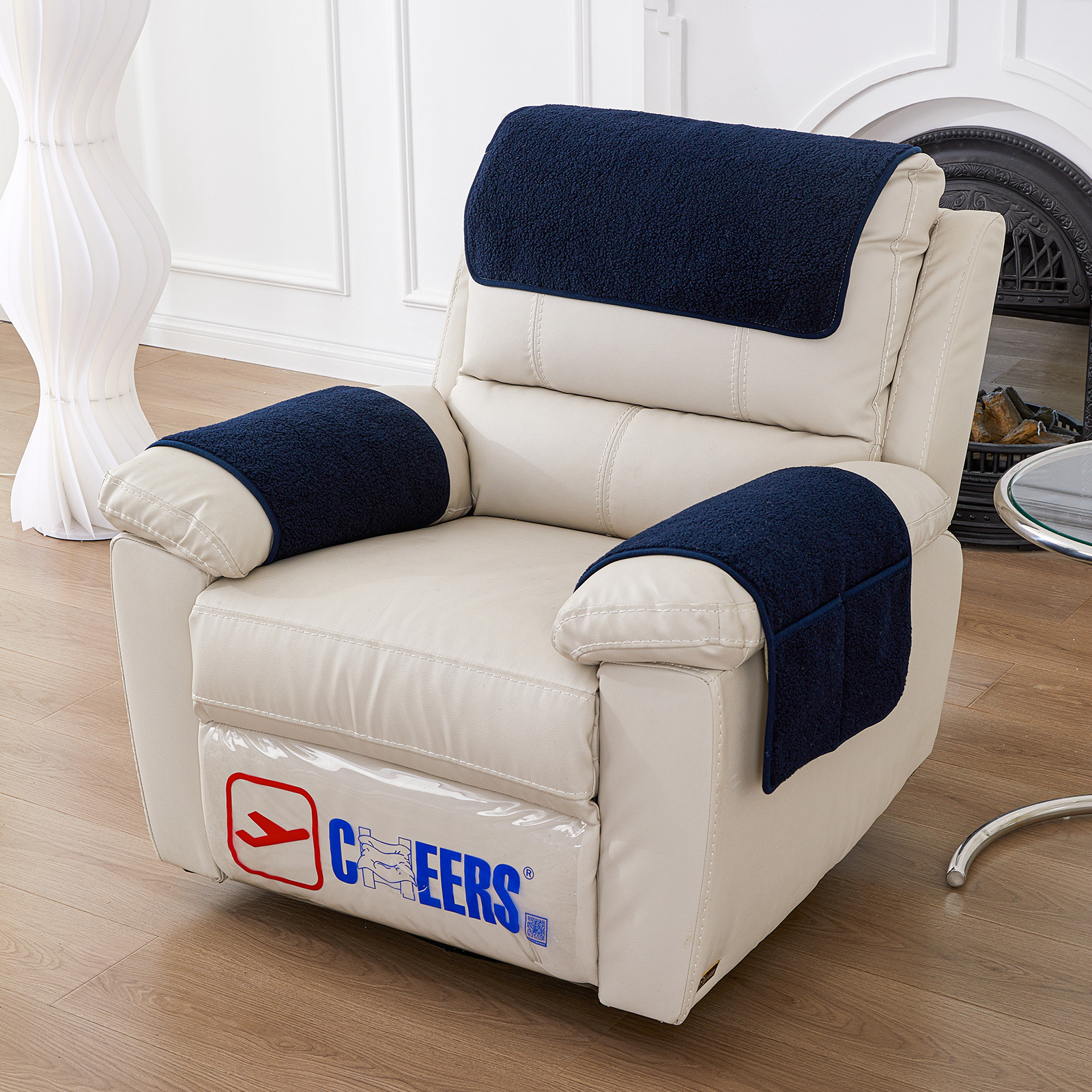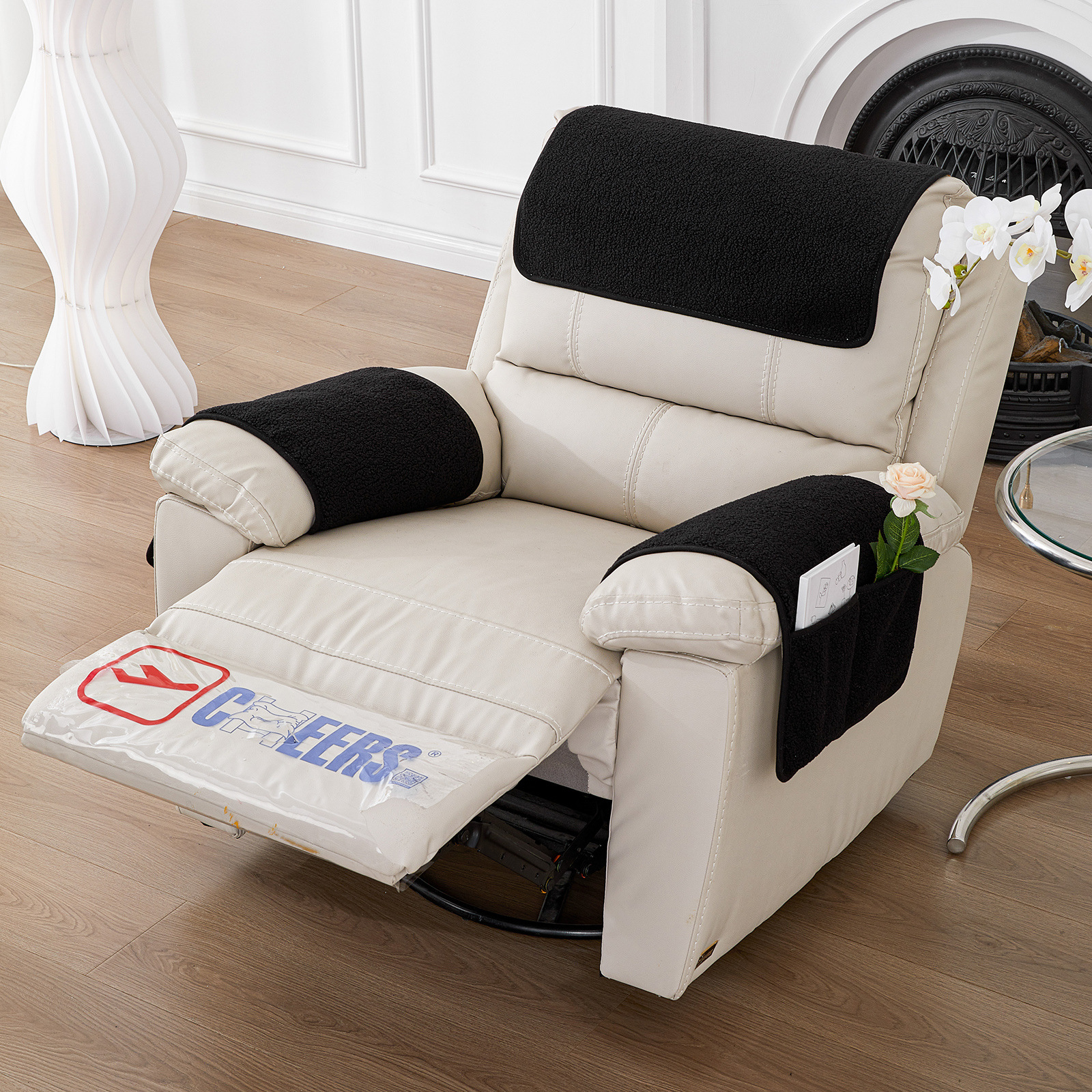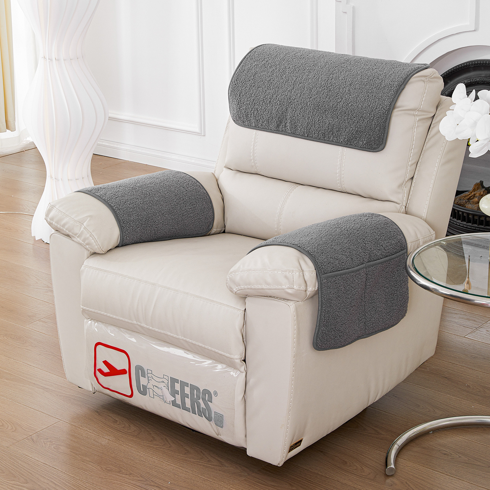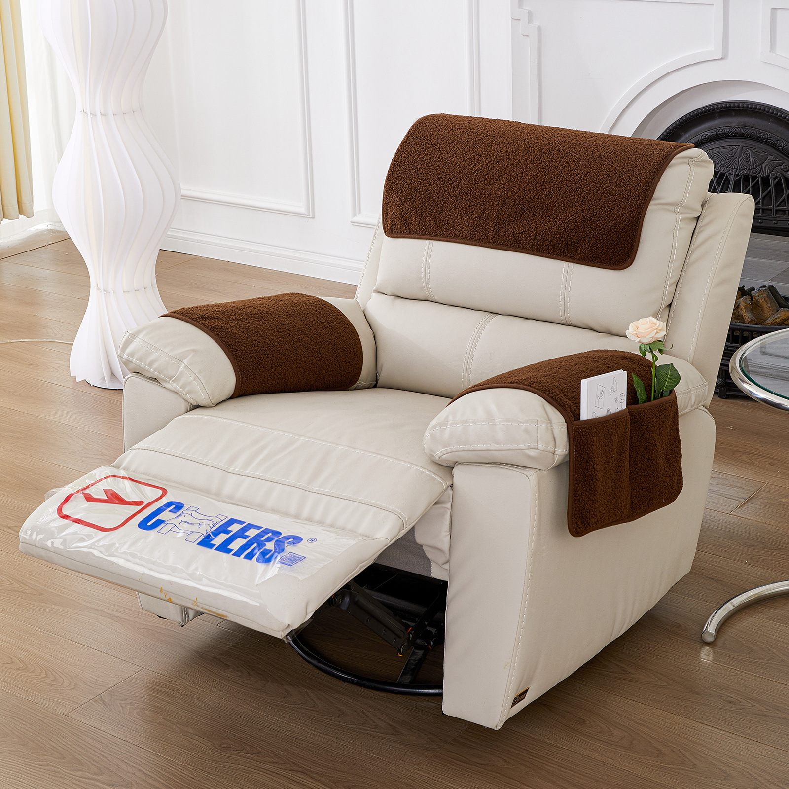 跨境新款羊羔绒沙发头枕垫扶手垫三件套带收纳储物袋单人椅扶手巾