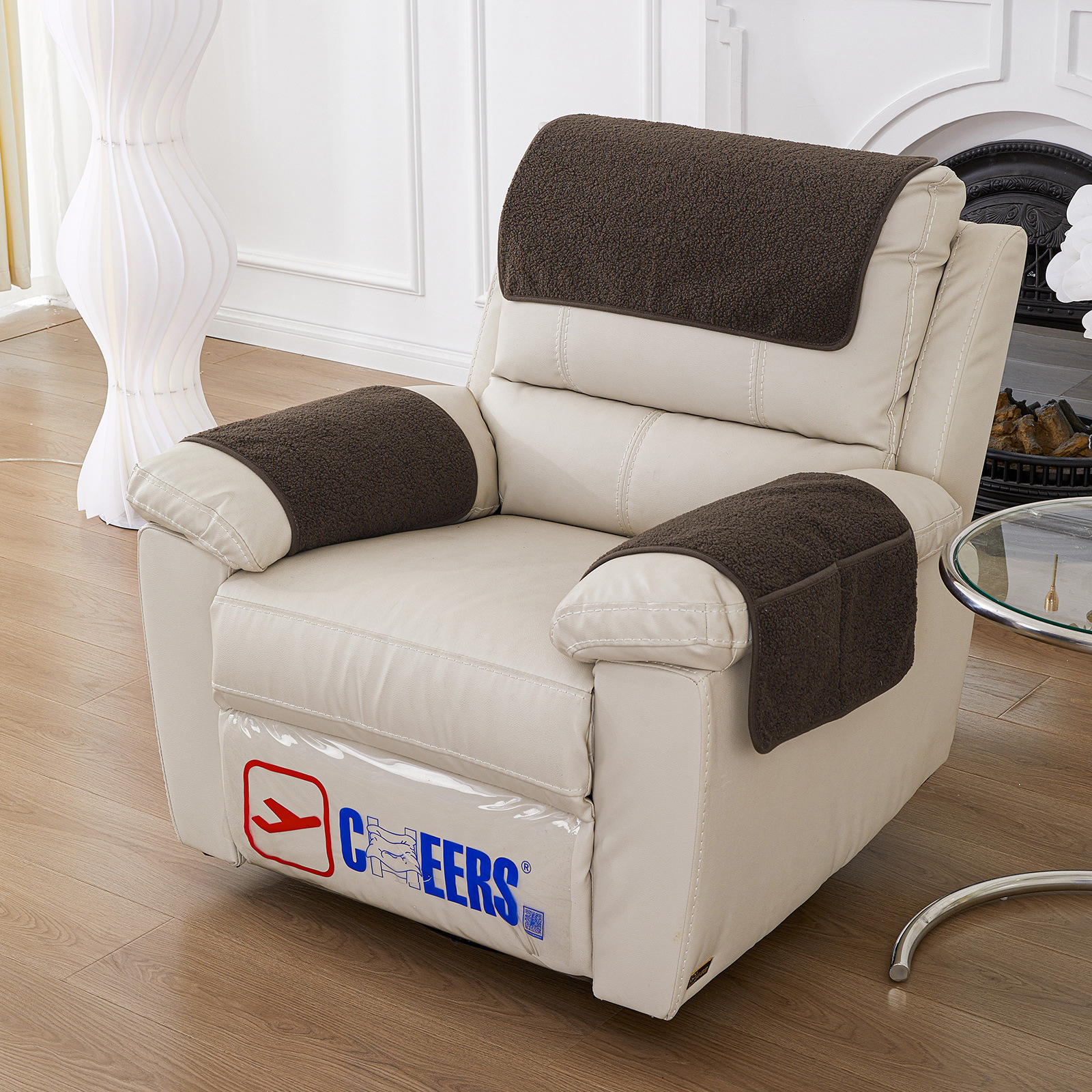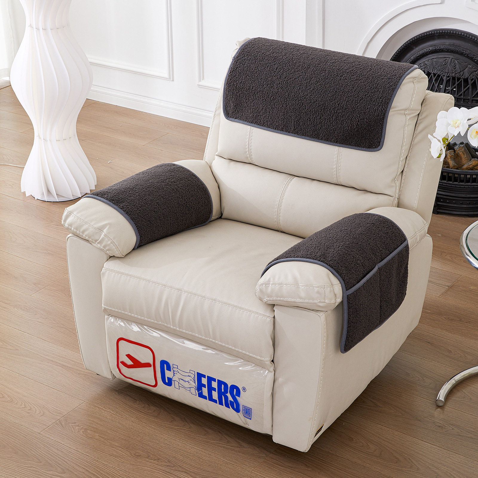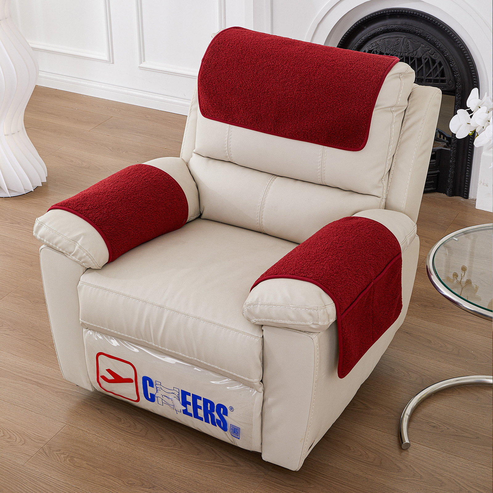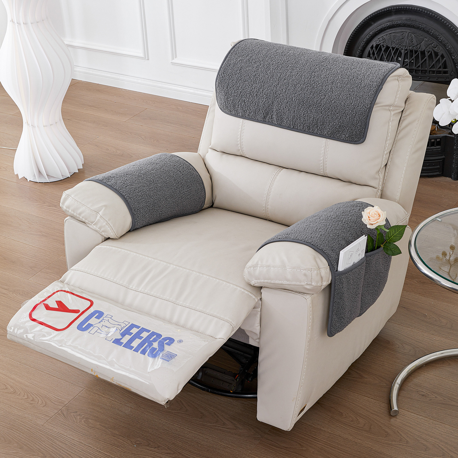 跨境新款羊羔绒沙发头枕垫扶手垫三件套带收纳储物袋单人椅扶手巾
