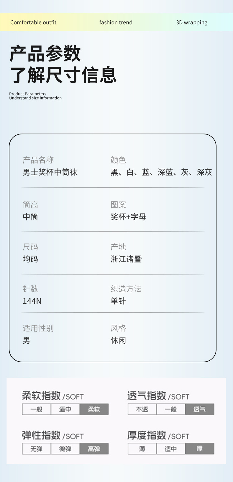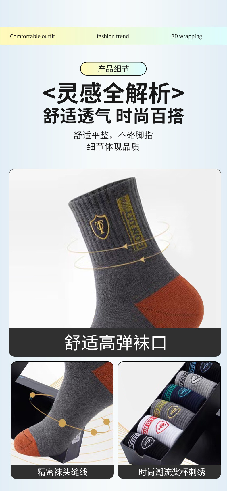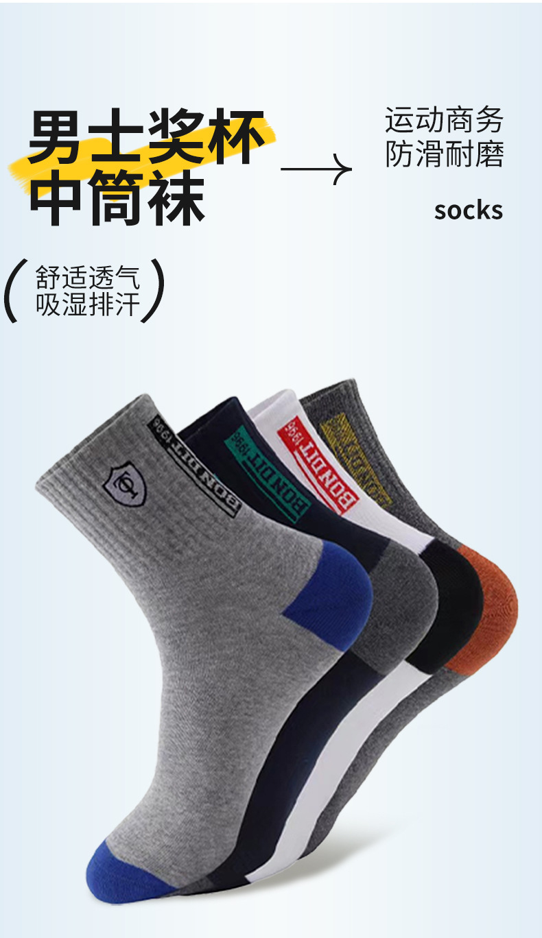 2025秋冬男袜奖杯中筒袜吸汗透气舒适运动袜时尚潮流男士商务袜