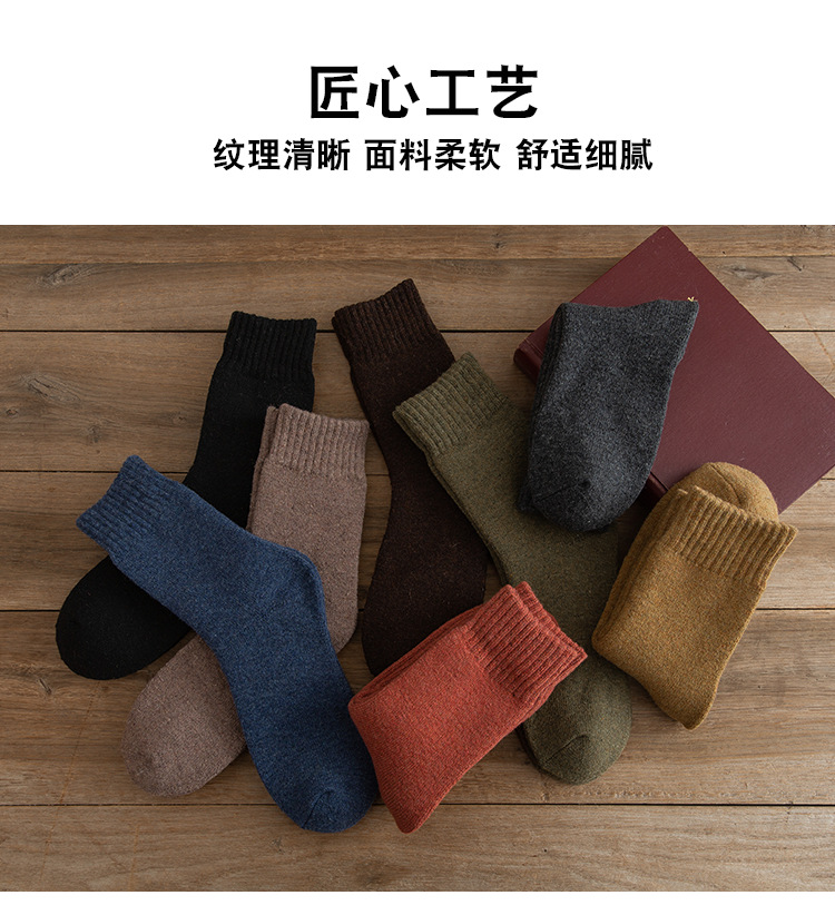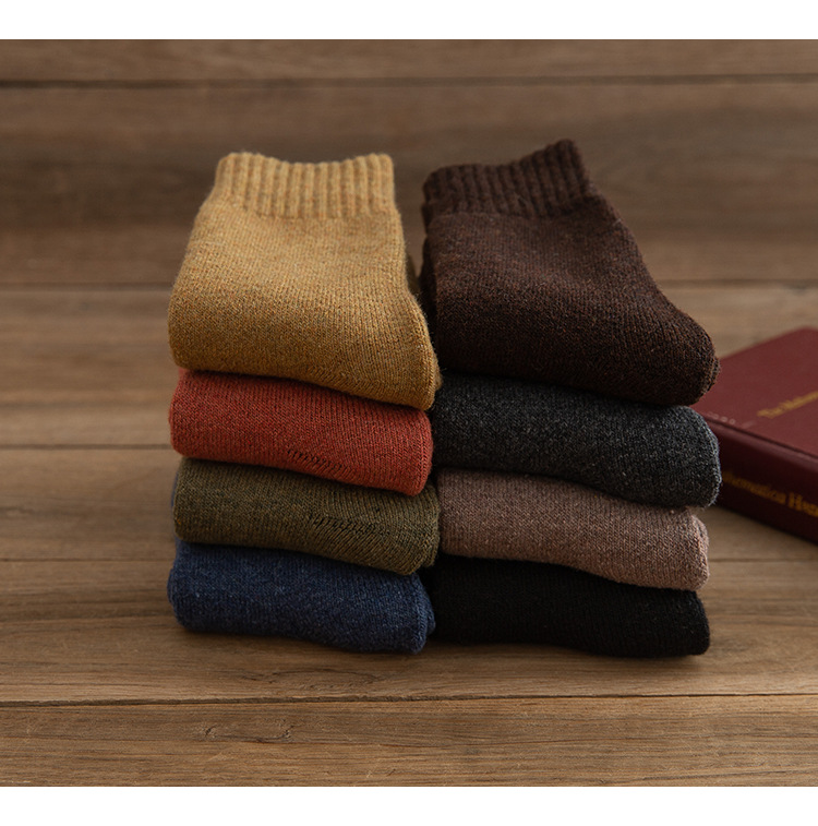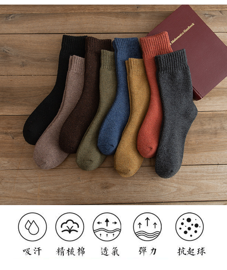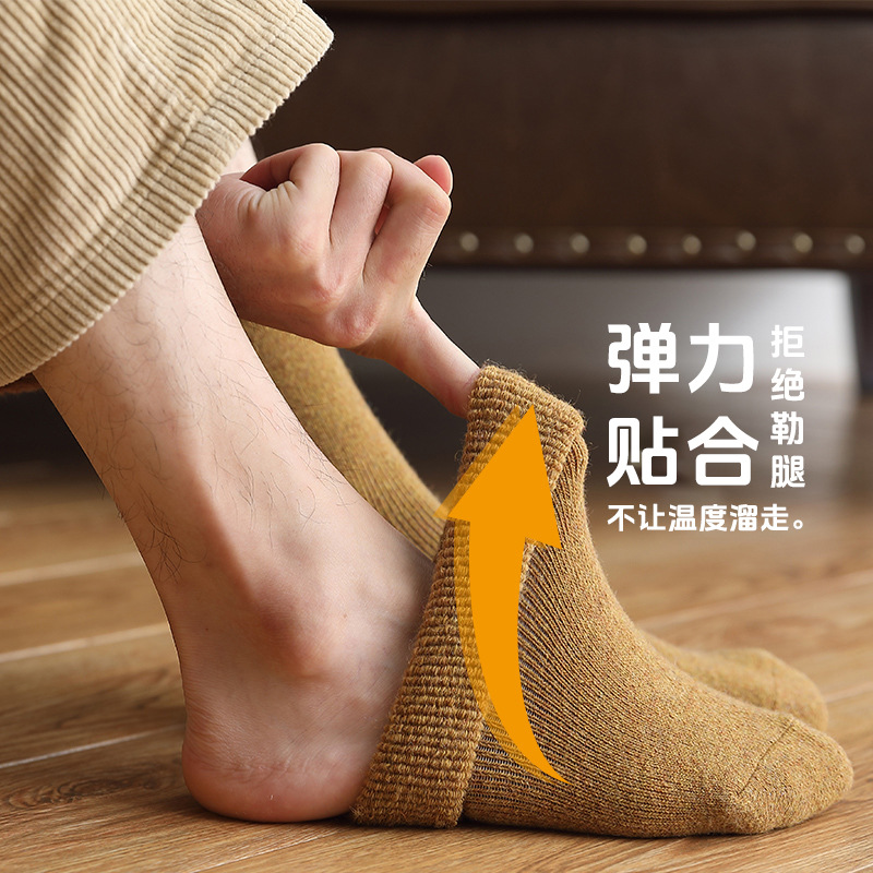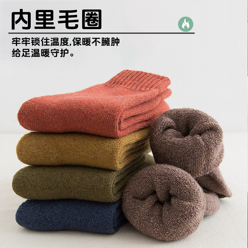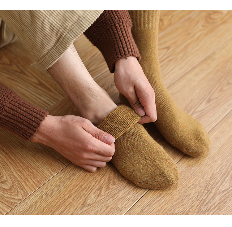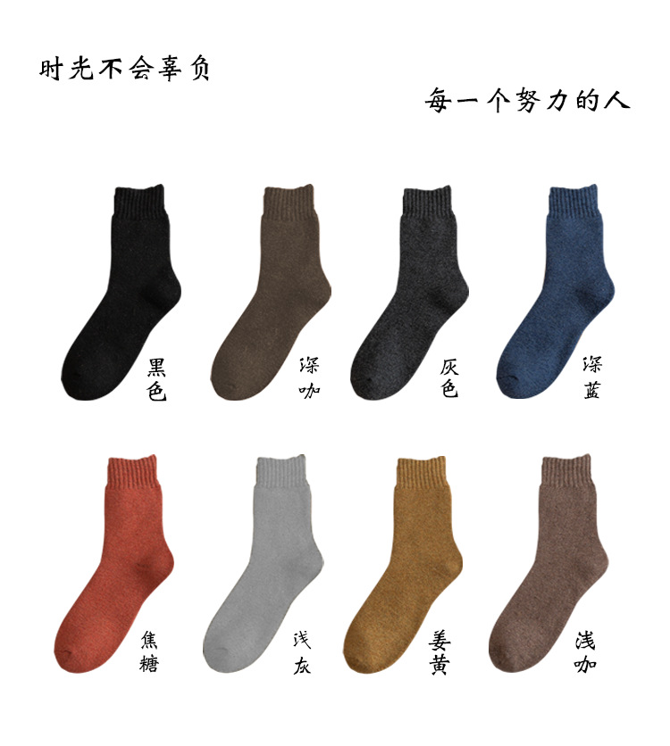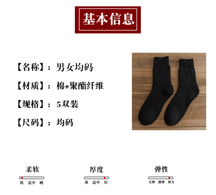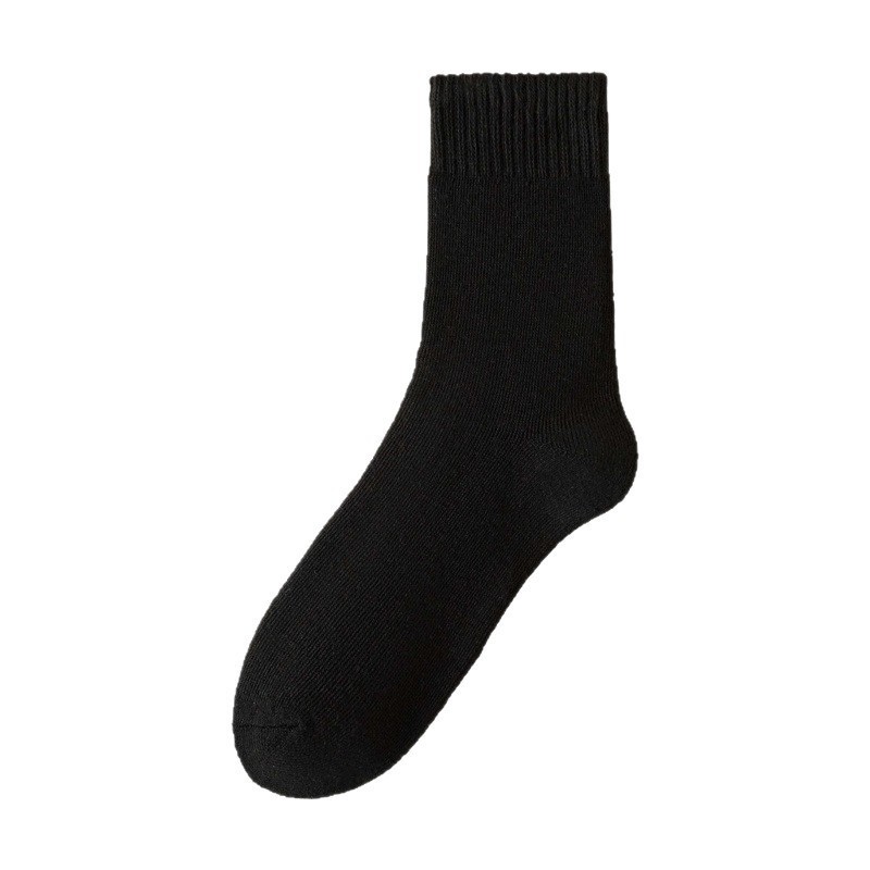 加厚袜子男款冬季袜子黑色保暖毛巾底中筒袜加绒毛圈内里冬厚棉袜