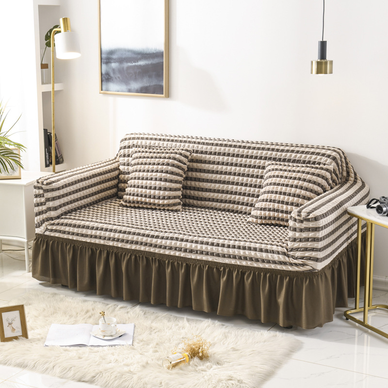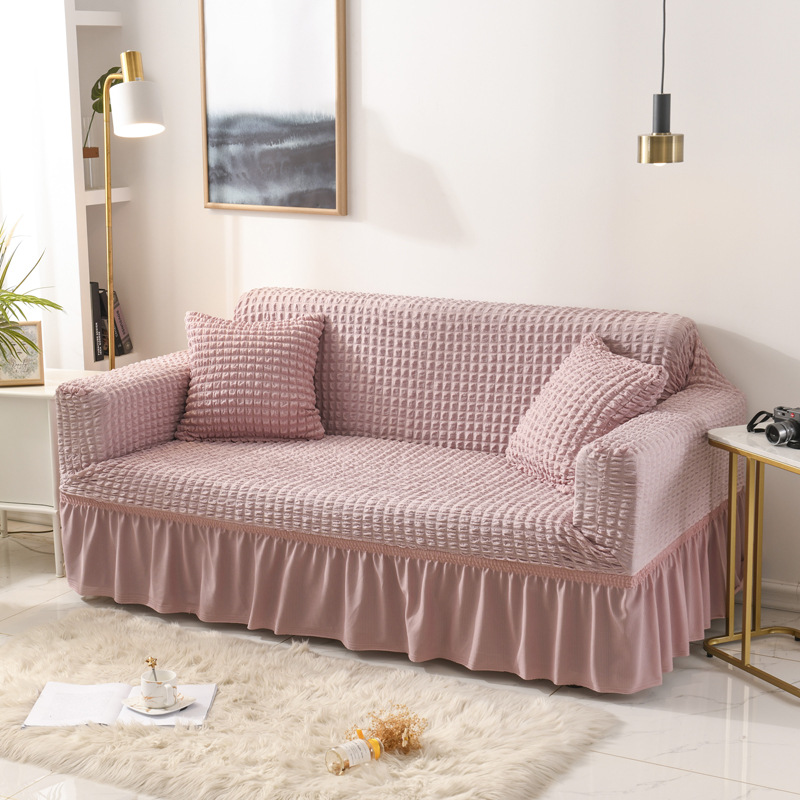 新款四季通用纯色布艺沙发套罩全包韩版蕾丝花边沙发罩盖巾家居