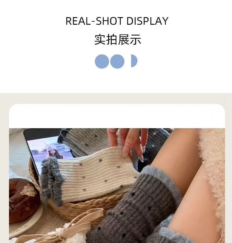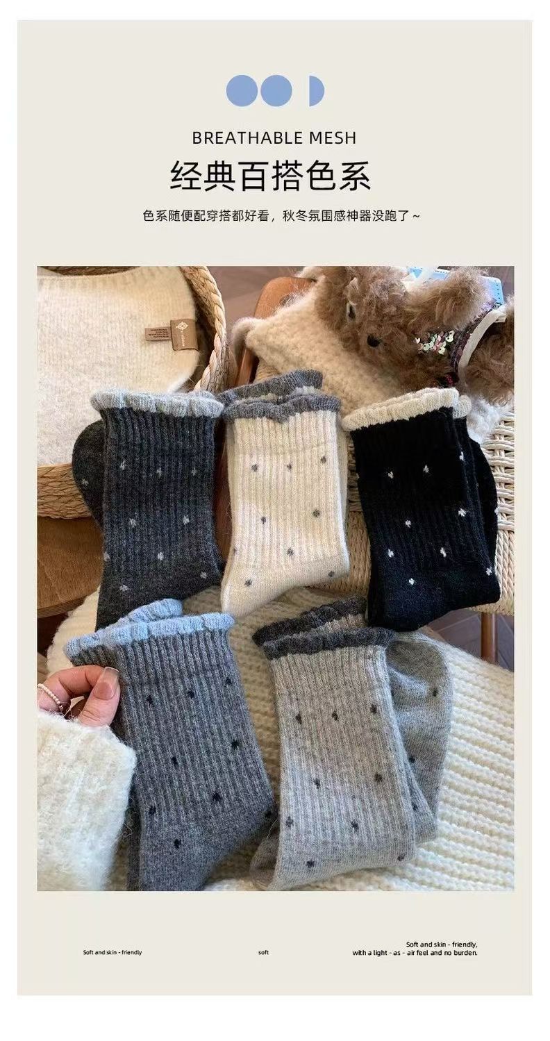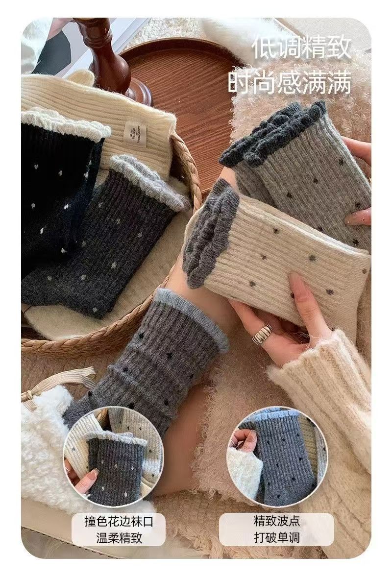 袜子女秋冬款温柔花边百搭长筒波点复古多巴胺学生中筒堆堆袜外穿