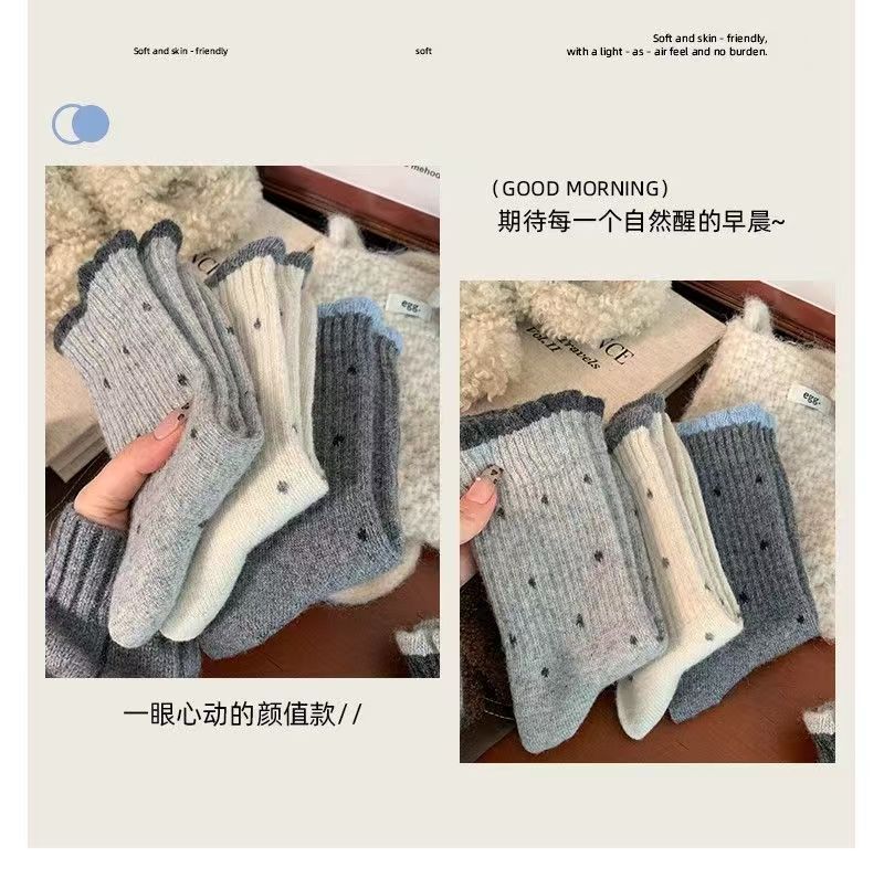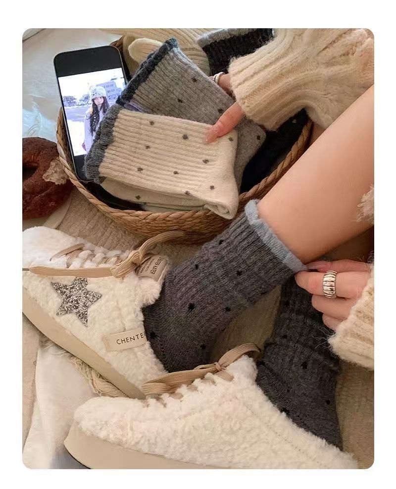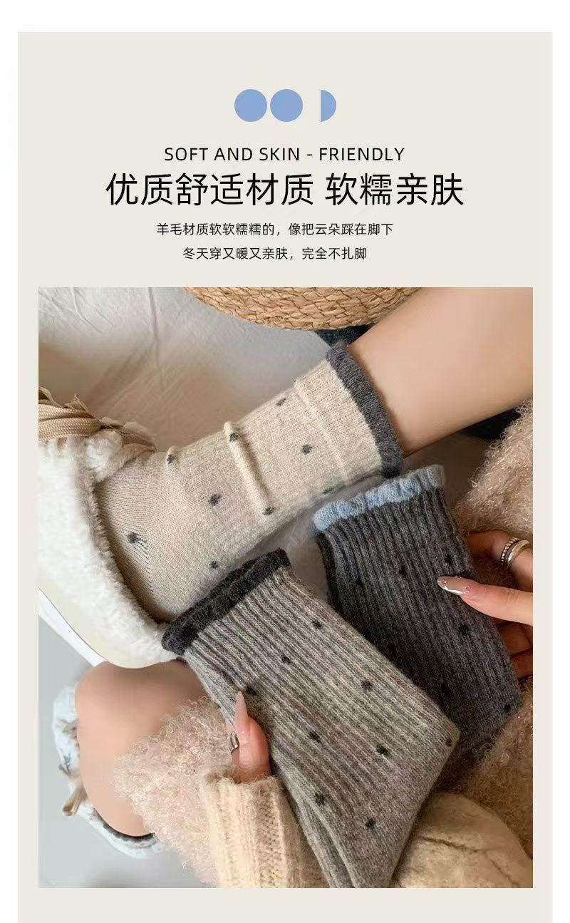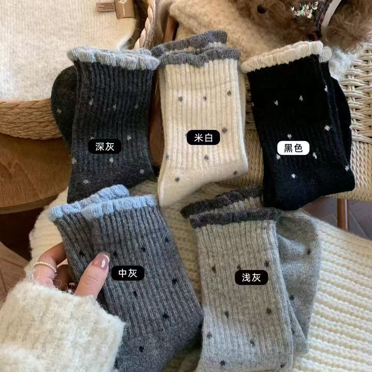 袜子女秋冬款温柔花边百搭长筒波点复古多巴胺学生中筒堆堆袜外穿
