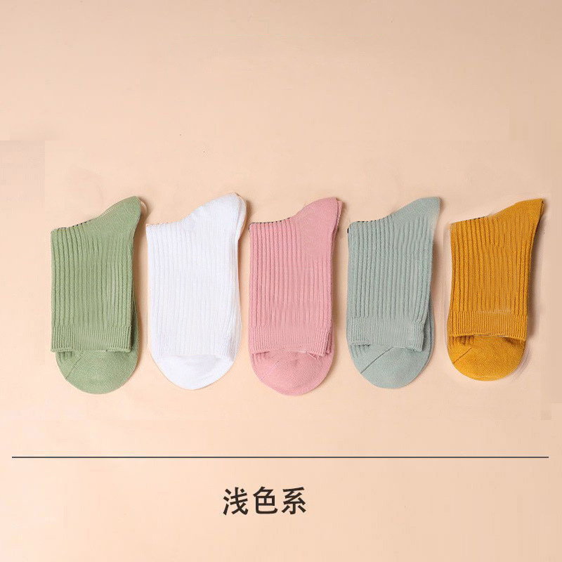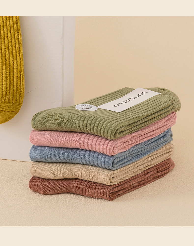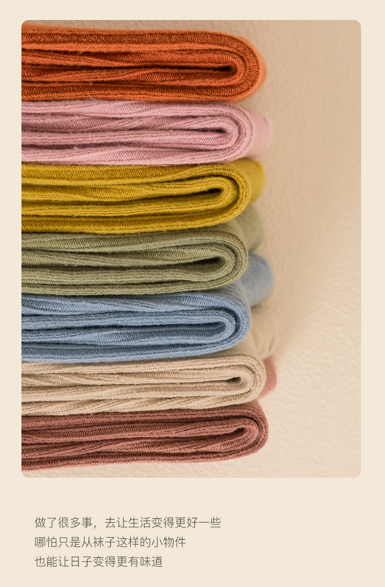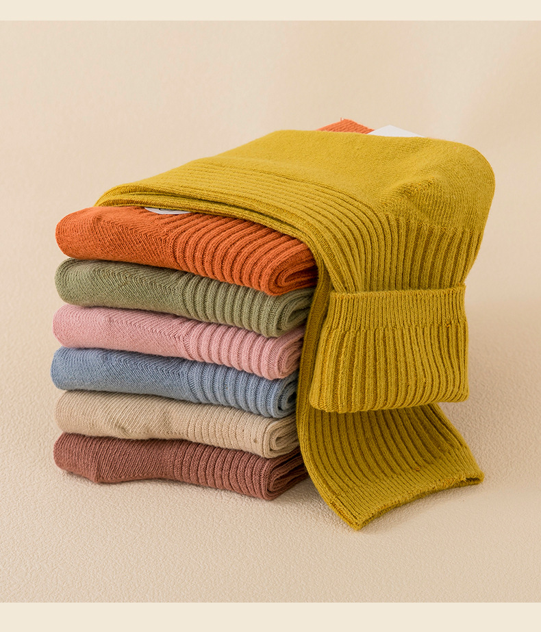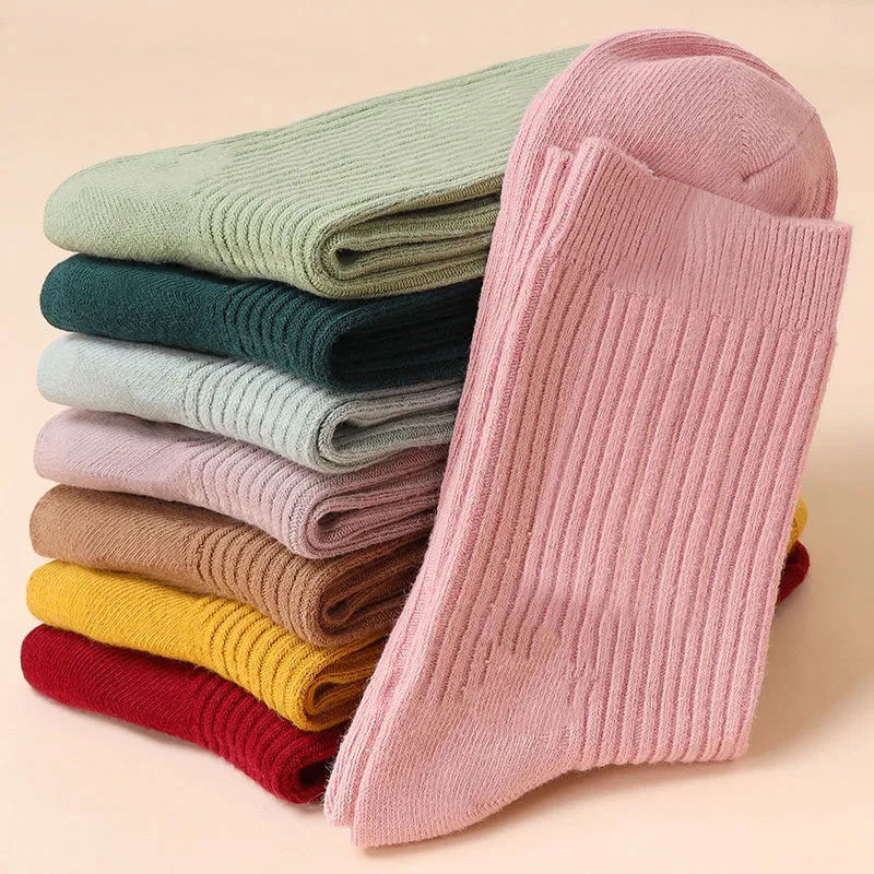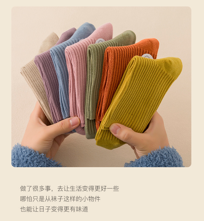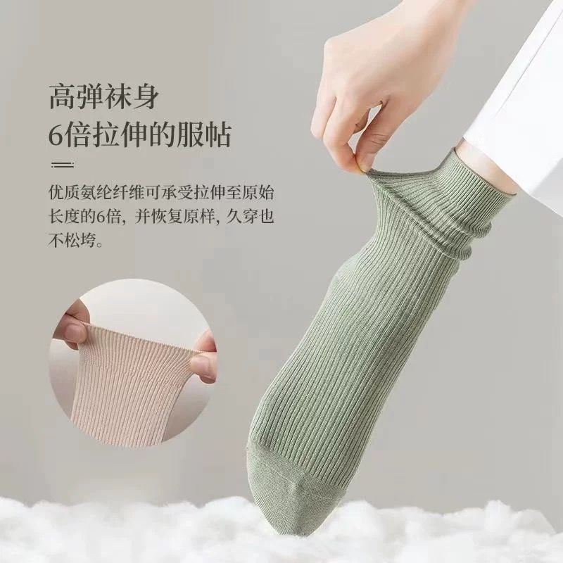 袜子女秋冬季纯色双针加厚中筒袜不起球保暖棉休闲中长腰棉袜女