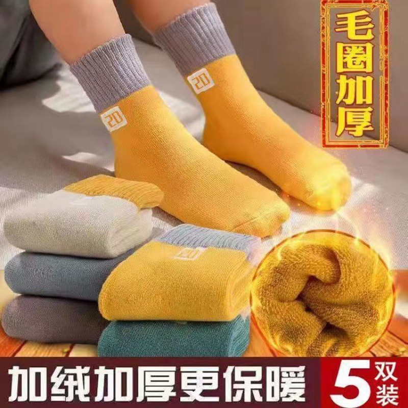 诸暨袜子加厚保暖儿童秋冬款加绒毛圈袜男女童宝宝袜中筒棉袜防臭