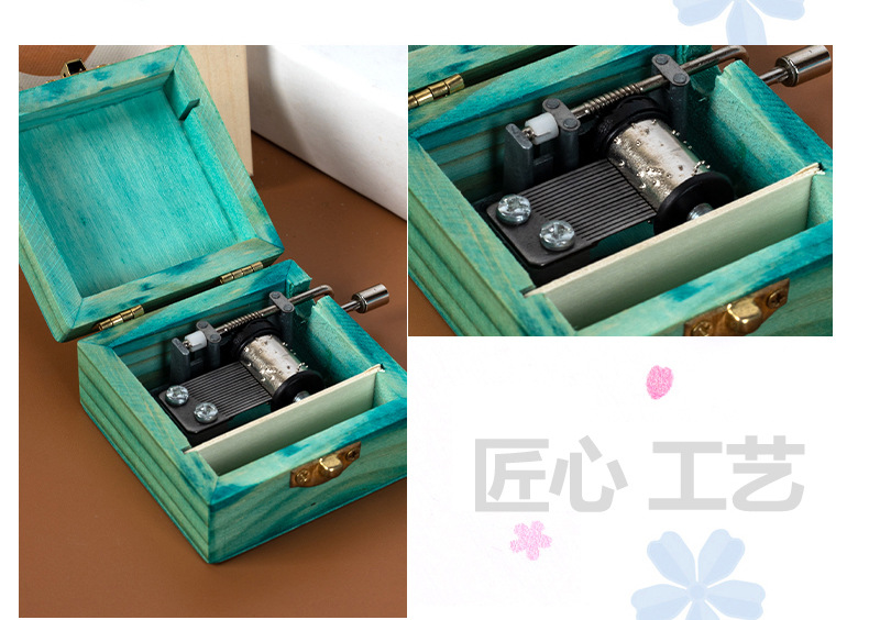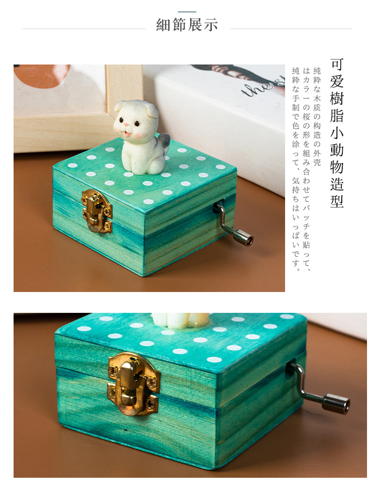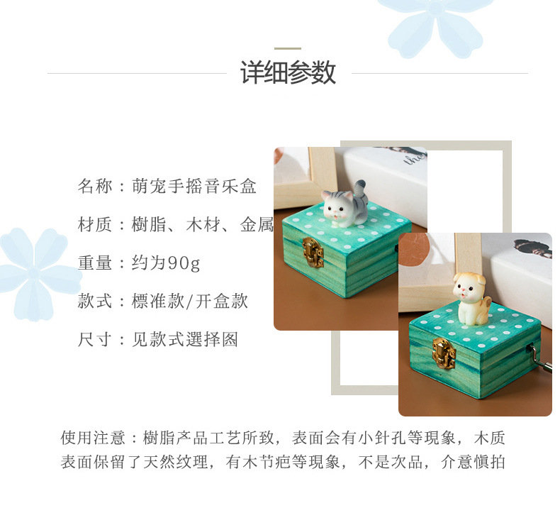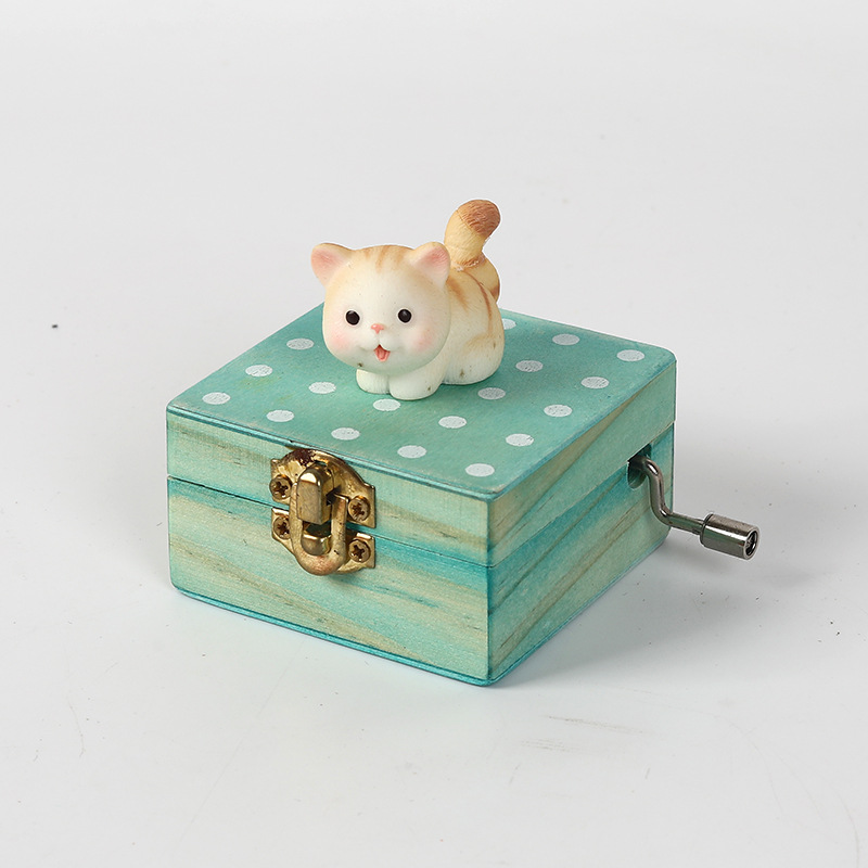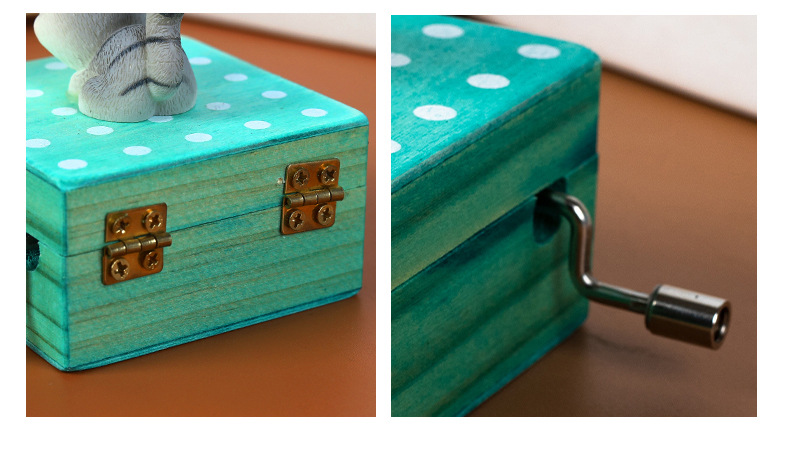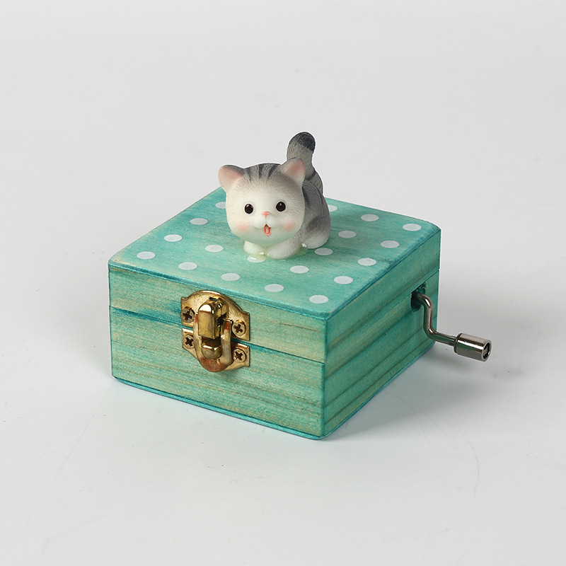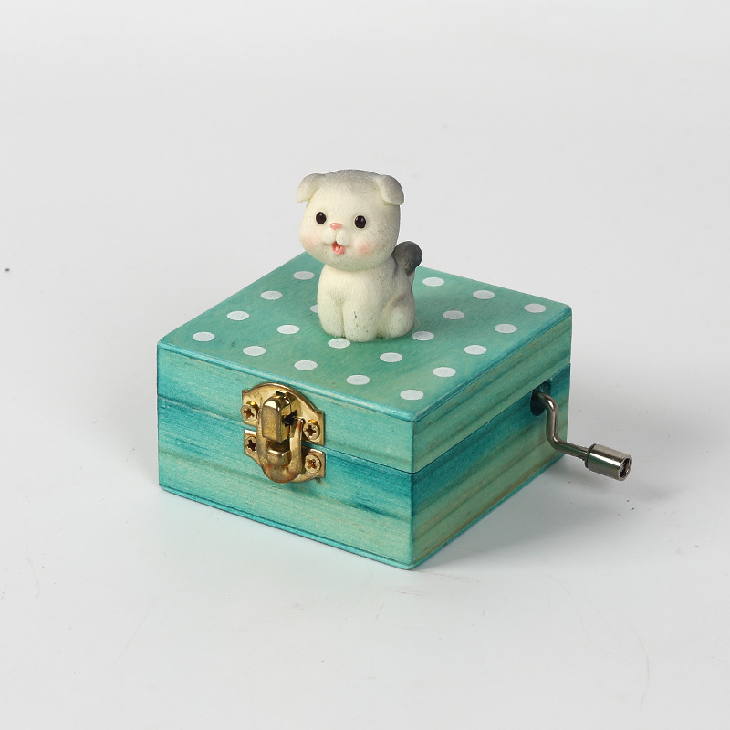 跨境儿童音乐感知木制玩具猫咪狗狗款摇动手柄手摇音乐盒亲子互动
