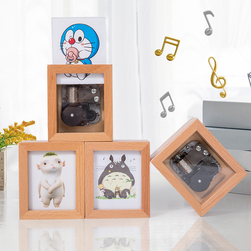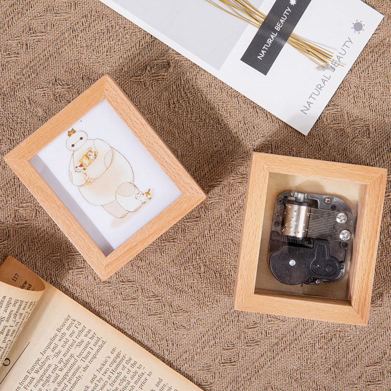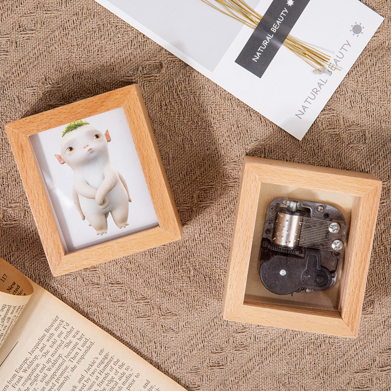 创意手工相框儿童生日礼物摆件玩具木质音乐盒创意透明相册音乐盒
