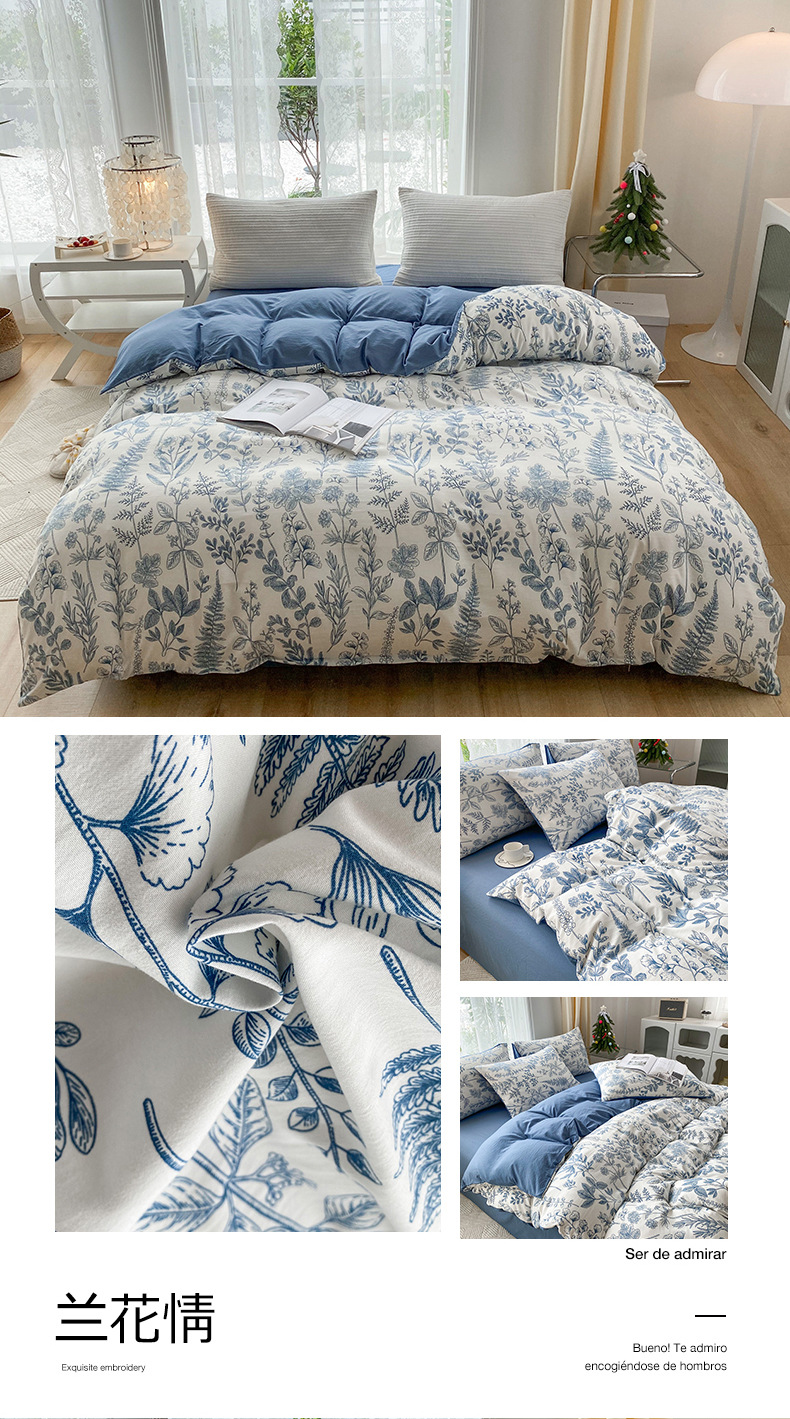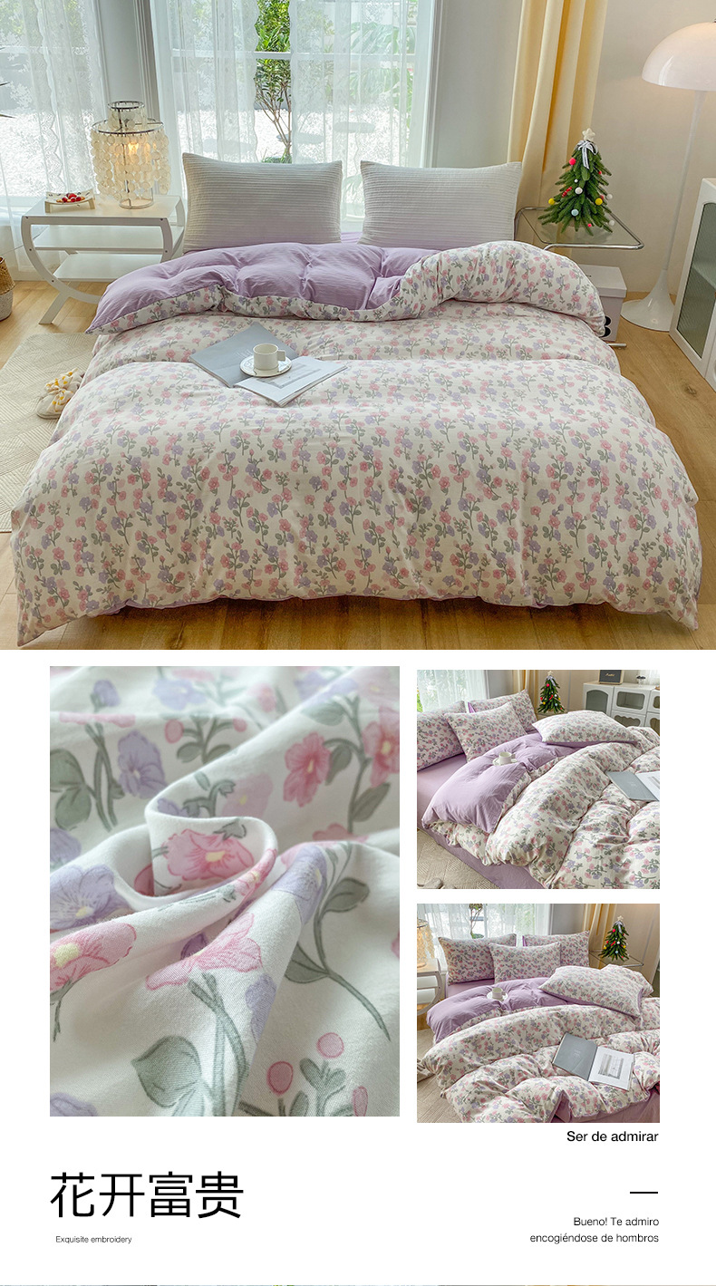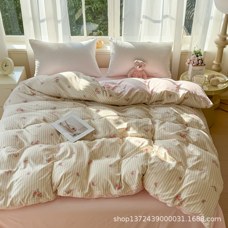 简约1.5单件被套韩系浪漫碎花水洗棉1.8被罩冬季2.0针织棉双层纱
