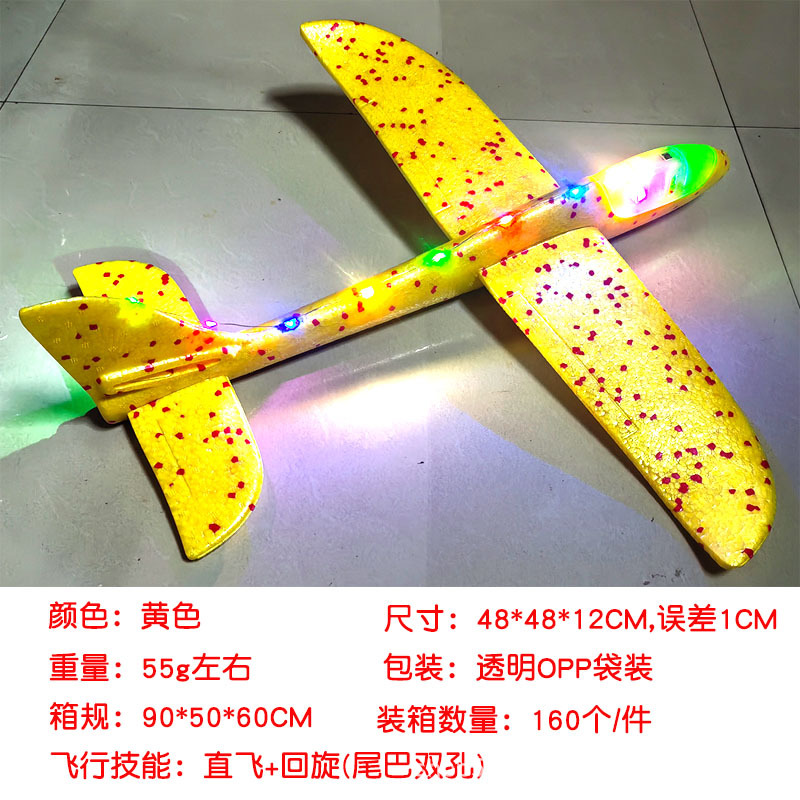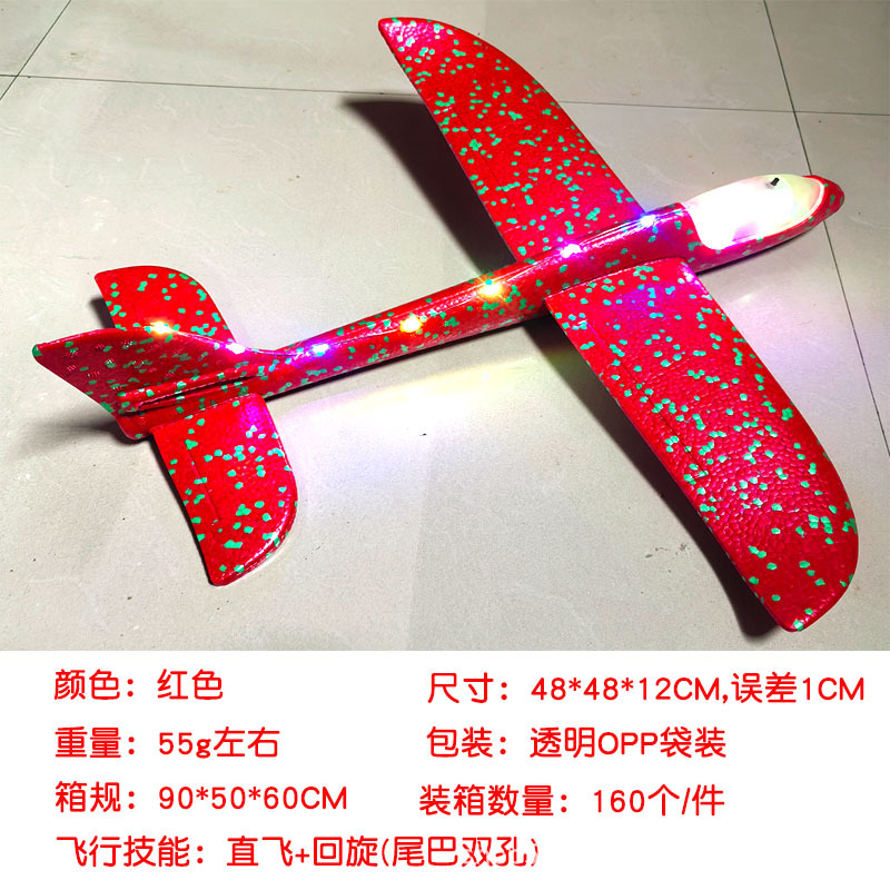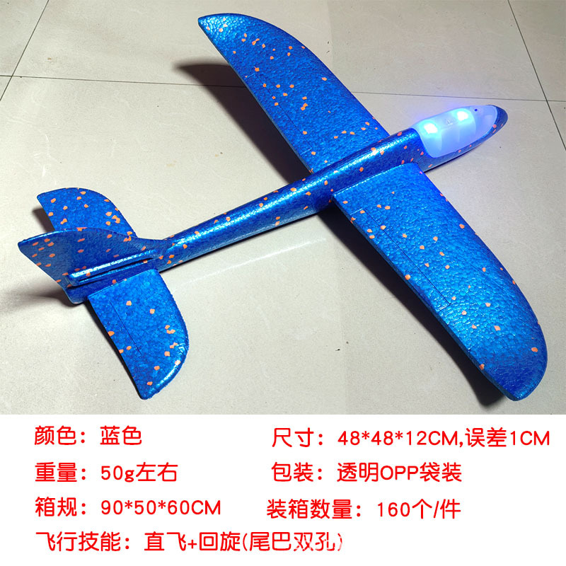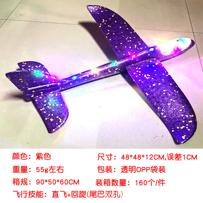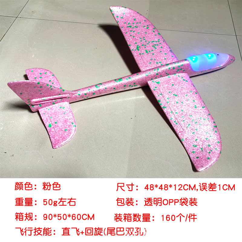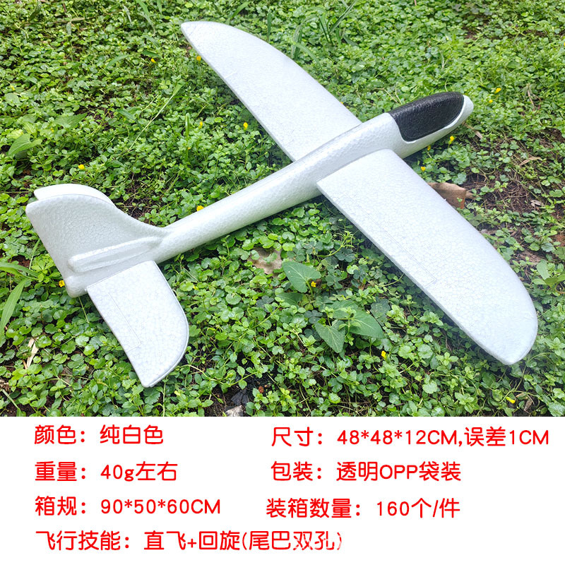 儿童手抛发光泡沫滑翔飞机模型48CM纯白色户外摆摊地推礼品玩具