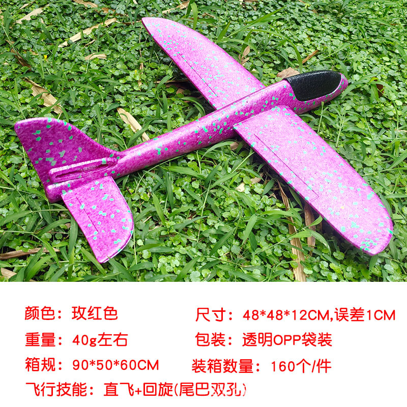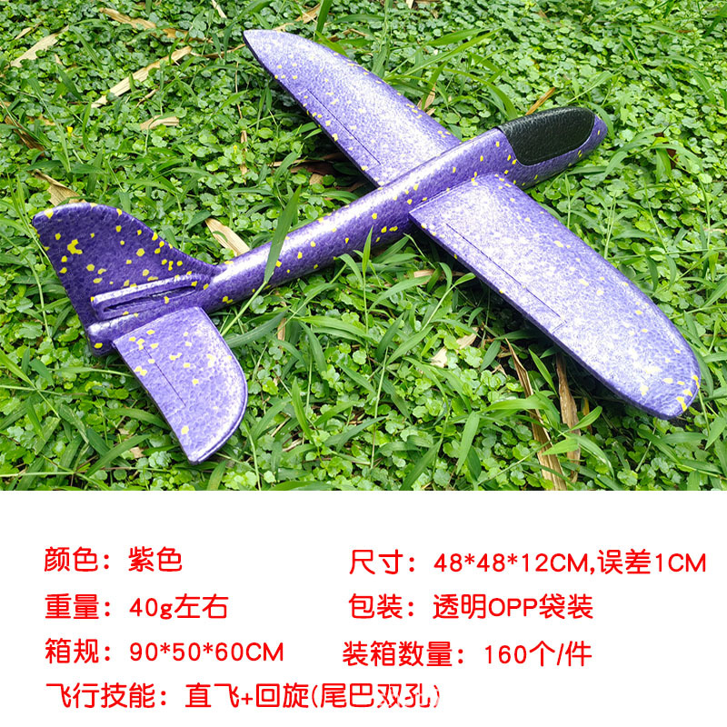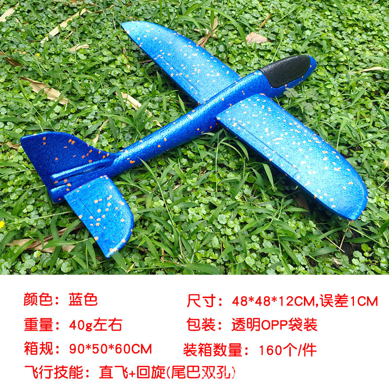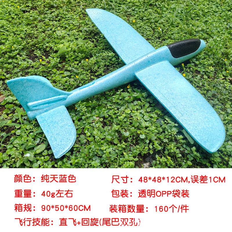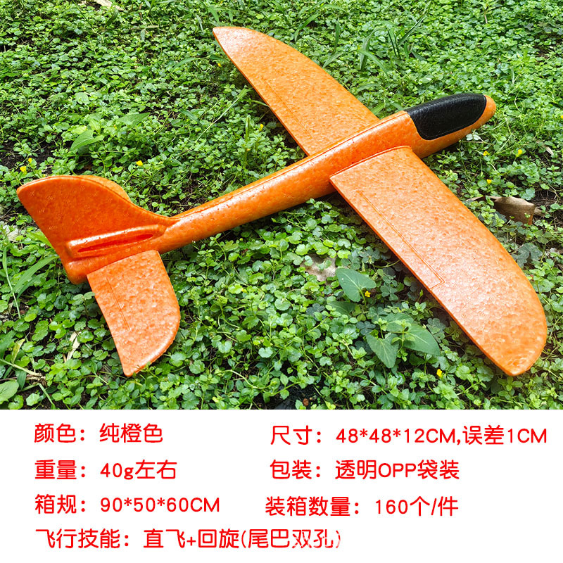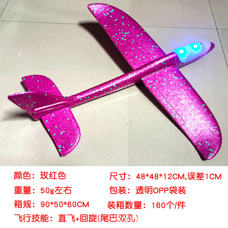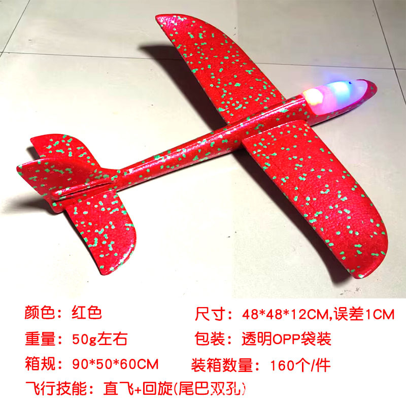 儿童手抛发光泡沫滑翔飞机模型48CM纯白色户外摆摊地推礼品玩具