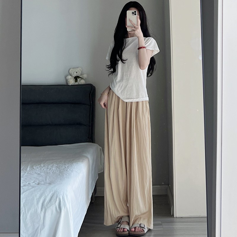 多巴胺慵懒山本裤女春夏薄款2024新款高腰垂感直筒冰丝棉麻阔腿裤