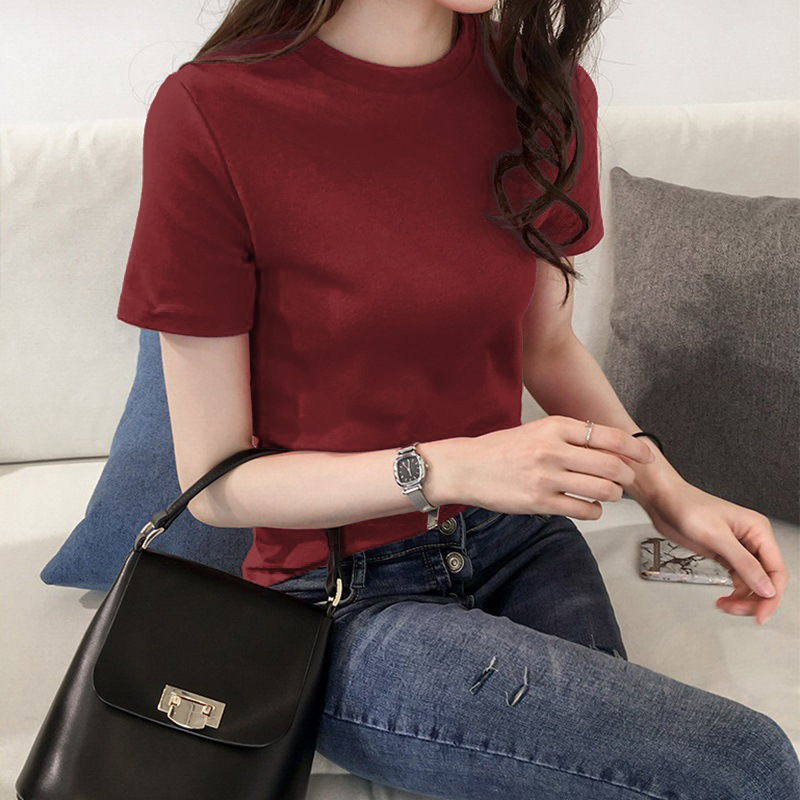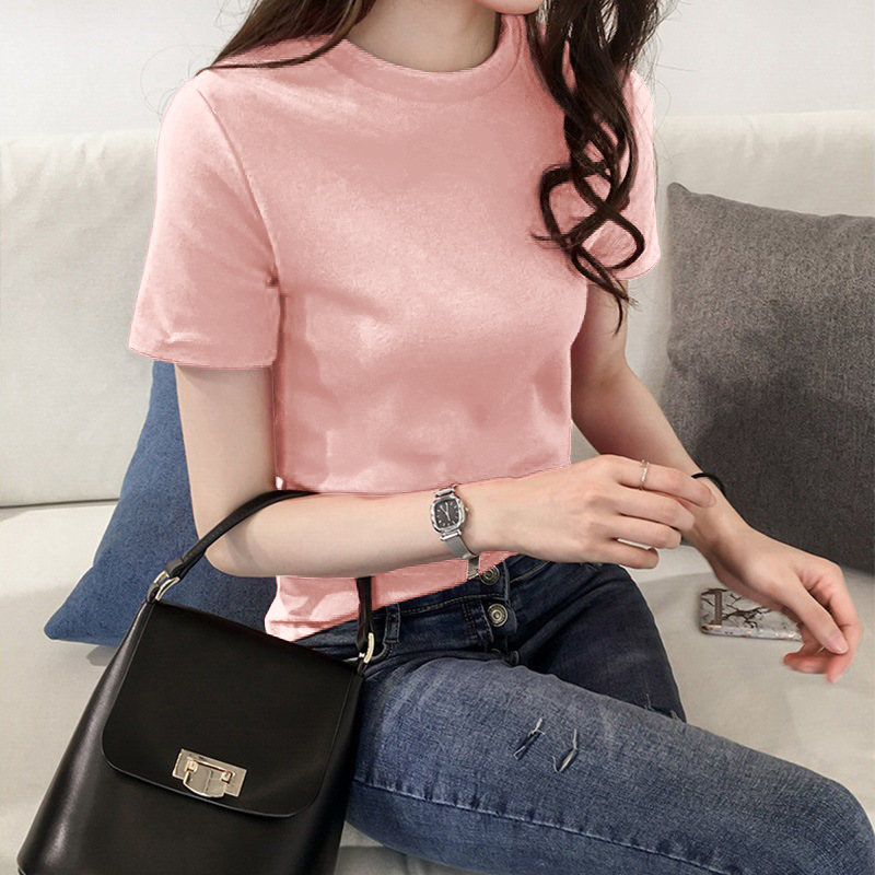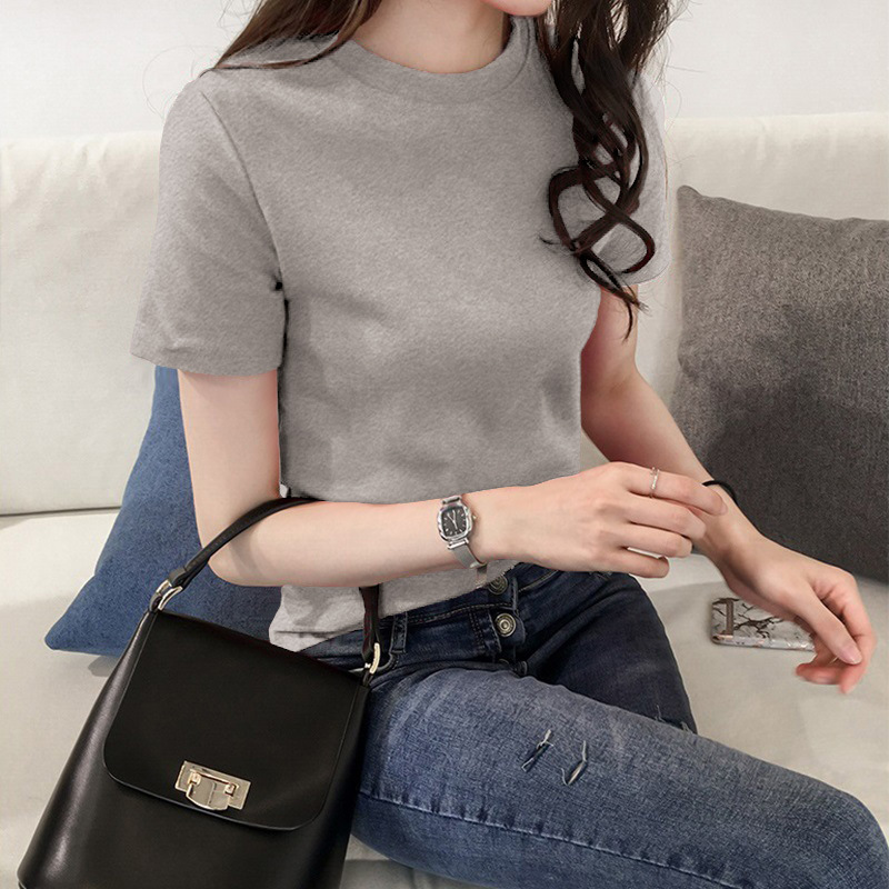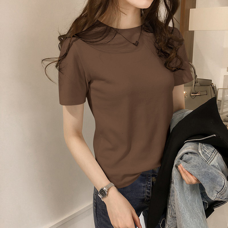 五笔蟹ins女装宽松t恤女夏季2025韩版新款修身纯色女式体恤衫批发