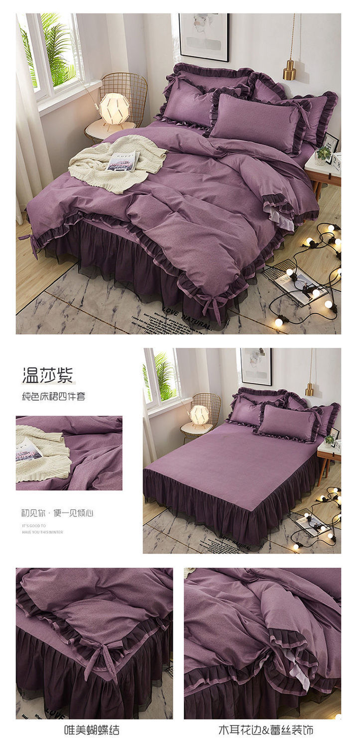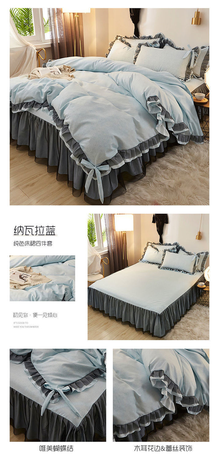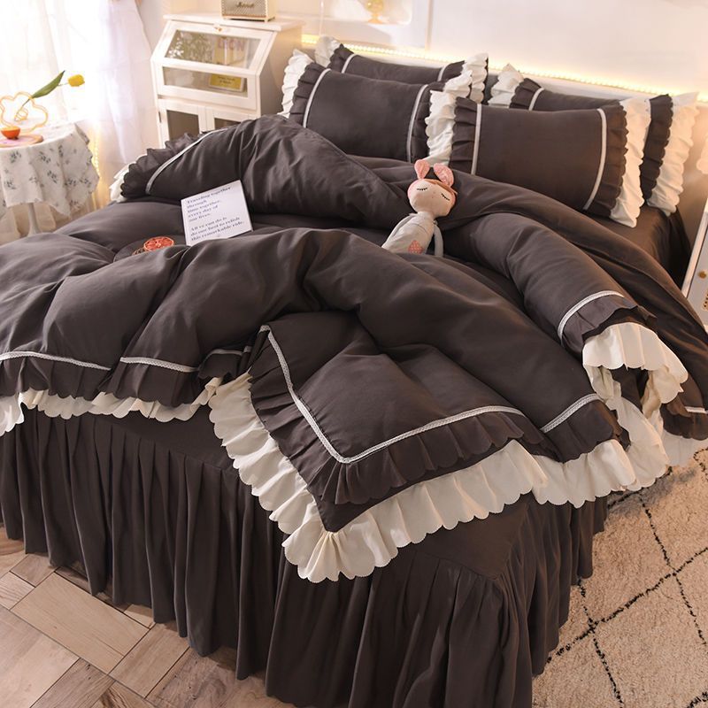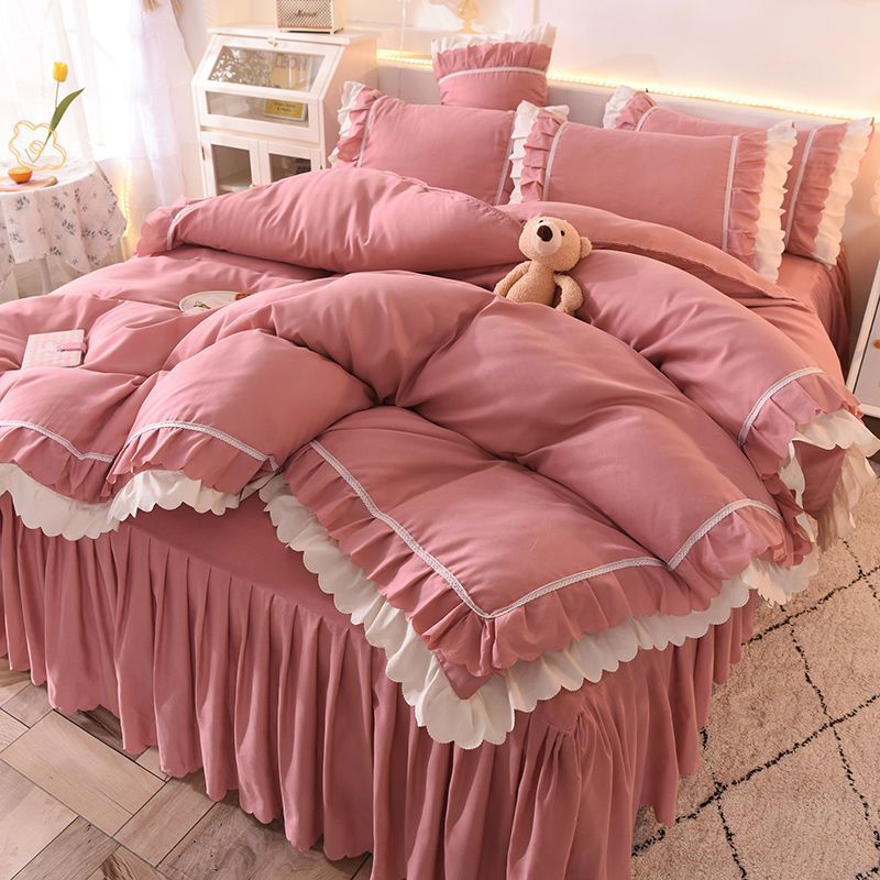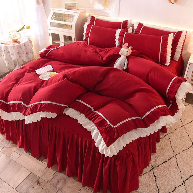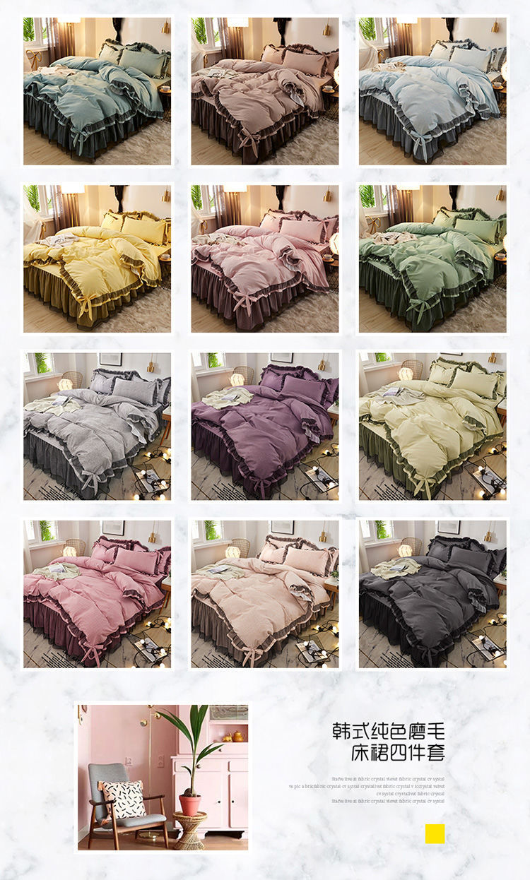 网红款加厚床裙四件套韩版公主风磨毛床罩床单双人被套床上三件套