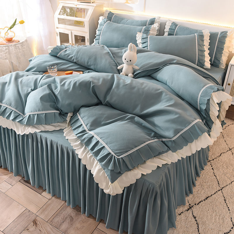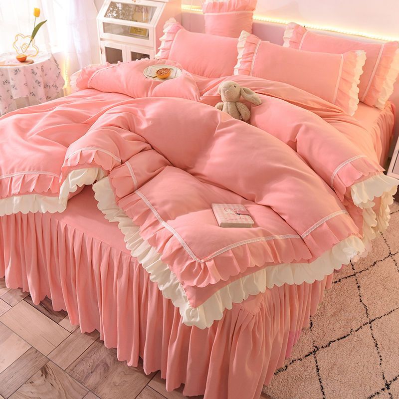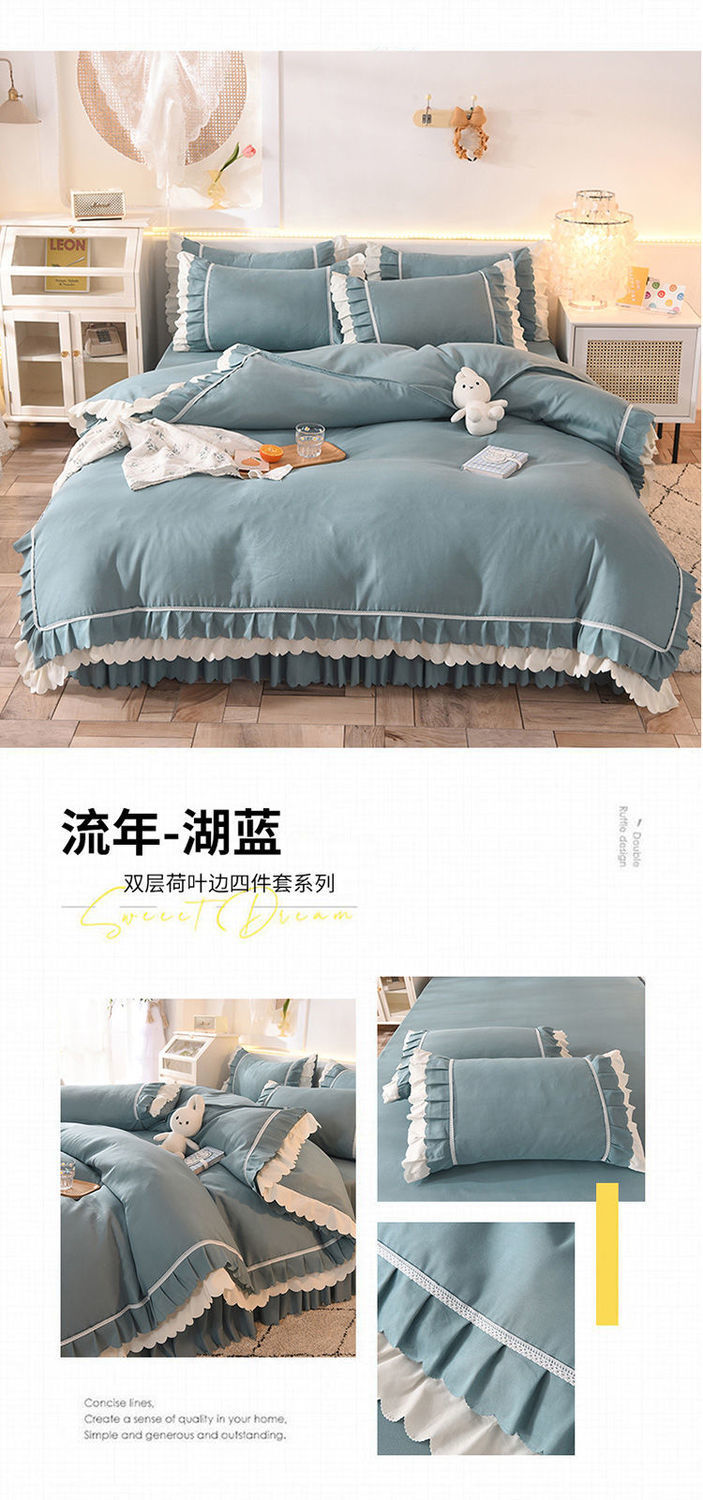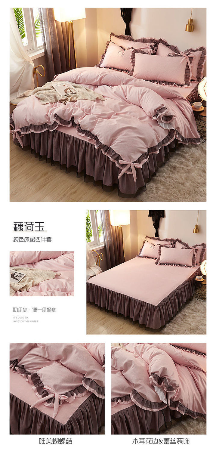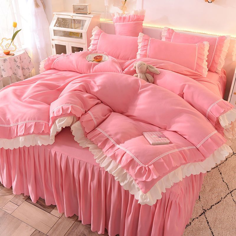 网红款加厚床裙四件套韩版公主风磨毛床罩床单双人被套床上三件套