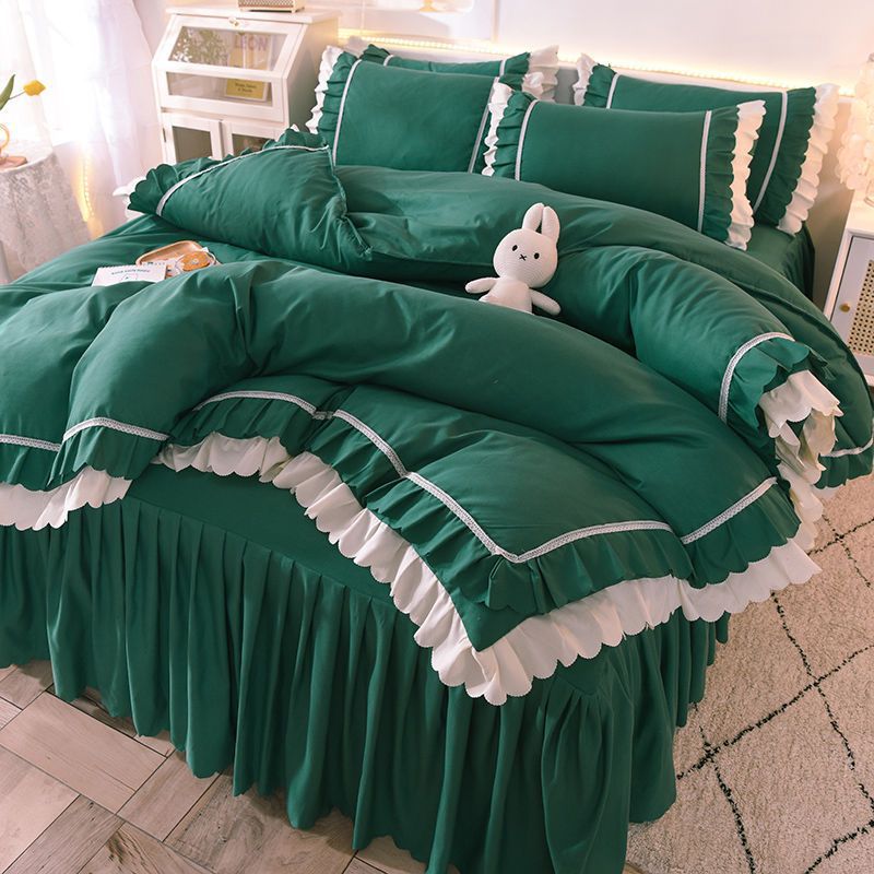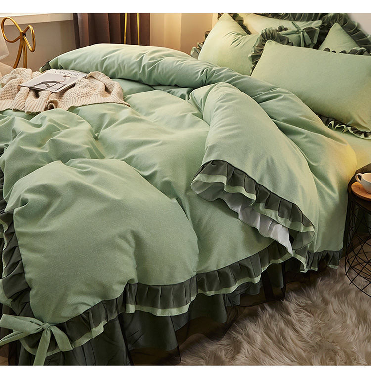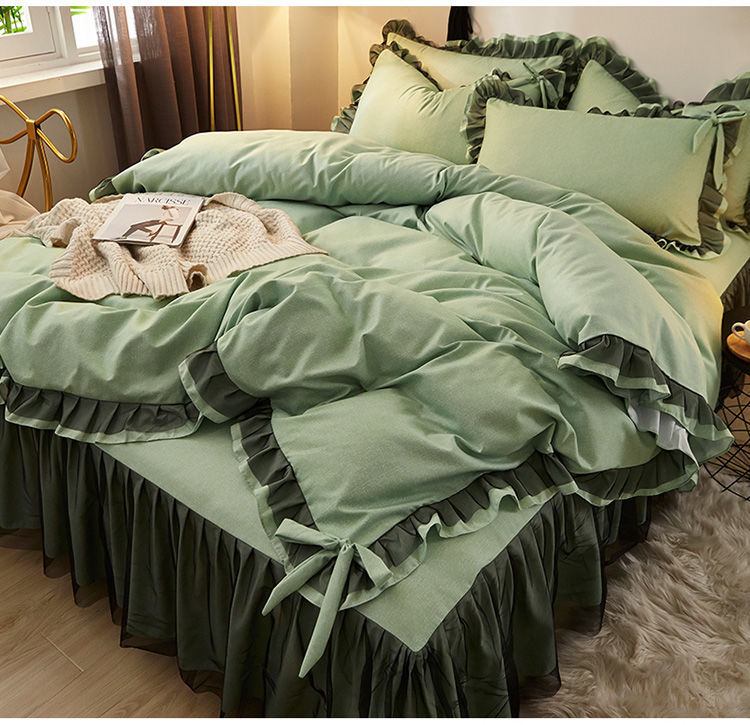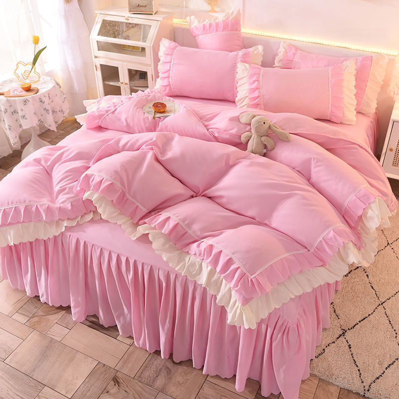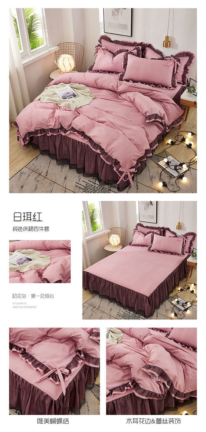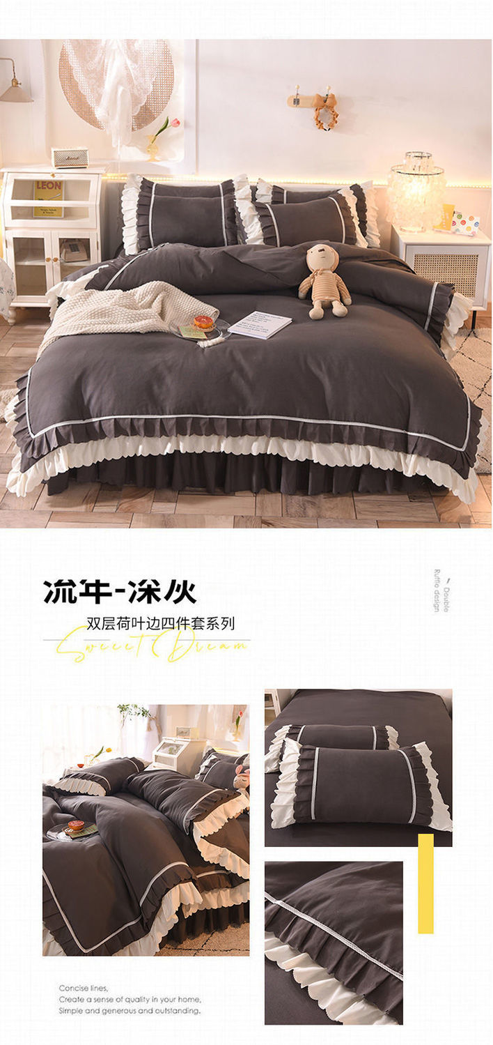 网红款加厚床裙四件套韩版公主风磨毛床罩床单双人被套床上三件套