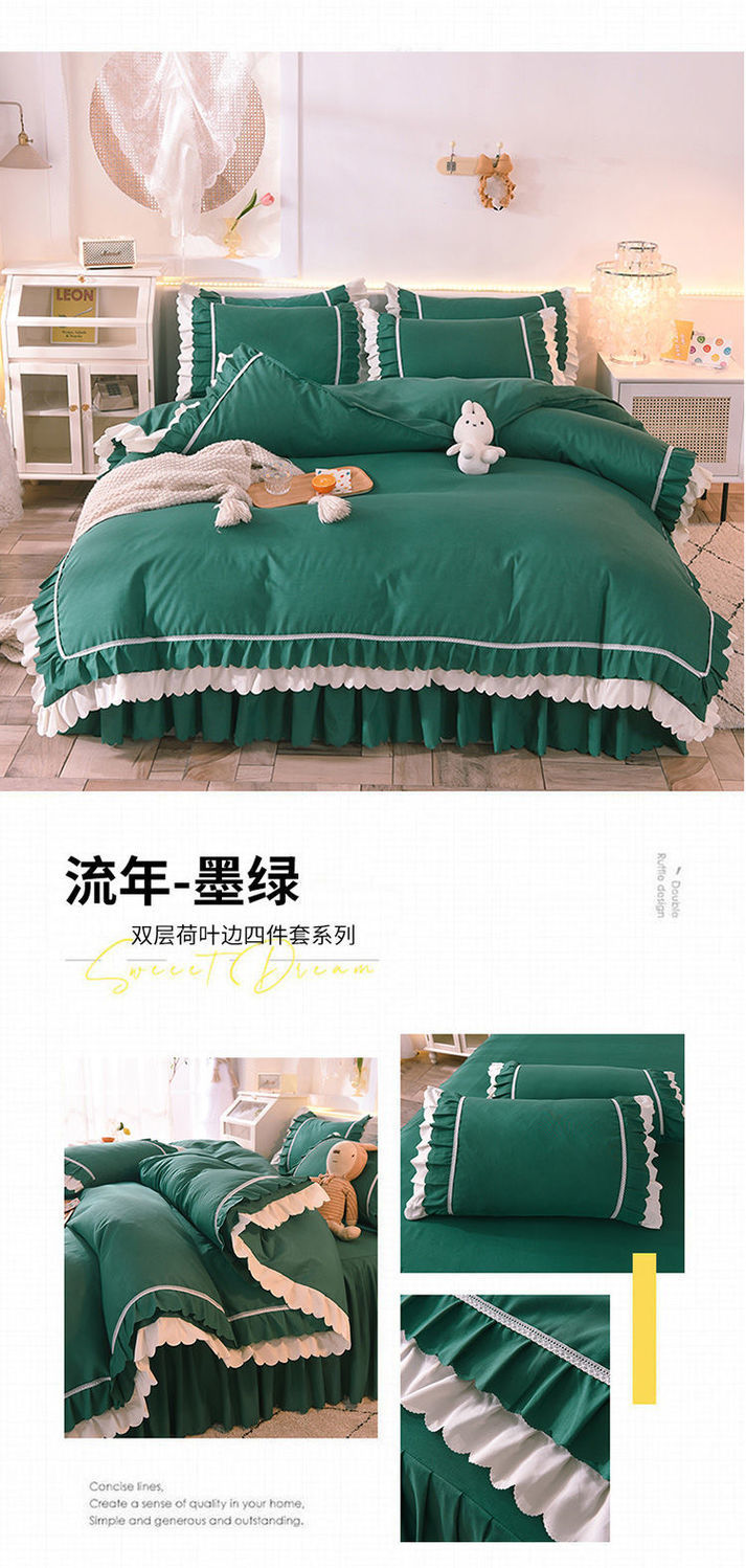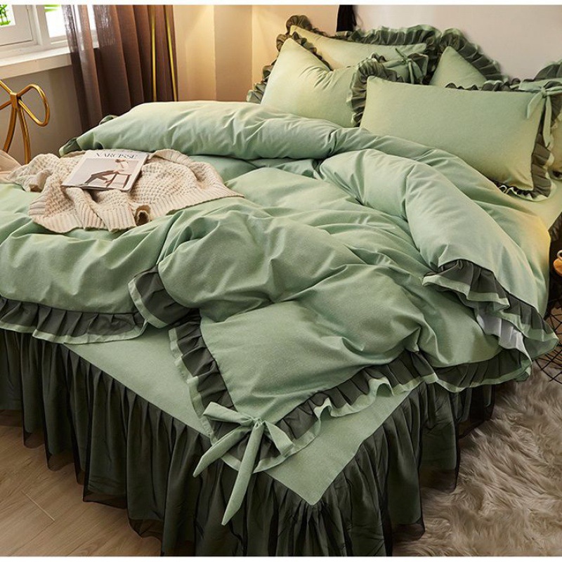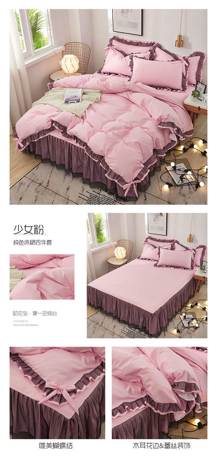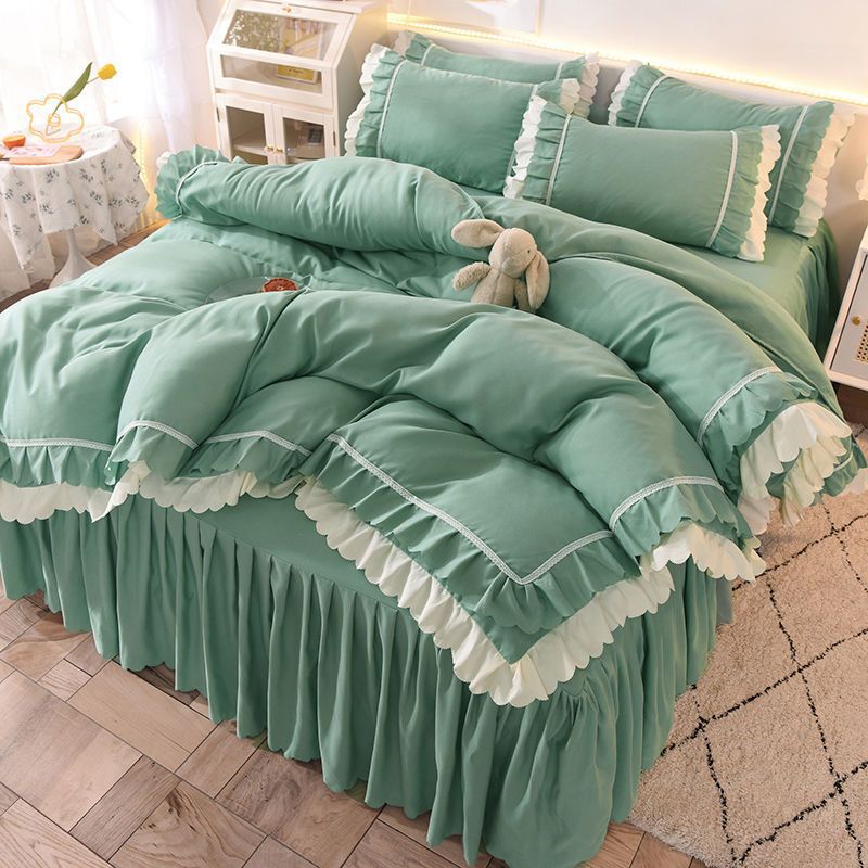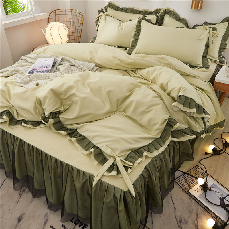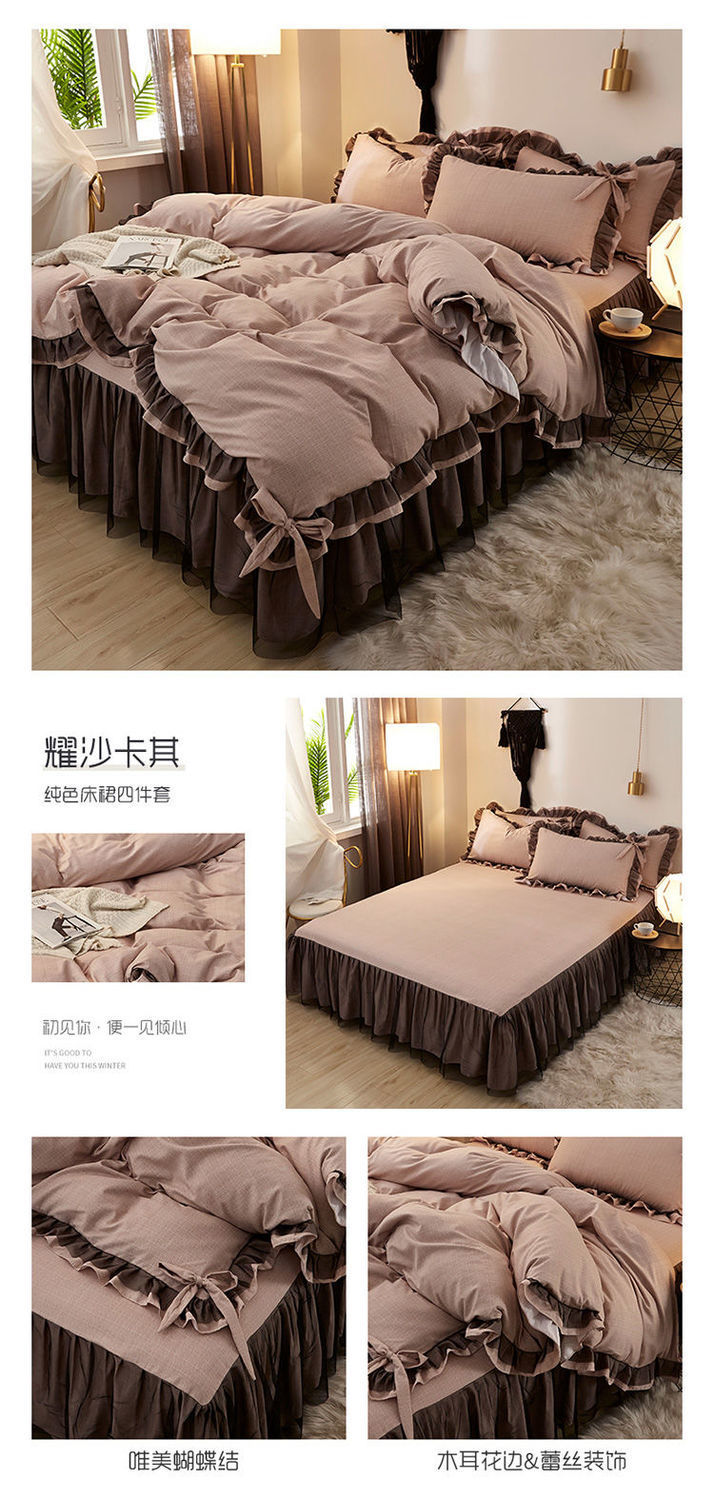 网红款加厚床裙四件套韩版公主风磨毛床罩床单双人被套床上三件套