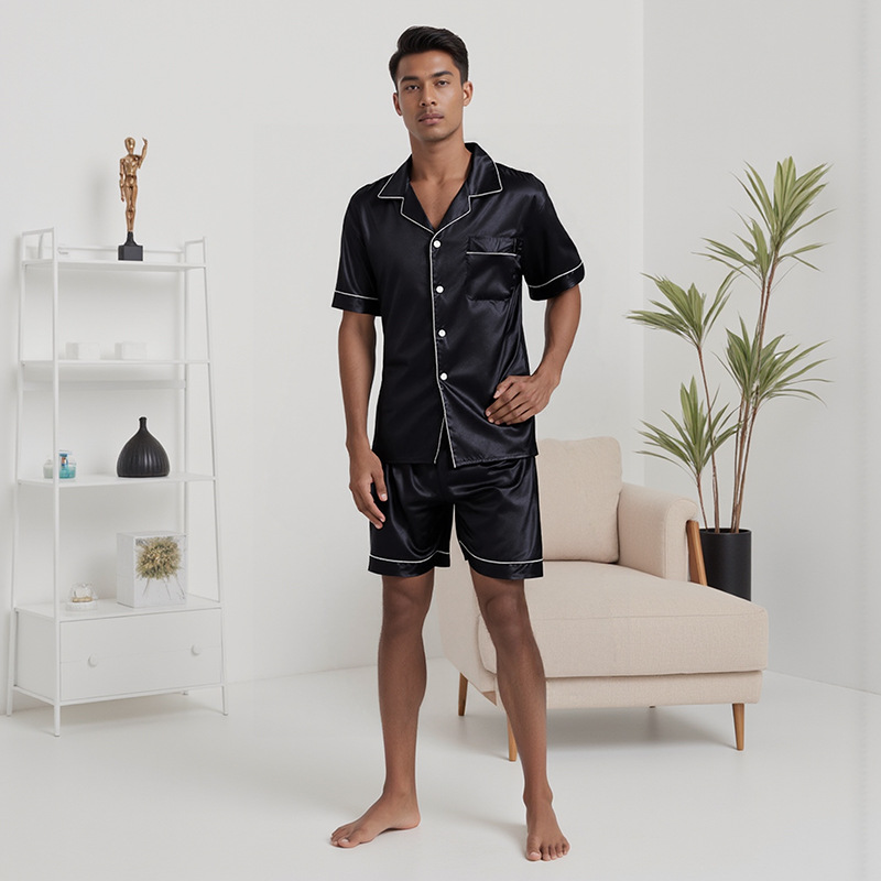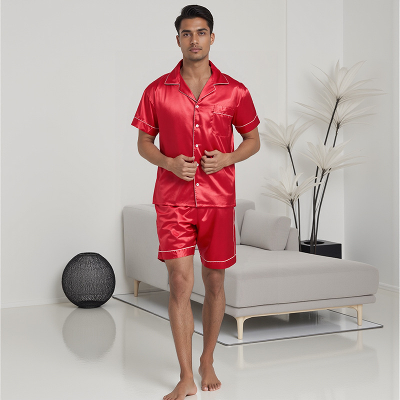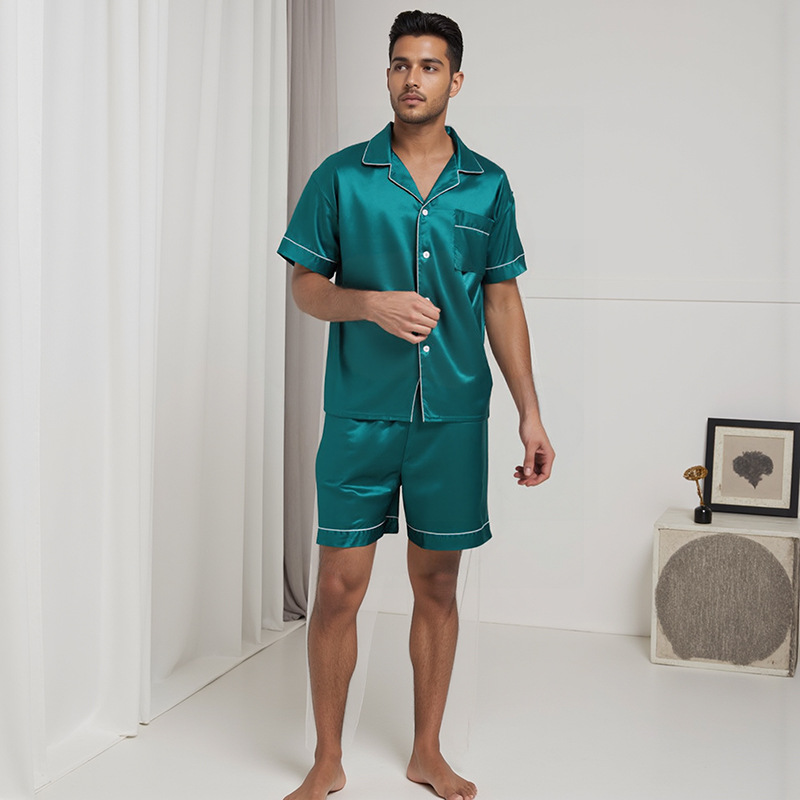 跨境亚马逊夏季男士翻领居家套装薄款睡衣男款宽松大码家居服批发