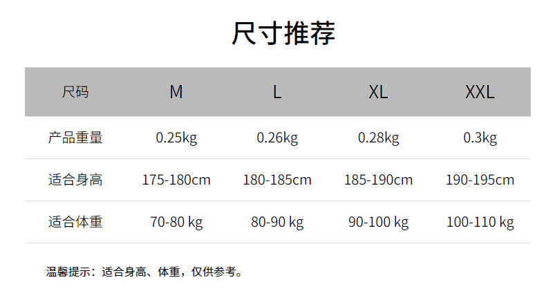 | XXL(100-110kg) | USD $0.0 | 999 piece available |