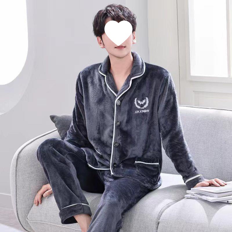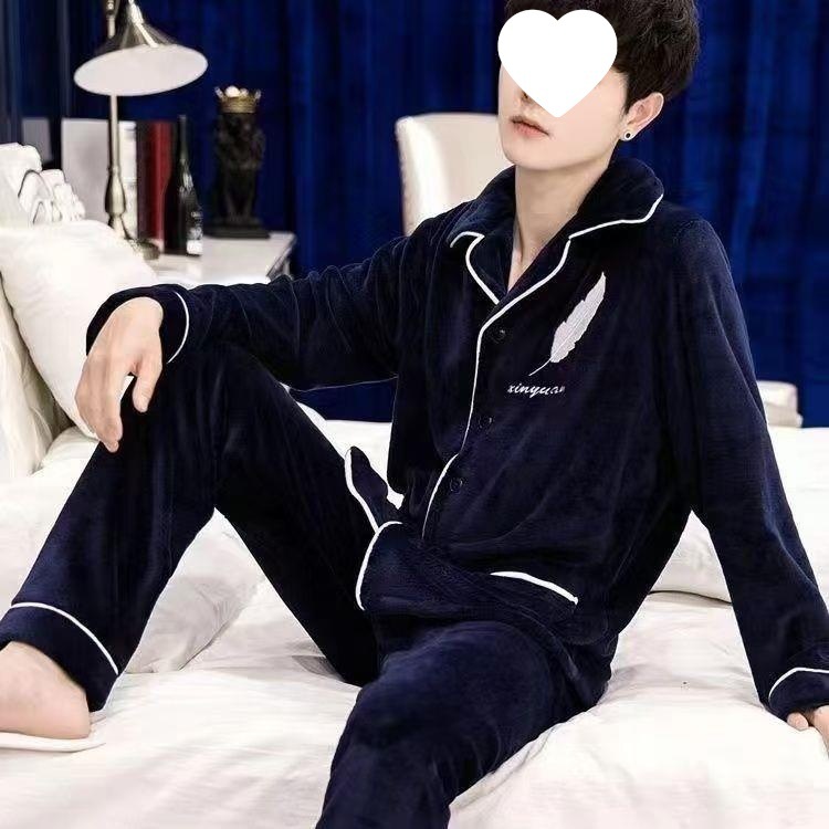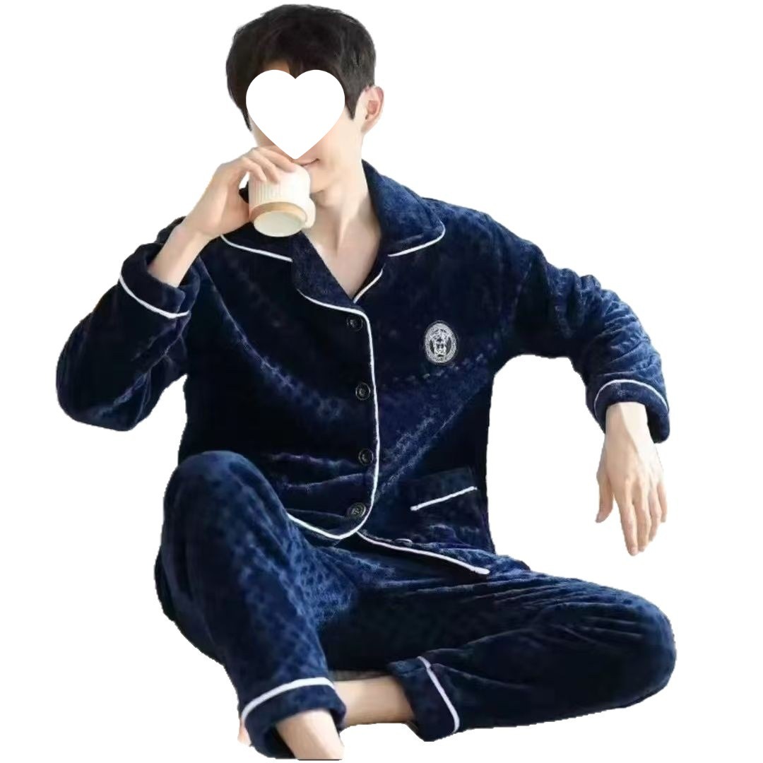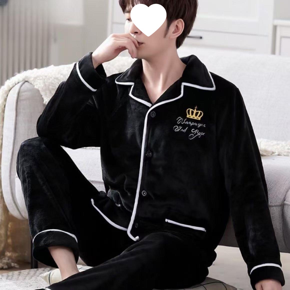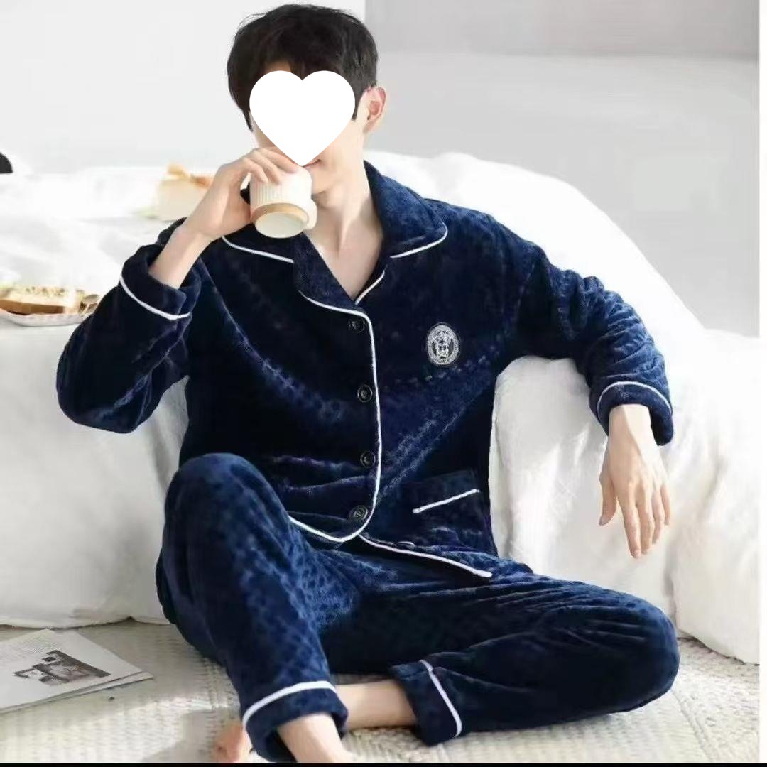 法兰绒男士家居服珊瑚秋冬春秋加厚新款保暖肥大加绒睡衣冬季套装