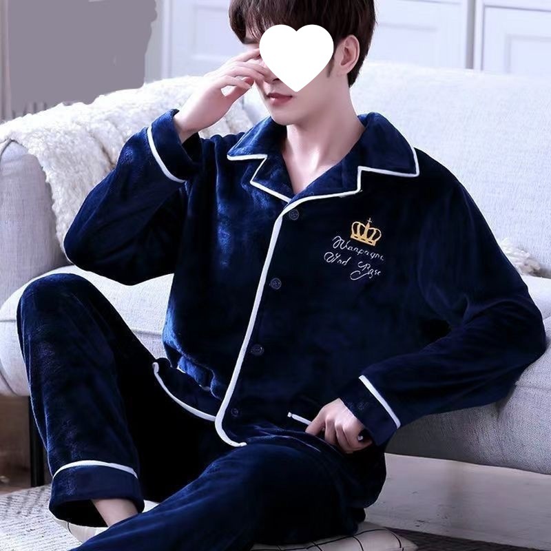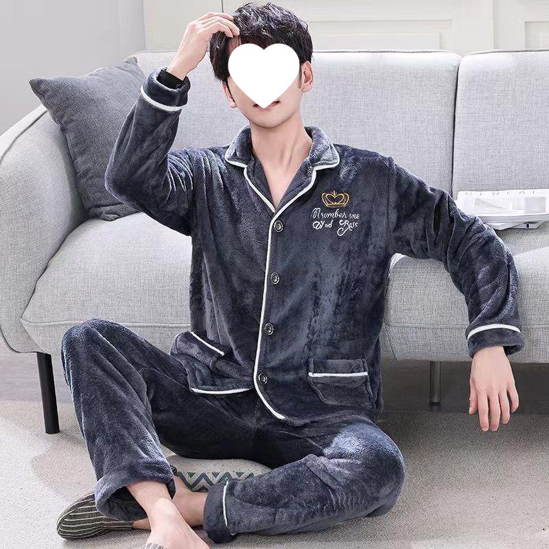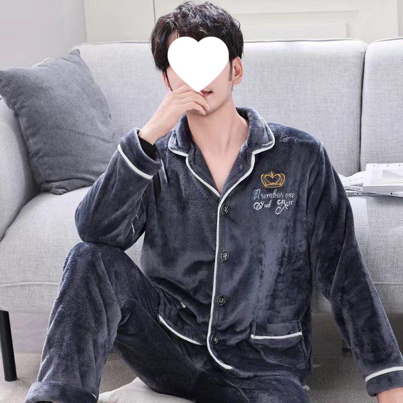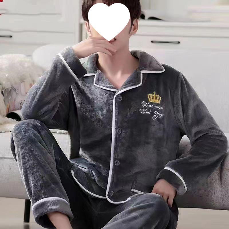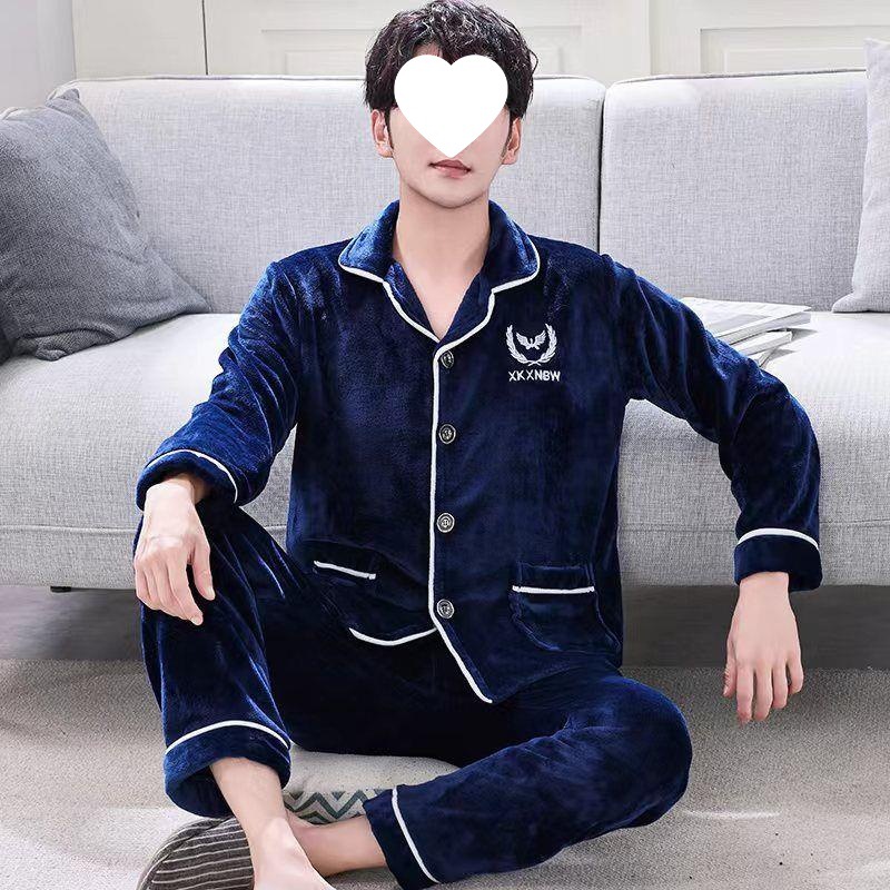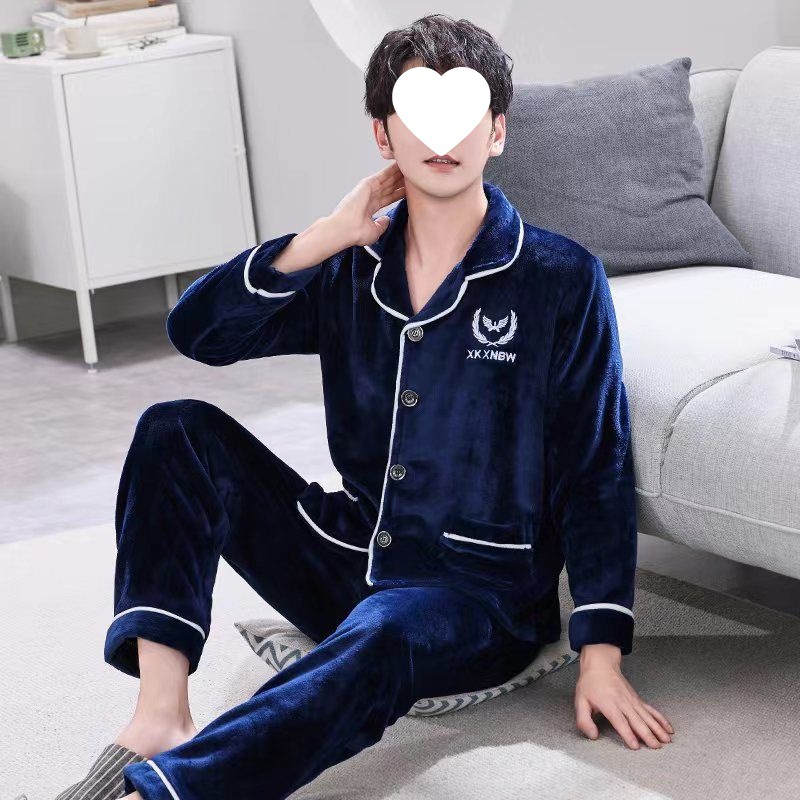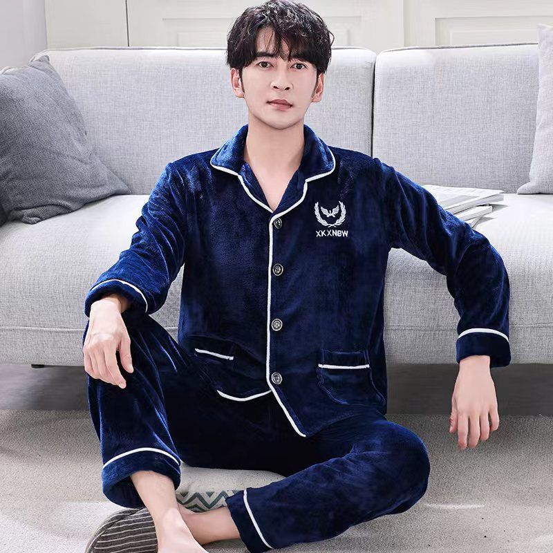 法兰绒男士家居服珊瑚秋冬春秋加厚新款保暖肥大加绒睡衣冬季套装
