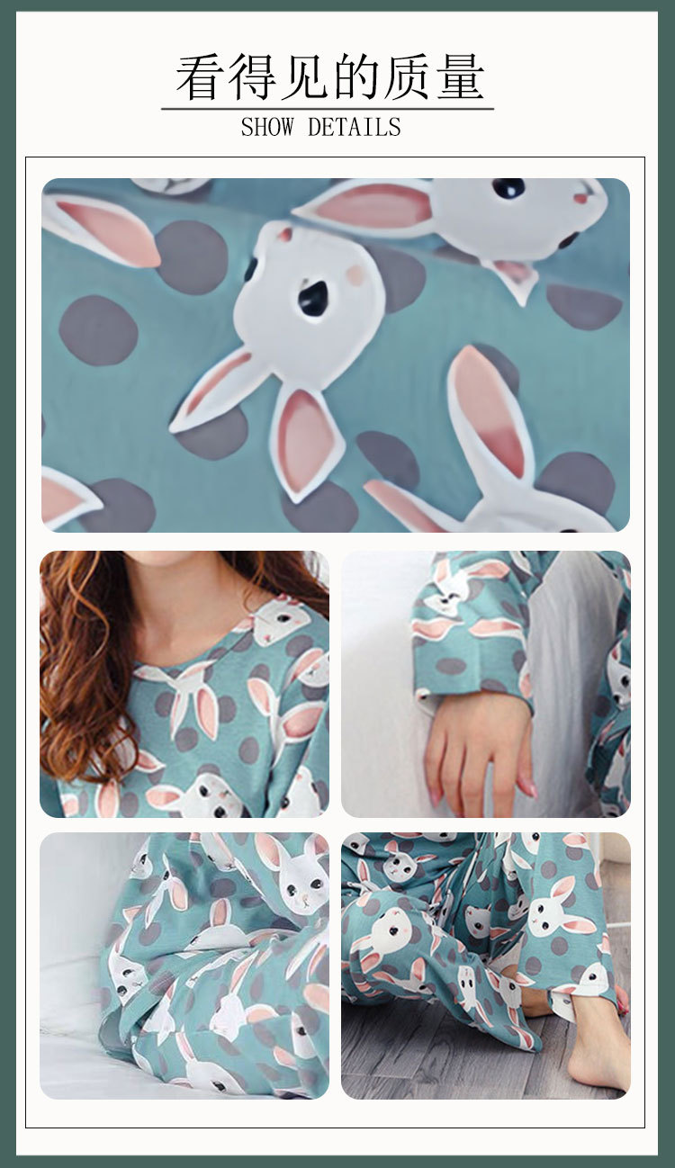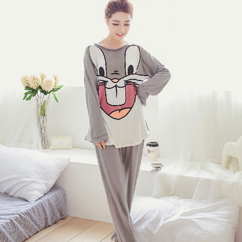 可爱兔八哥春季睡衣女长袖秋天轻薄款卡通女士新款韩版家居服套装