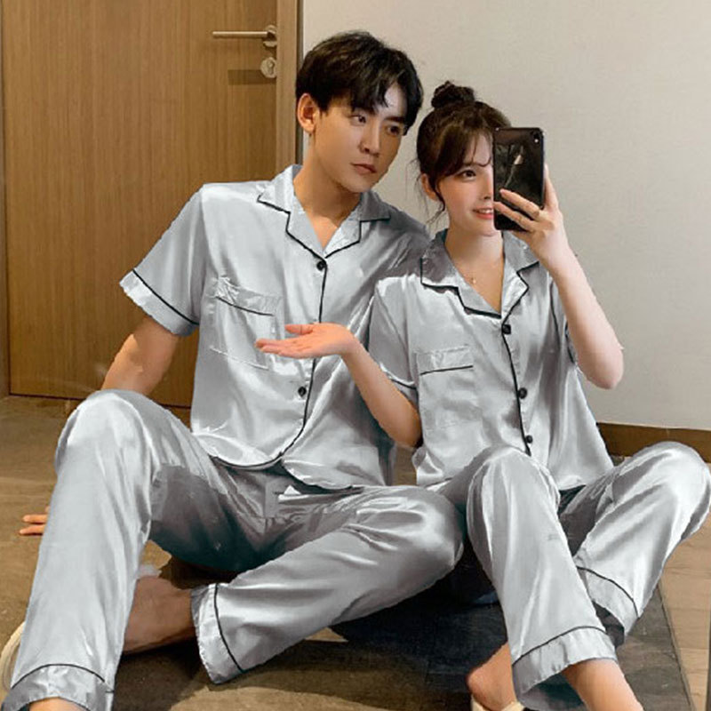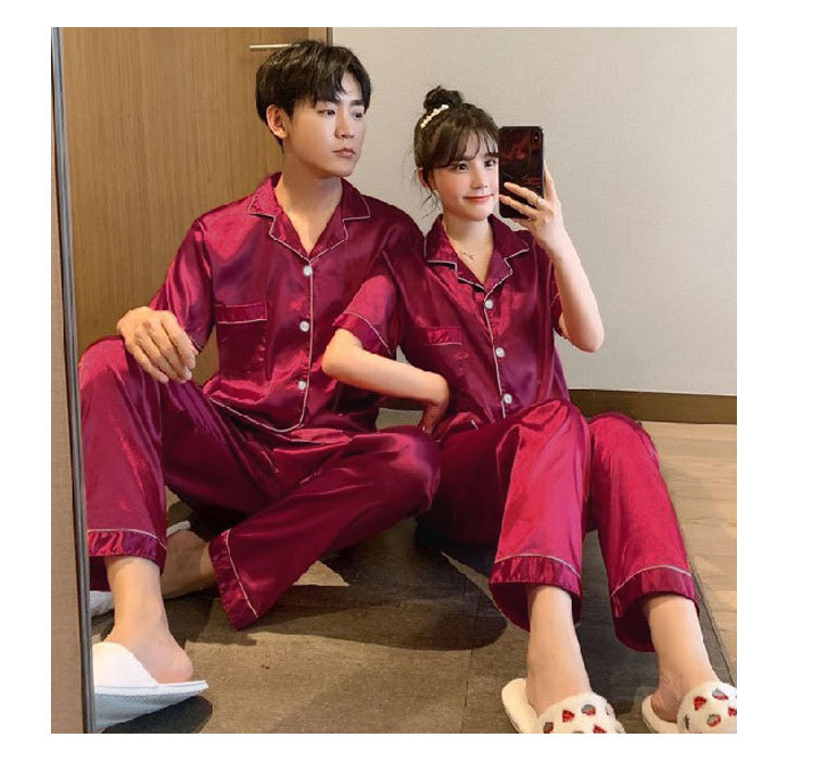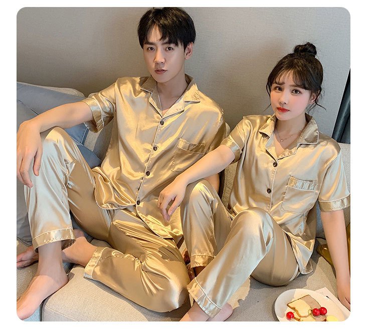 工厂春秋季情侣睡衣女夏天冰丝绸薄款男士仿真丝长短袖家居服套装