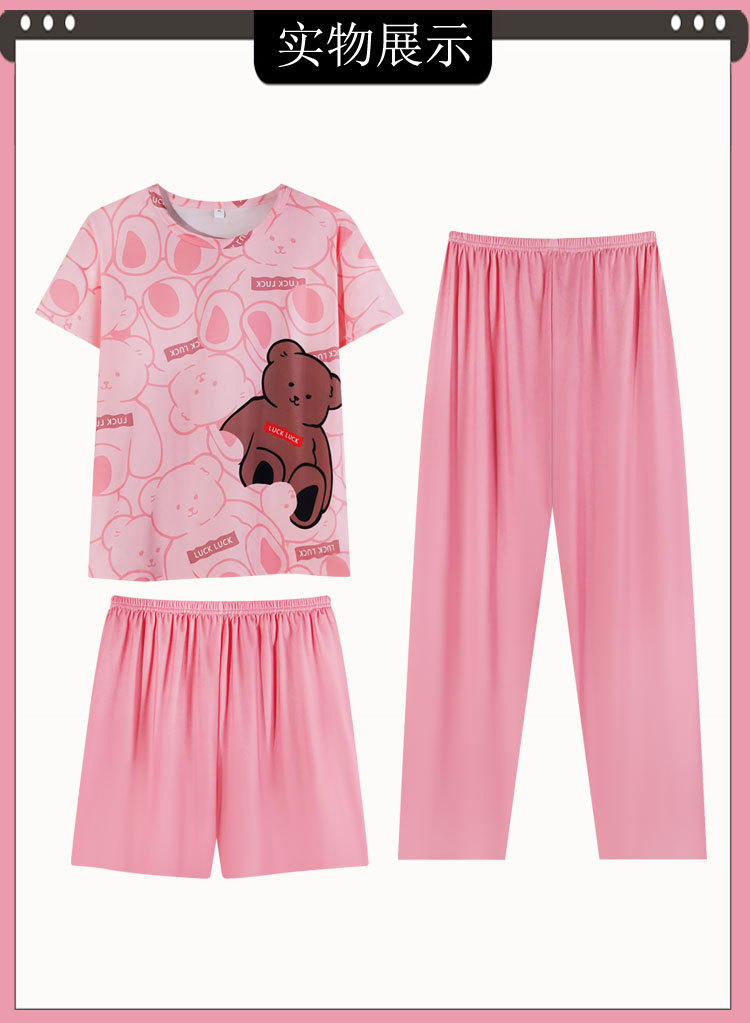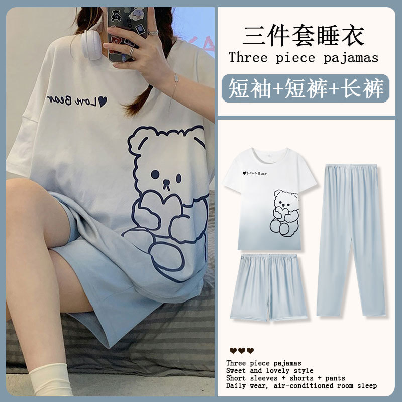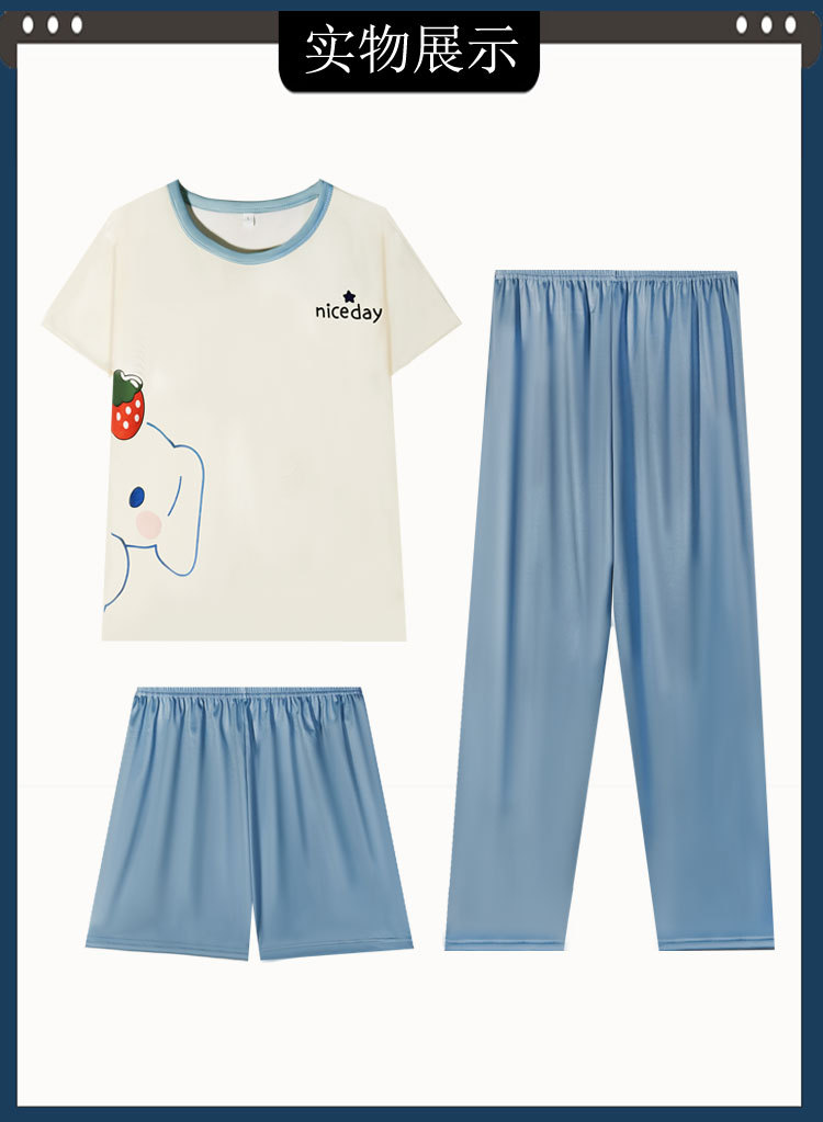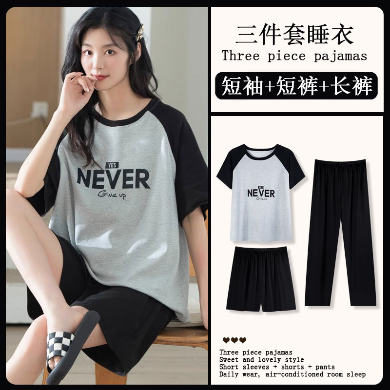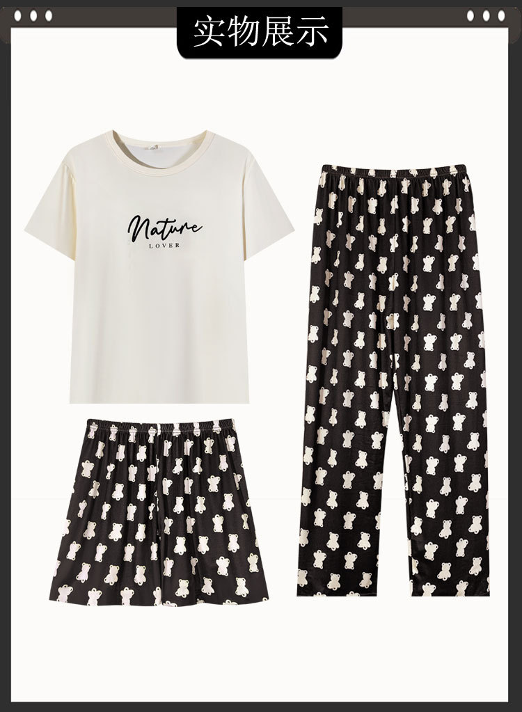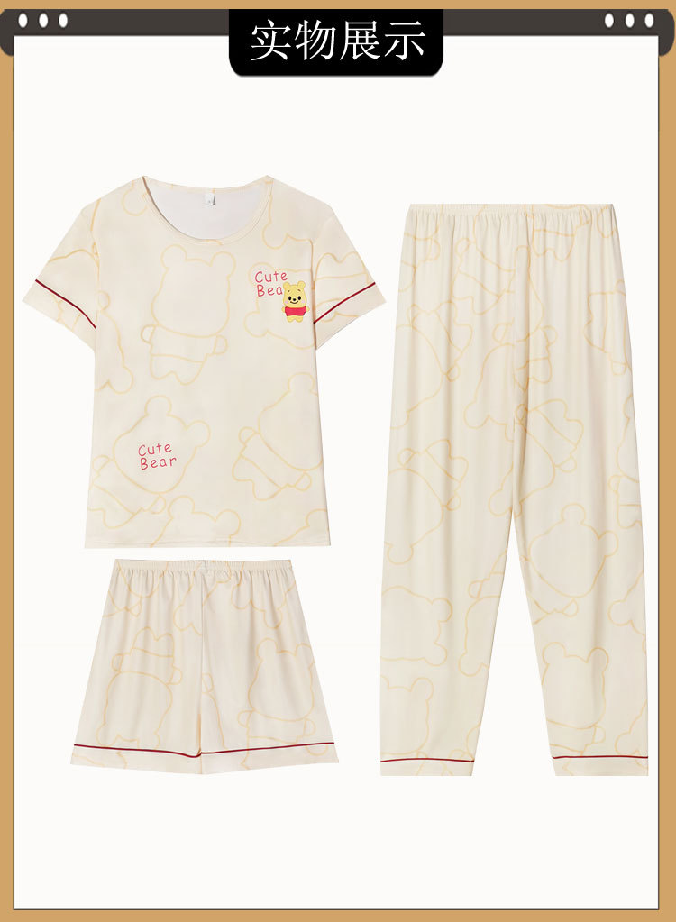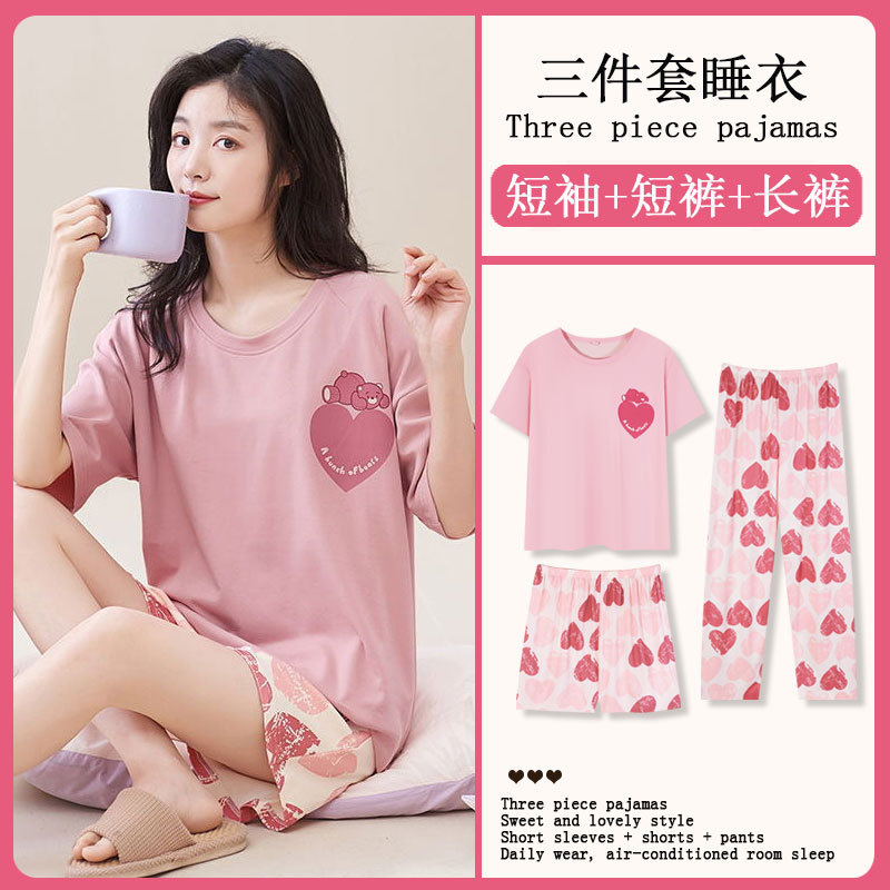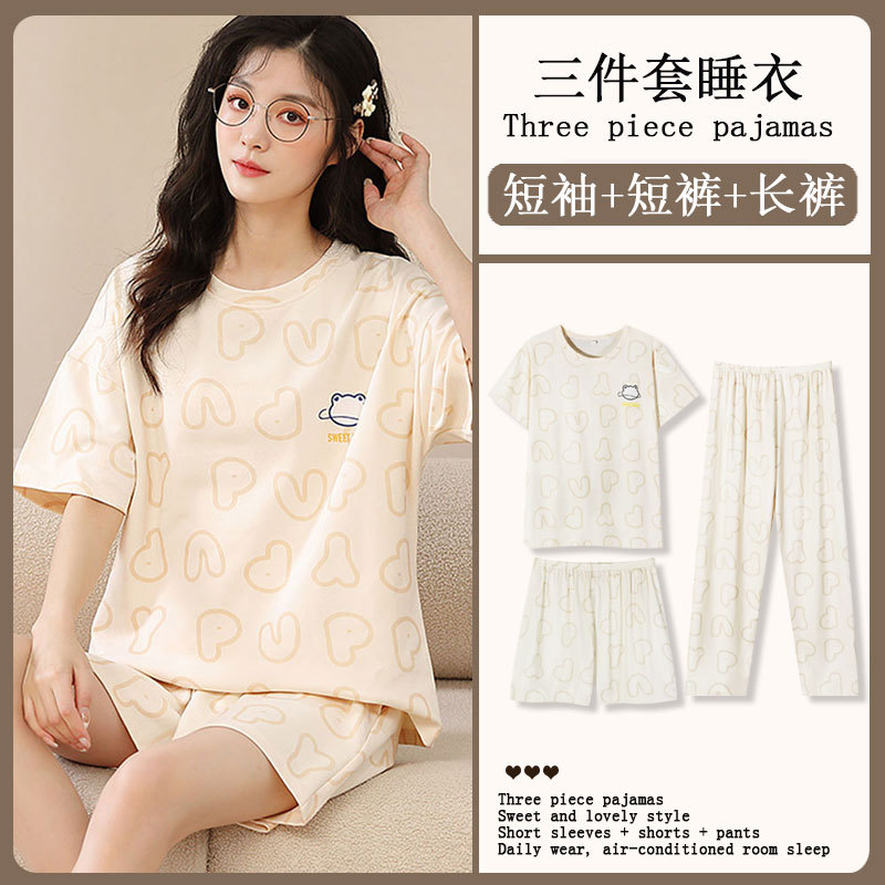 日系睡衣女夏短袖三件套薄款夏季可外穿格子高级感紫色家居服套装
