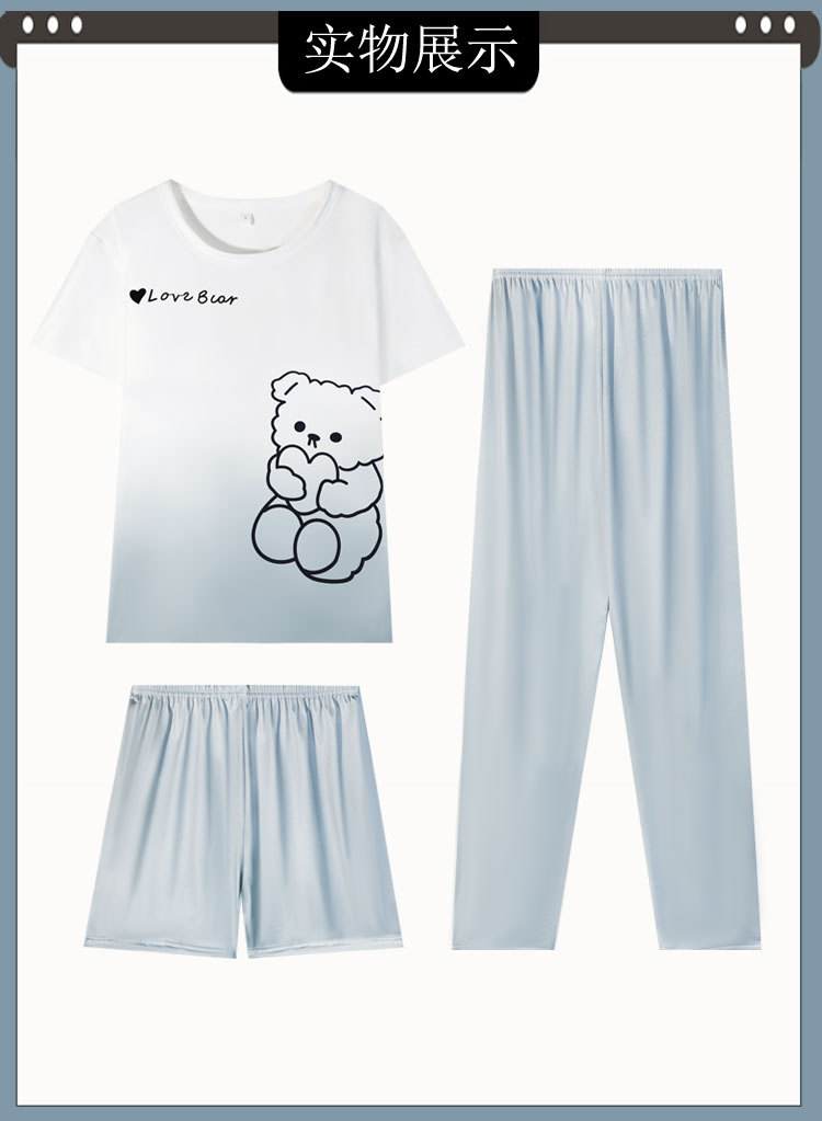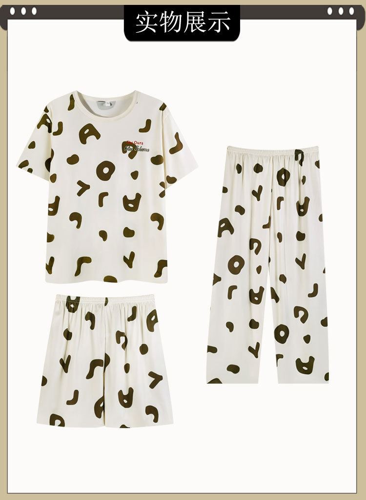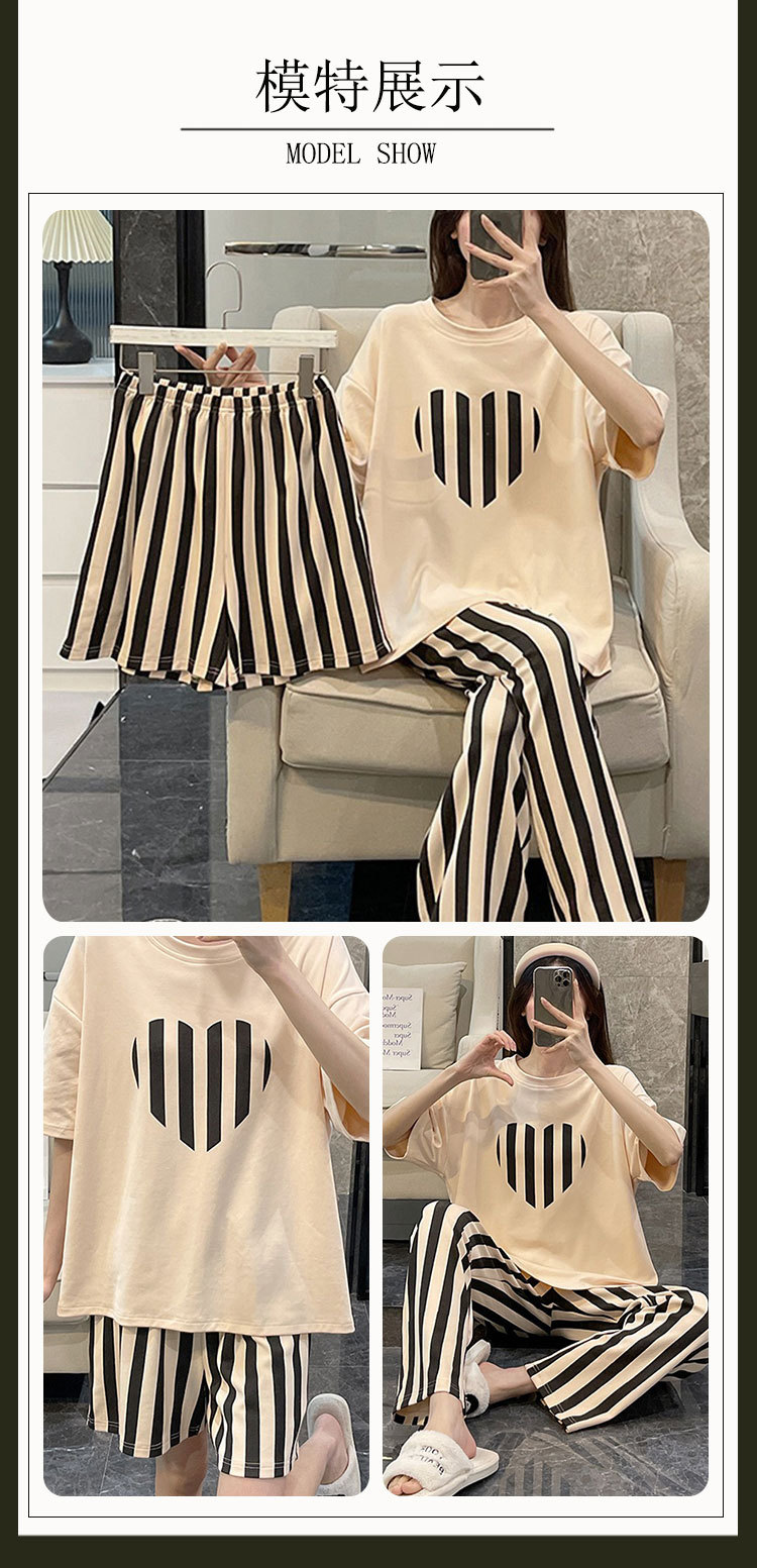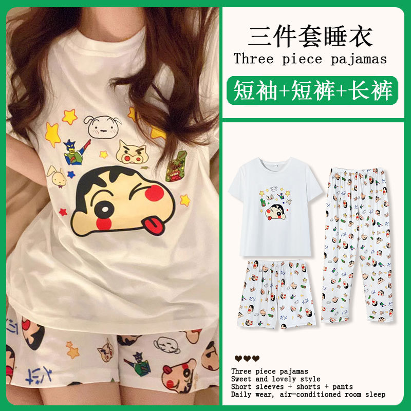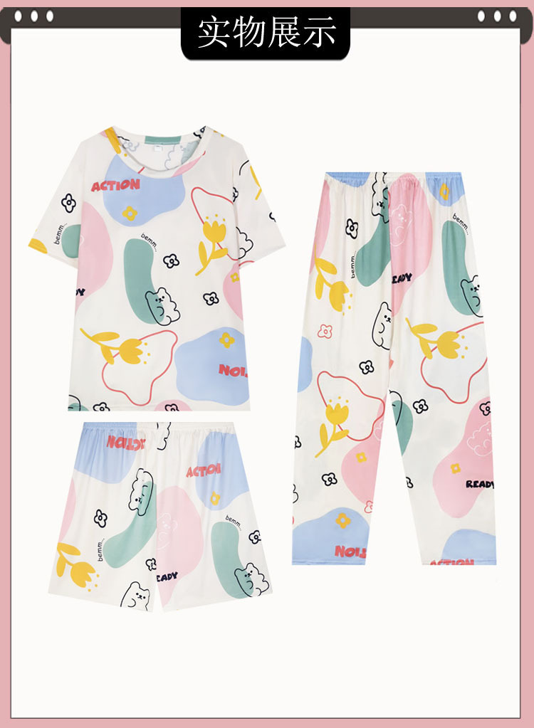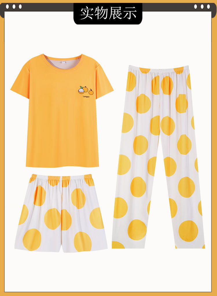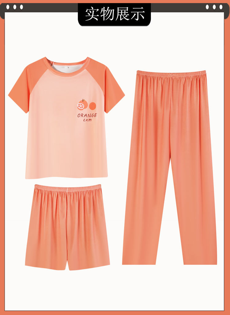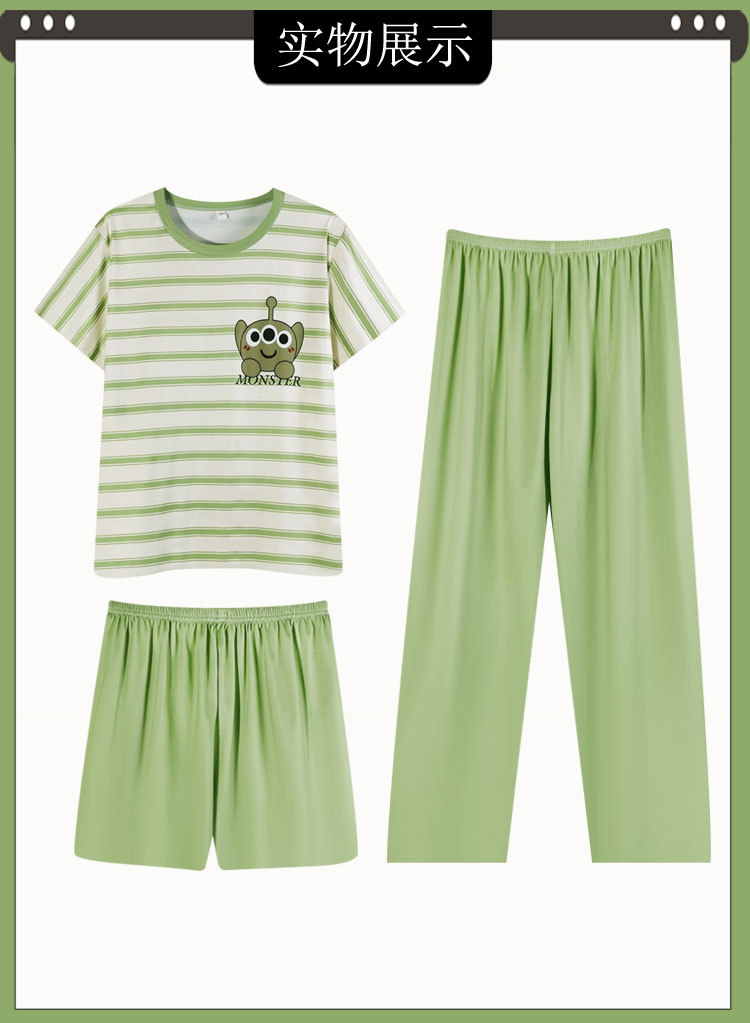 日系睡衣女夏短袖三件套薄款夏季可外穿格子高级感紫色家居服套装