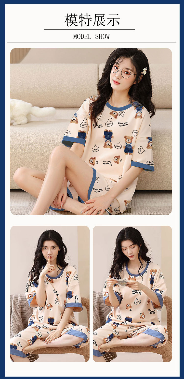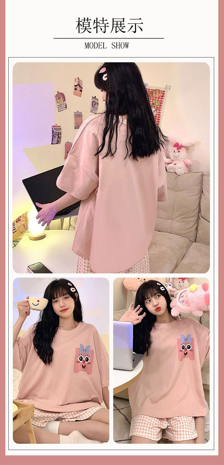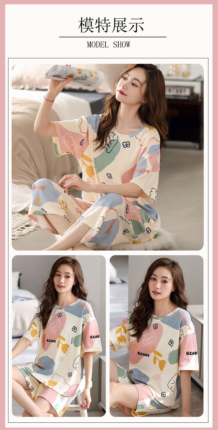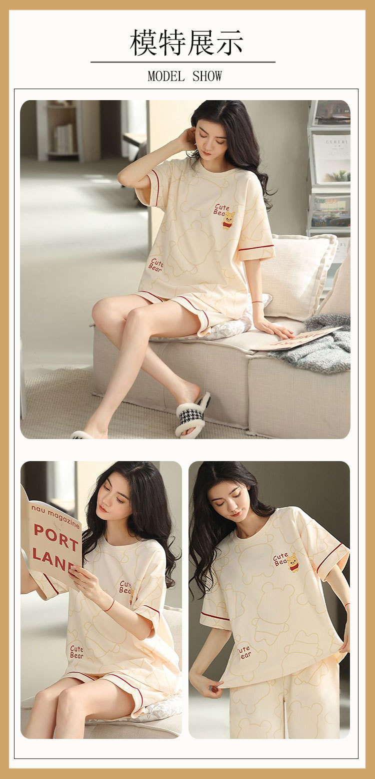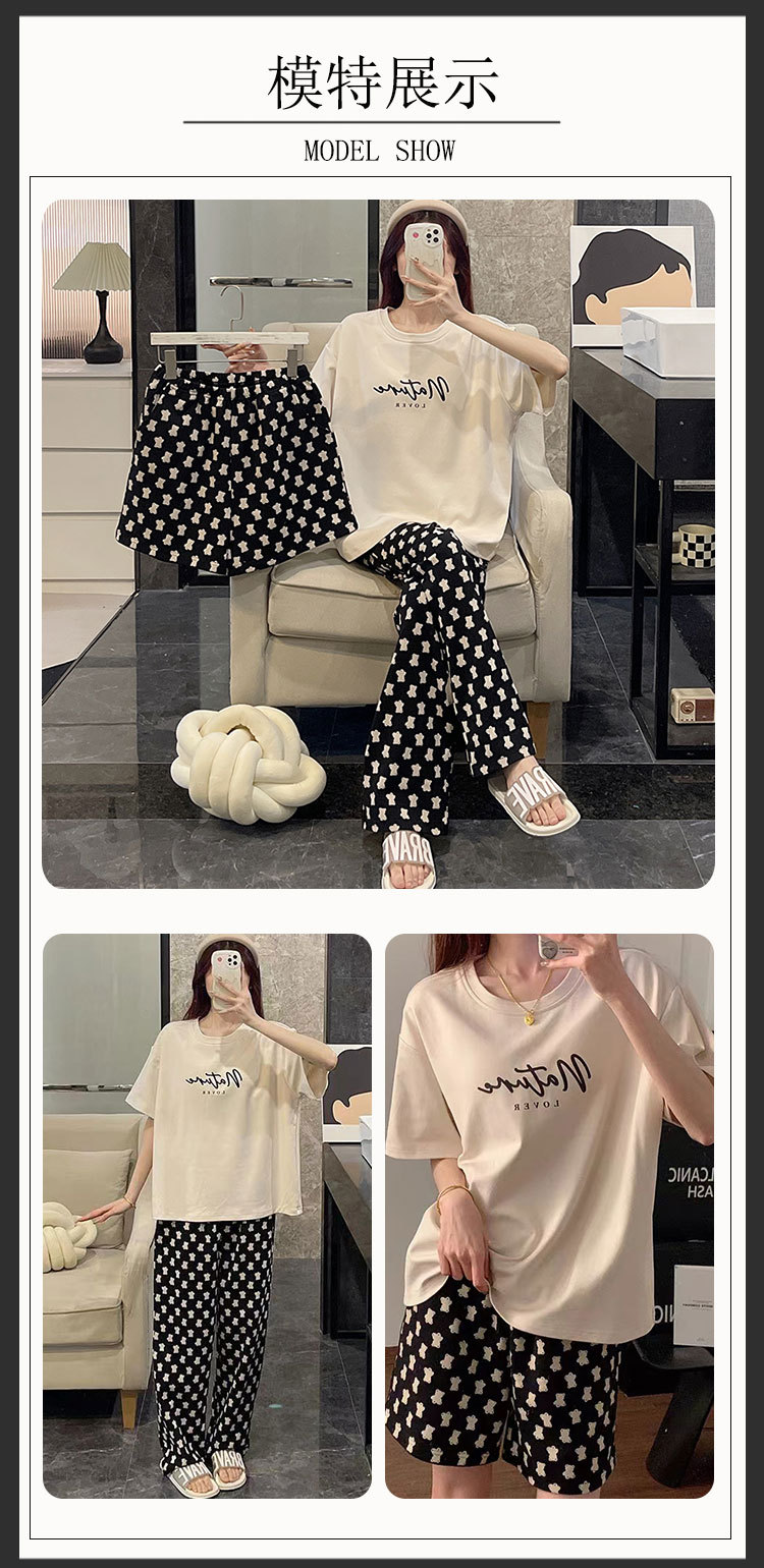 日系睡衣女夏短袖三件套薄款夏季可外穿格子高级感紫色家居服套装