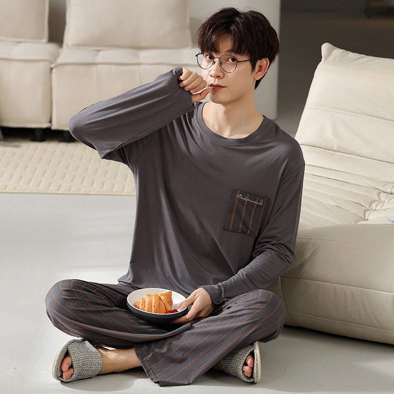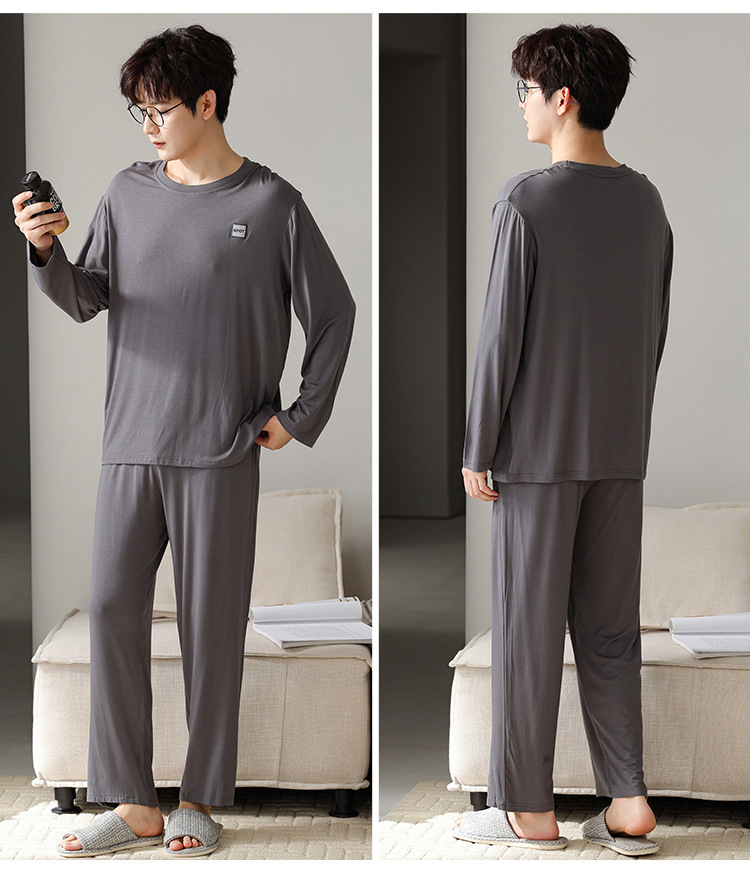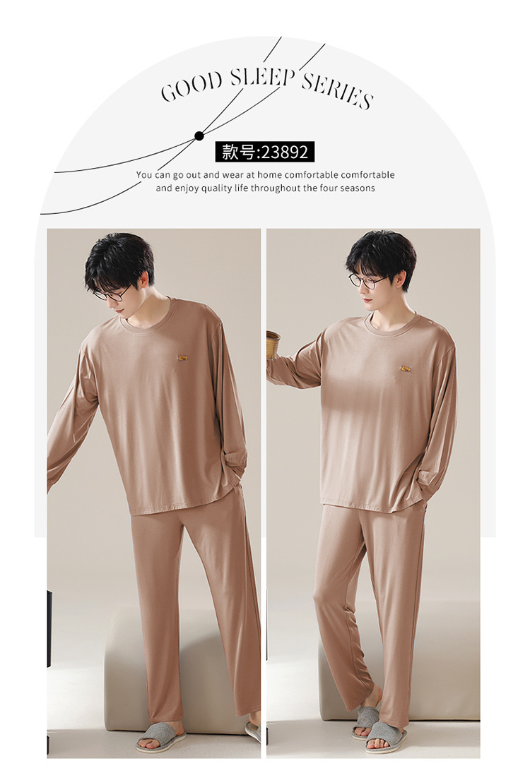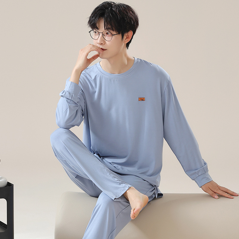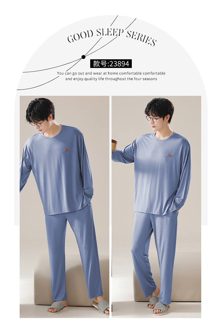2025年春秋季新款睡衣男士莫代尔长袖长裤男孩简约休闲家居服套装