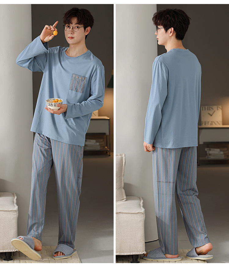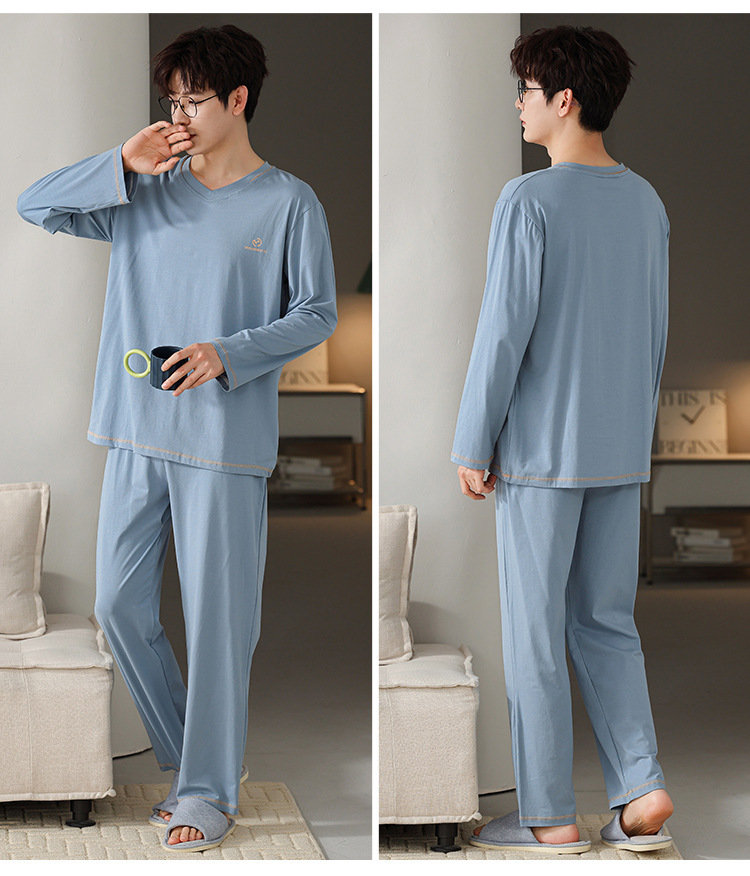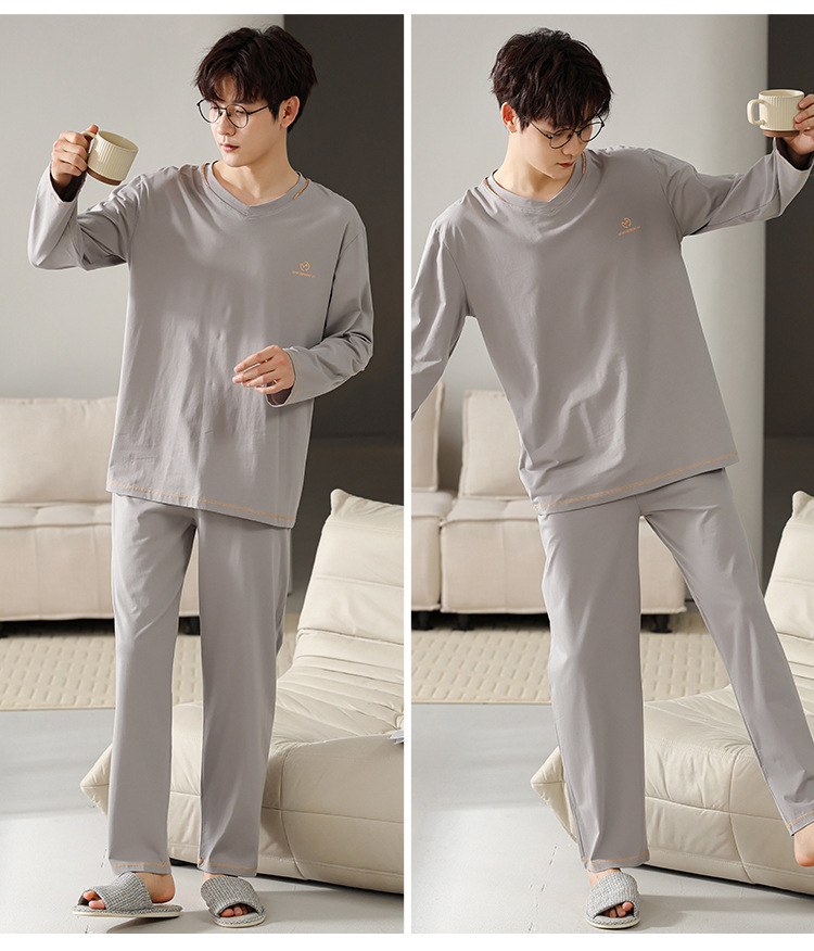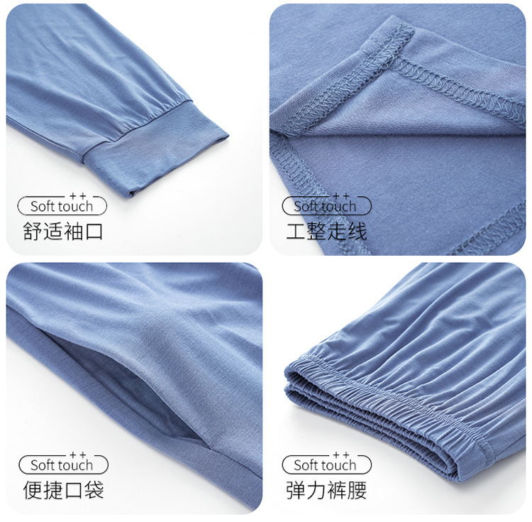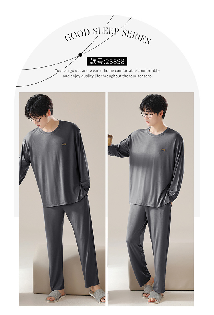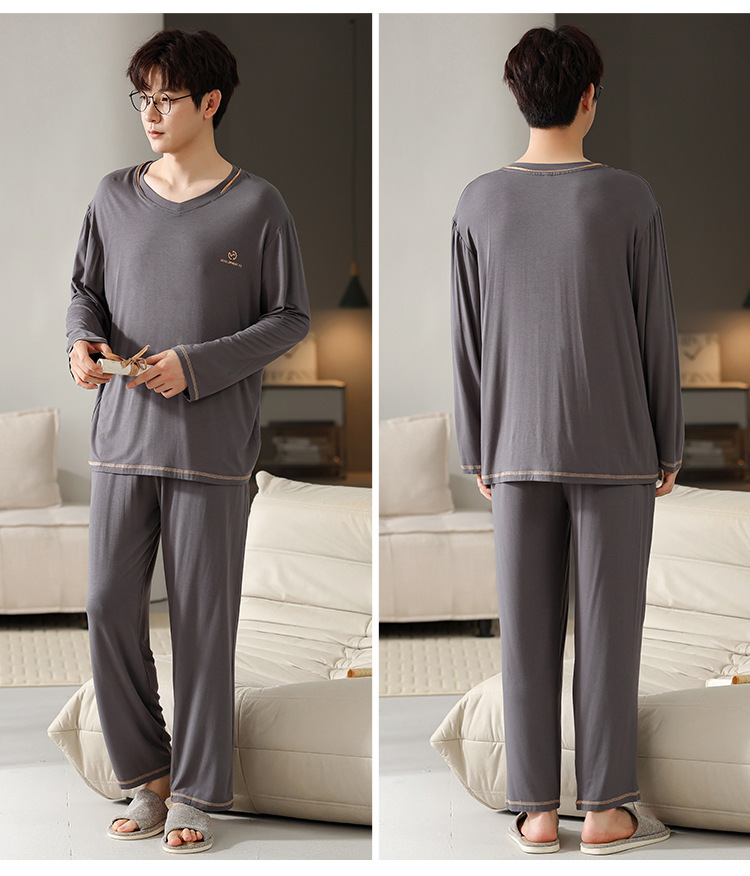 2025年春秋季新款睡衣男士莫代尔长袖长裤男孩简约休闲家居服套装