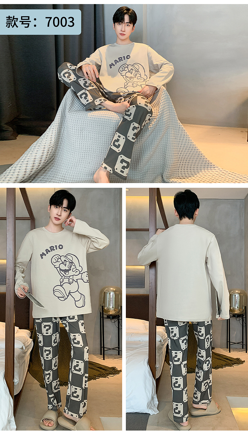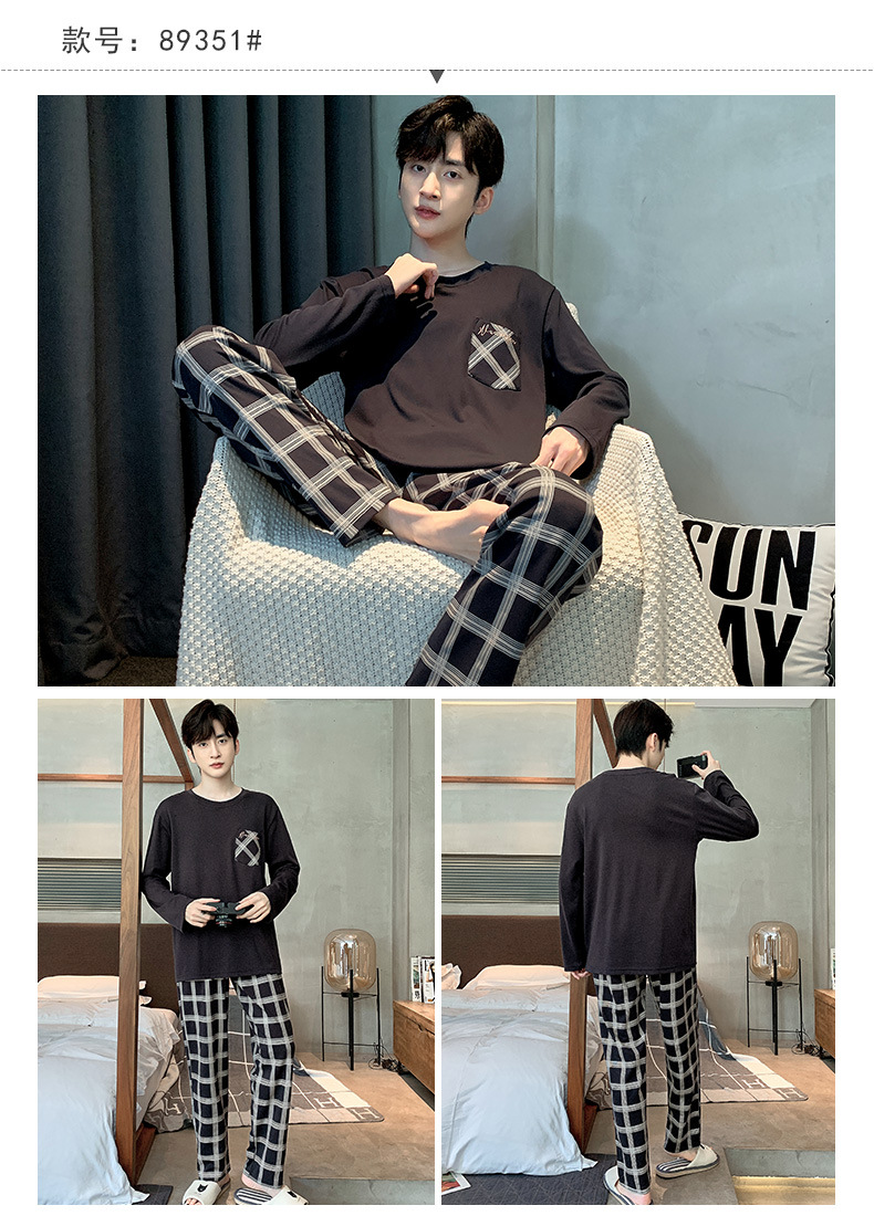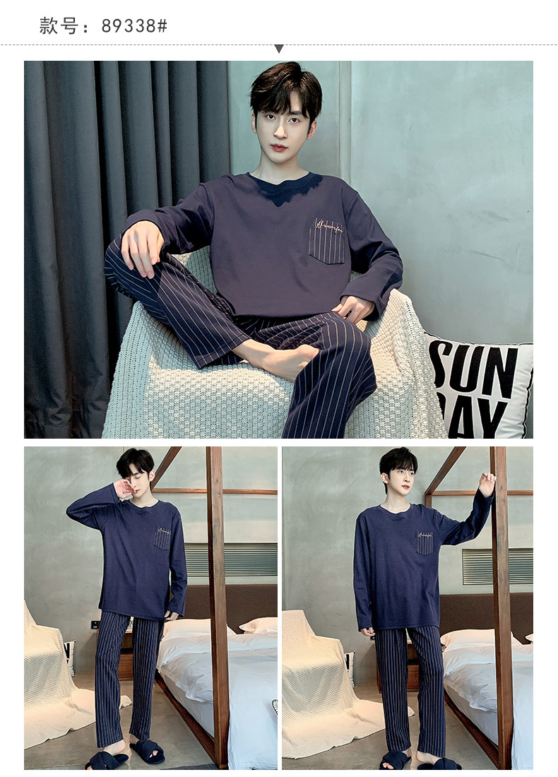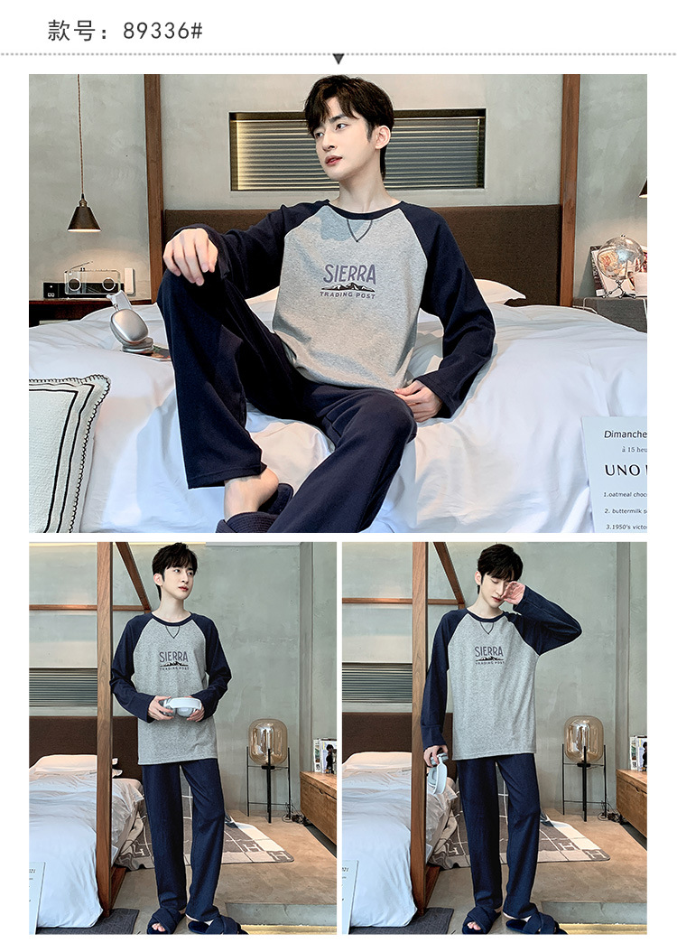 睡衣男士春秋季圆领长袖青少年休闲可外穿家居服秋季宽松大码套装