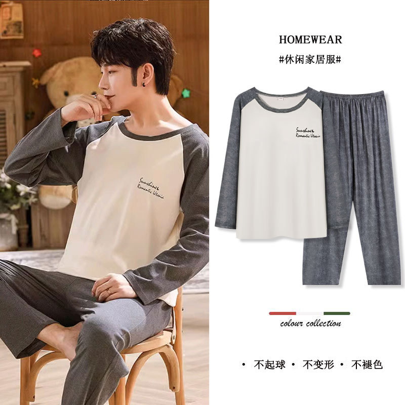 可外穿运动款睡衣男韩版春秋季青年男士居家休闲冬大码家居服套装