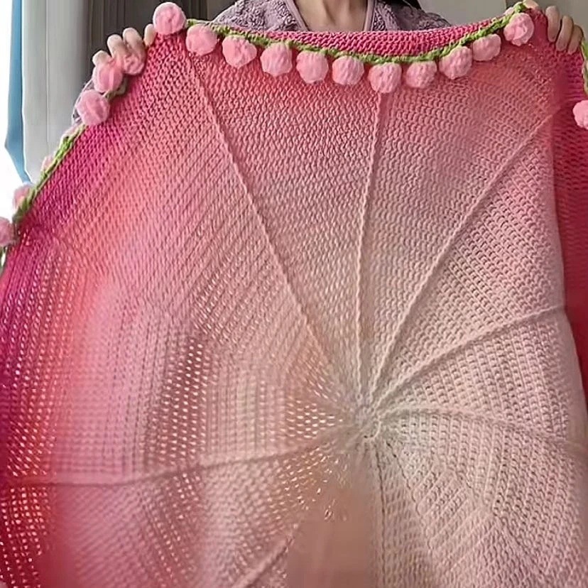 玫瑰花束毯子手工编织diy材料包毛线团钩织花朵毛毯铃兰花毯成品