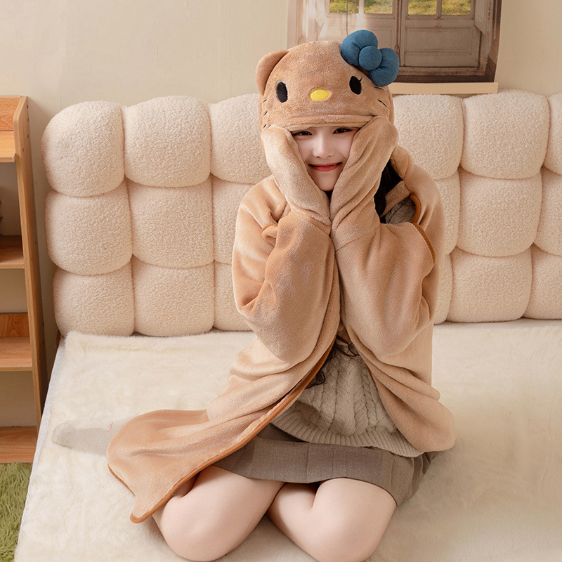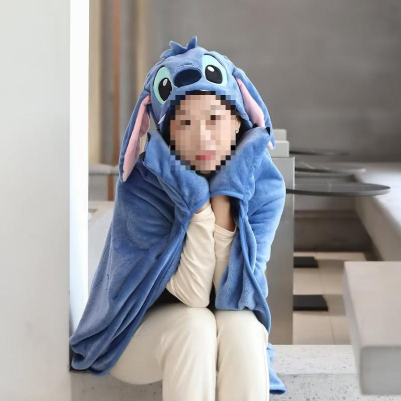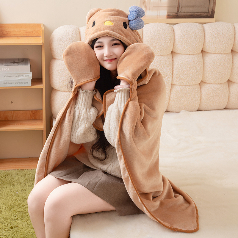 卡通可爱懒人连帽披风毯子学生披肩加厚保暖午睡斗篷办公室空调毯