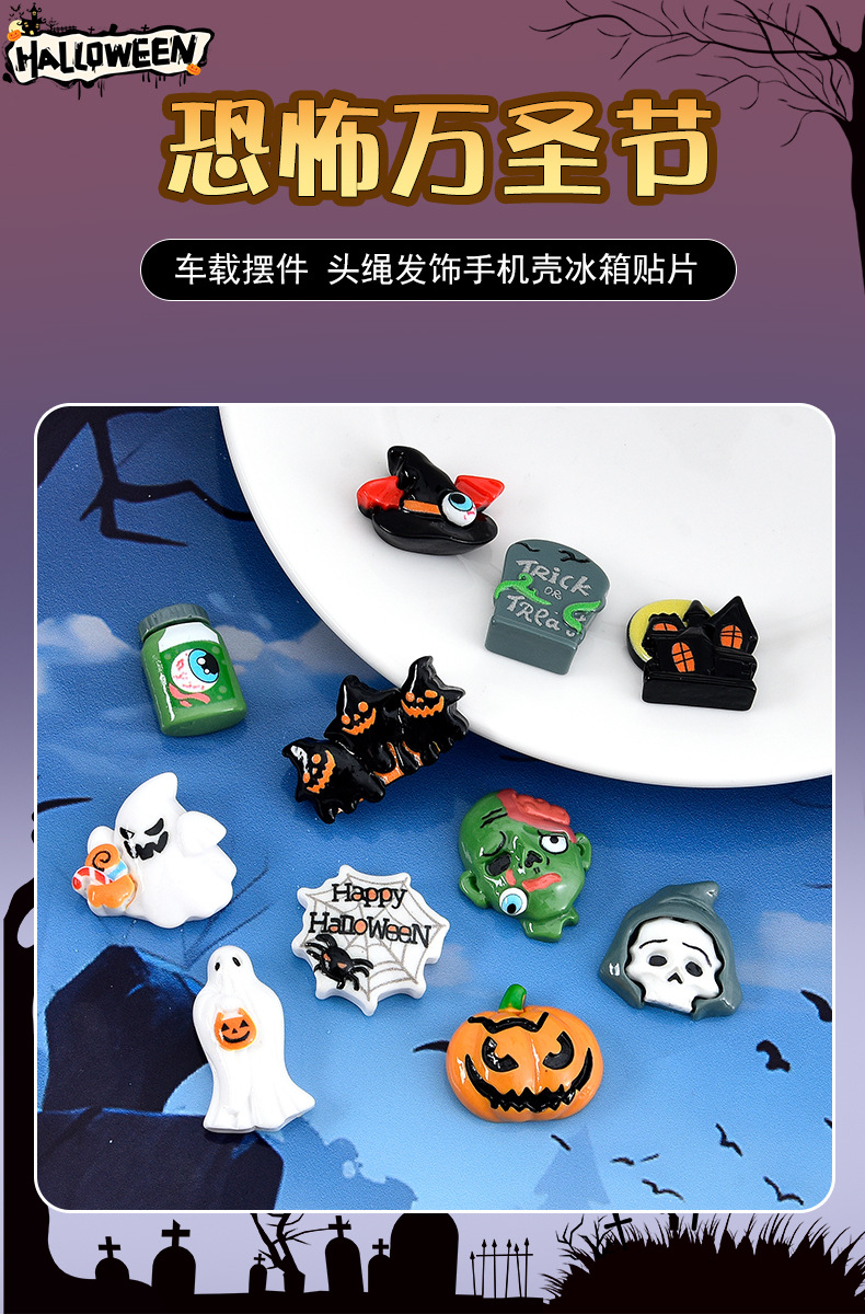 创意树脂配件万圣节南瓜骷髅幽灵 diy饰品配件手机壳发饰材料配件