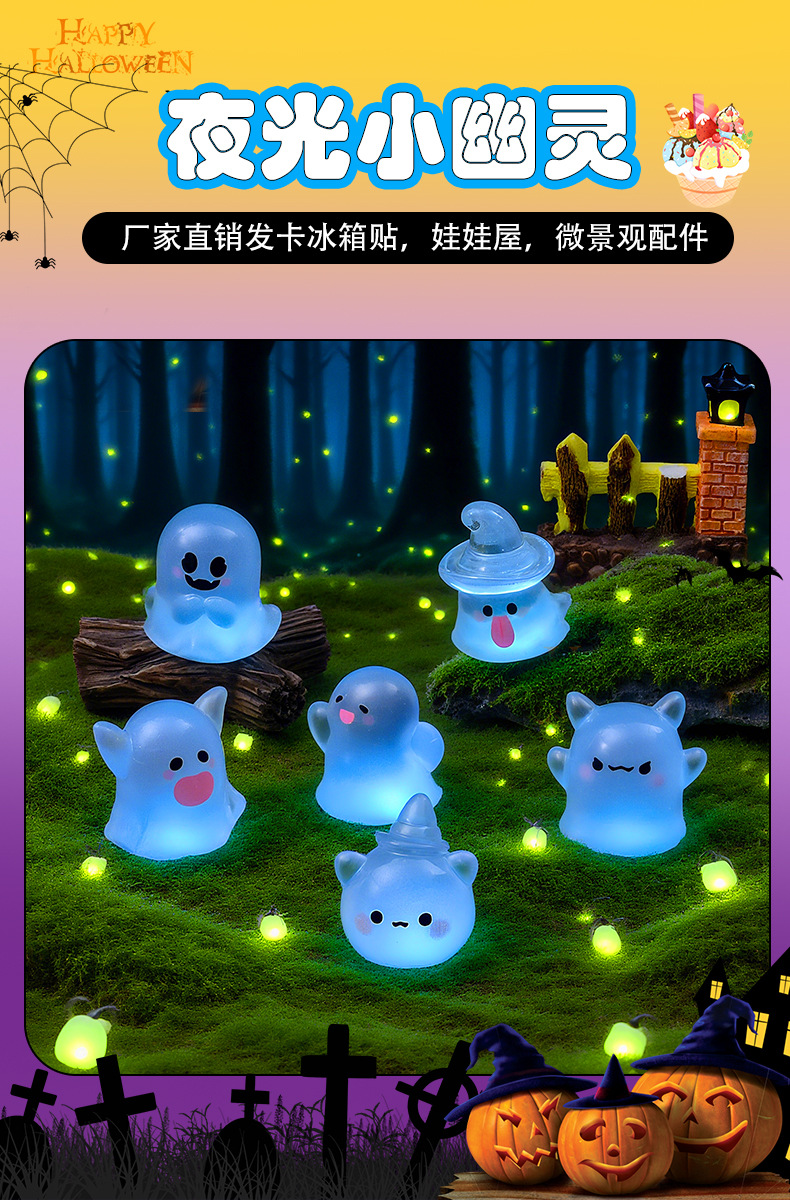 新款跨境夜光小幽灵万圣节摆件 潮玩diy盲盒配件桌面车载装饰批发