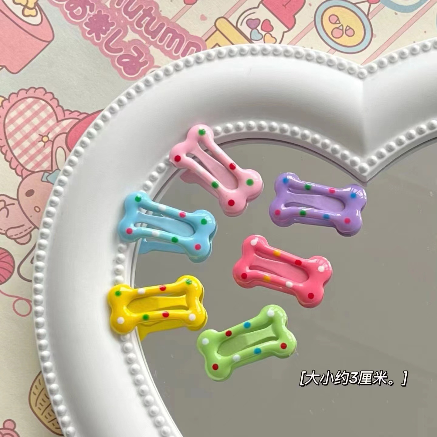 糖果色滴油波点小骨头发夹迷你bb夹ins少女心可爱发卡彩色女童发