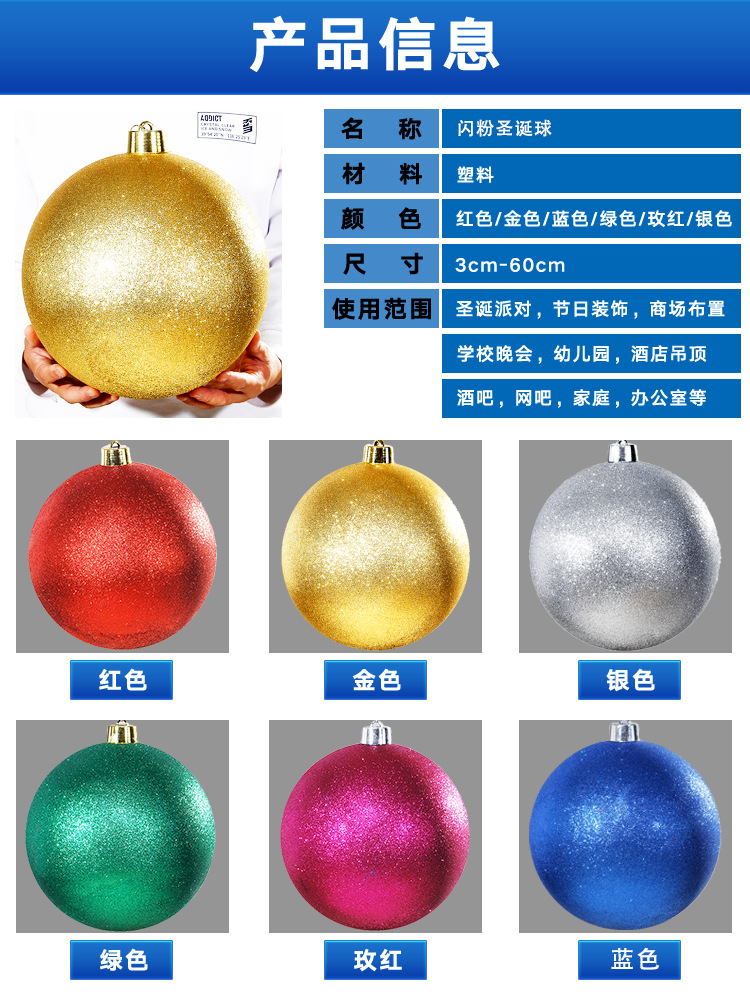 龙虎圣诞闪粉装饰球圣诞树球彩球圣诞节装饰店铺商场酒吧吊顶装饰