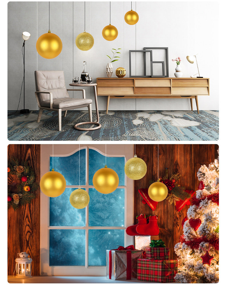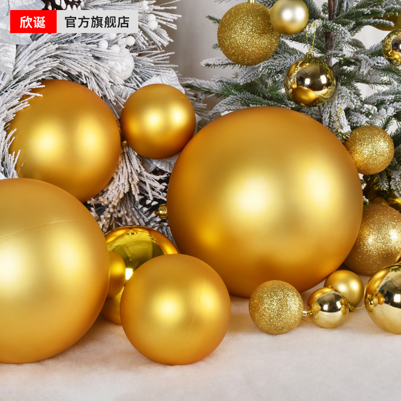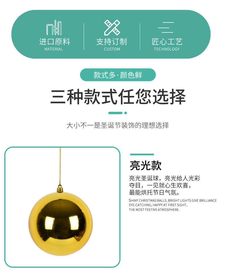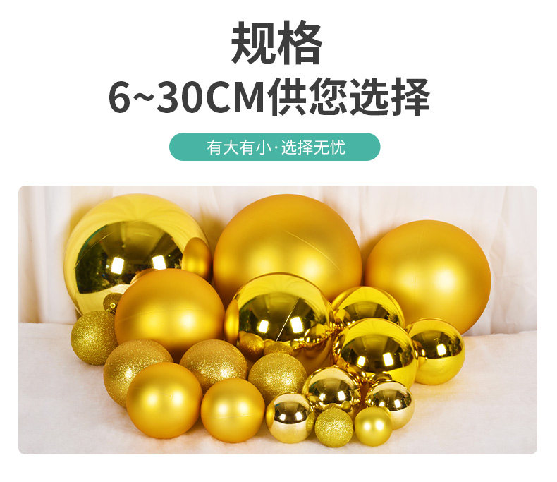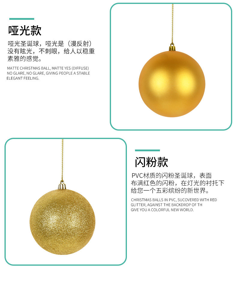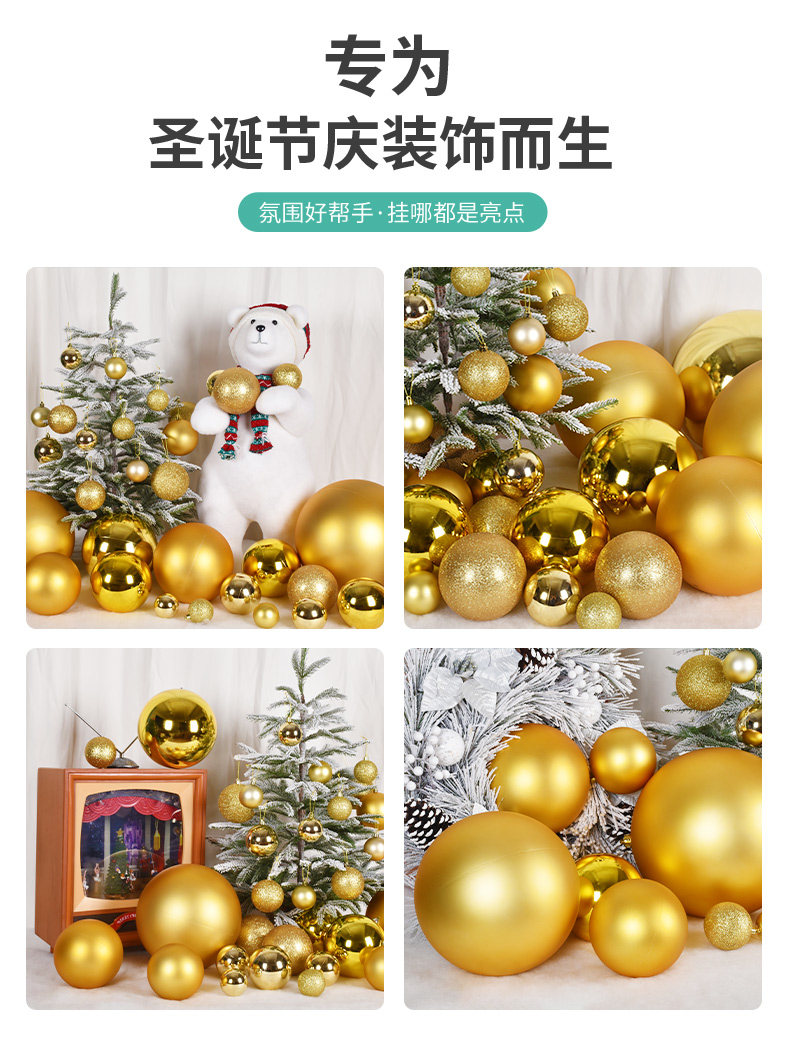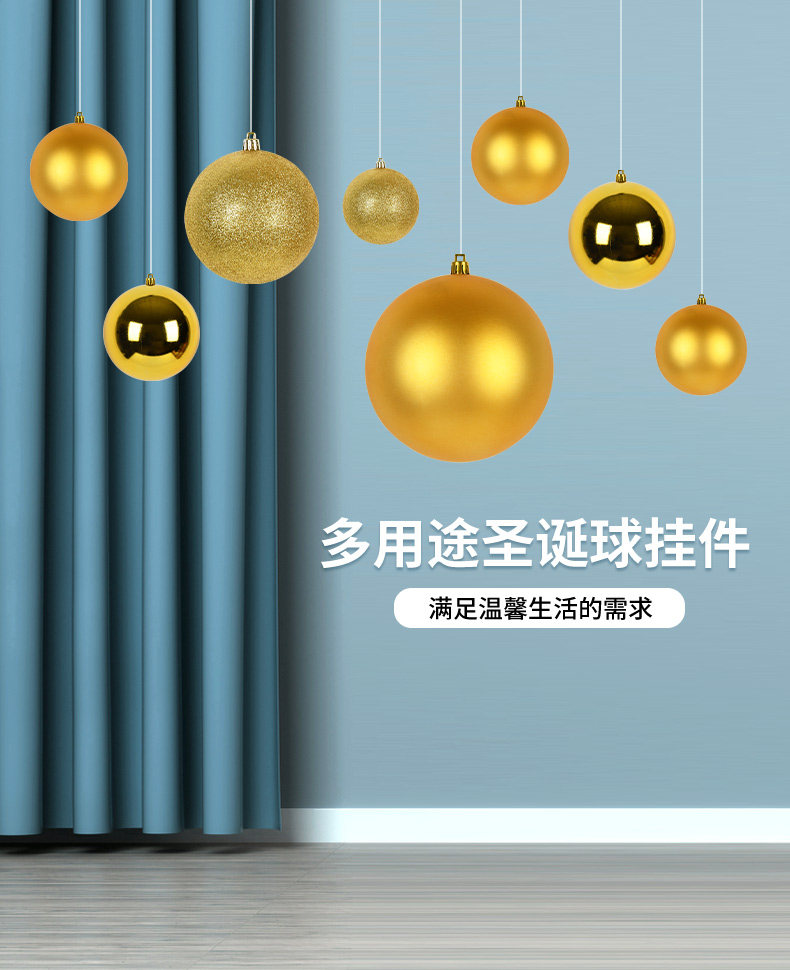 节庆装饰球吊球金色亮光闪粉哑面空心塑胶圣诞球吊饰场景布置挂件