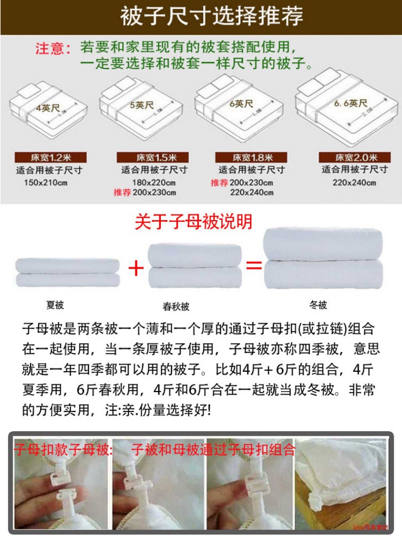 | 适合220x240cm被套用【子母扣款子母被4斤+6斤】 | USD $67.84 | 8888 piece available |