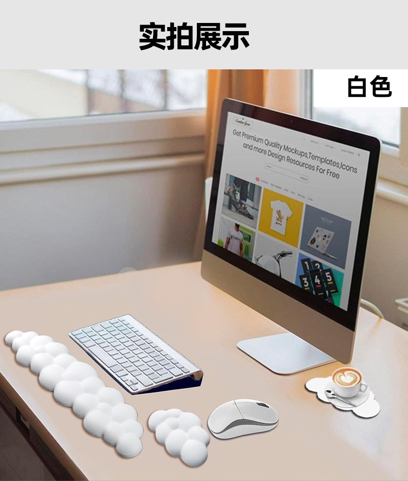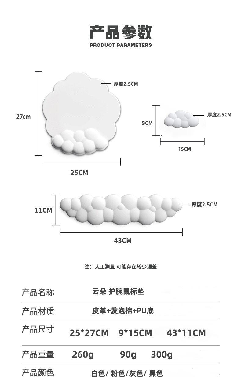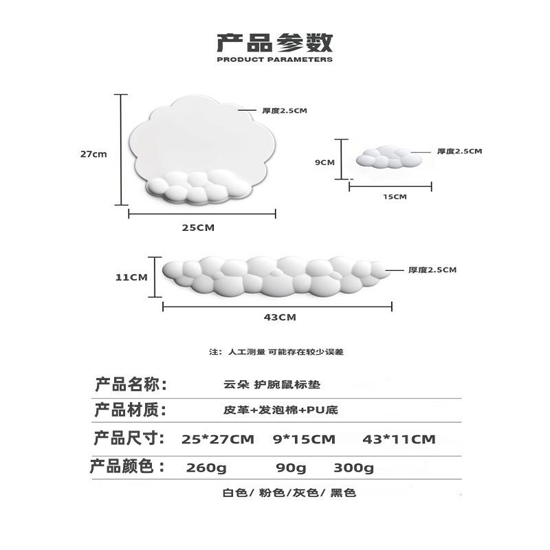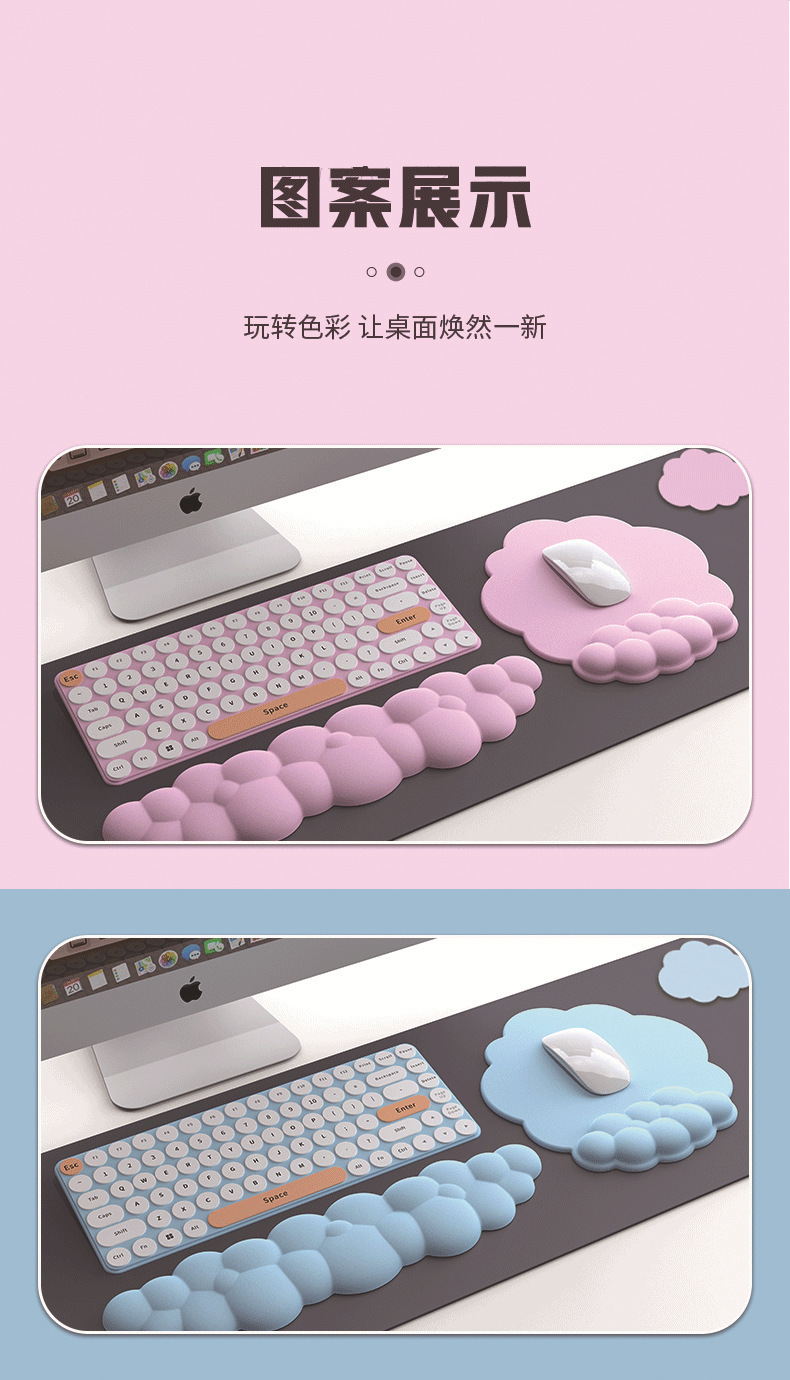 跨境硅胶鼠标垫纯色桌垫键盘托手腕垫一体皮革云朵手枕护腕垫子